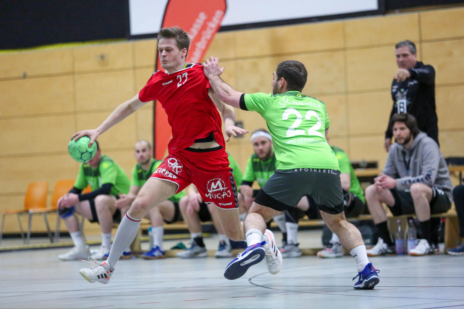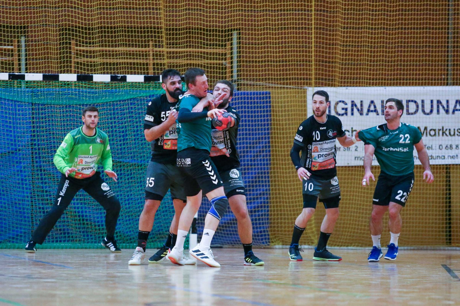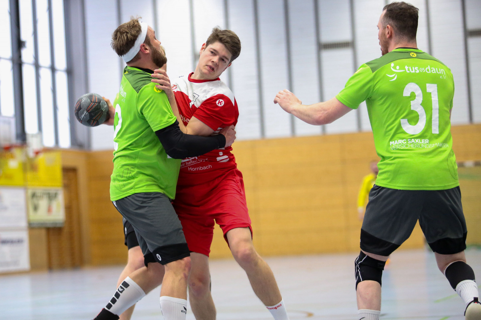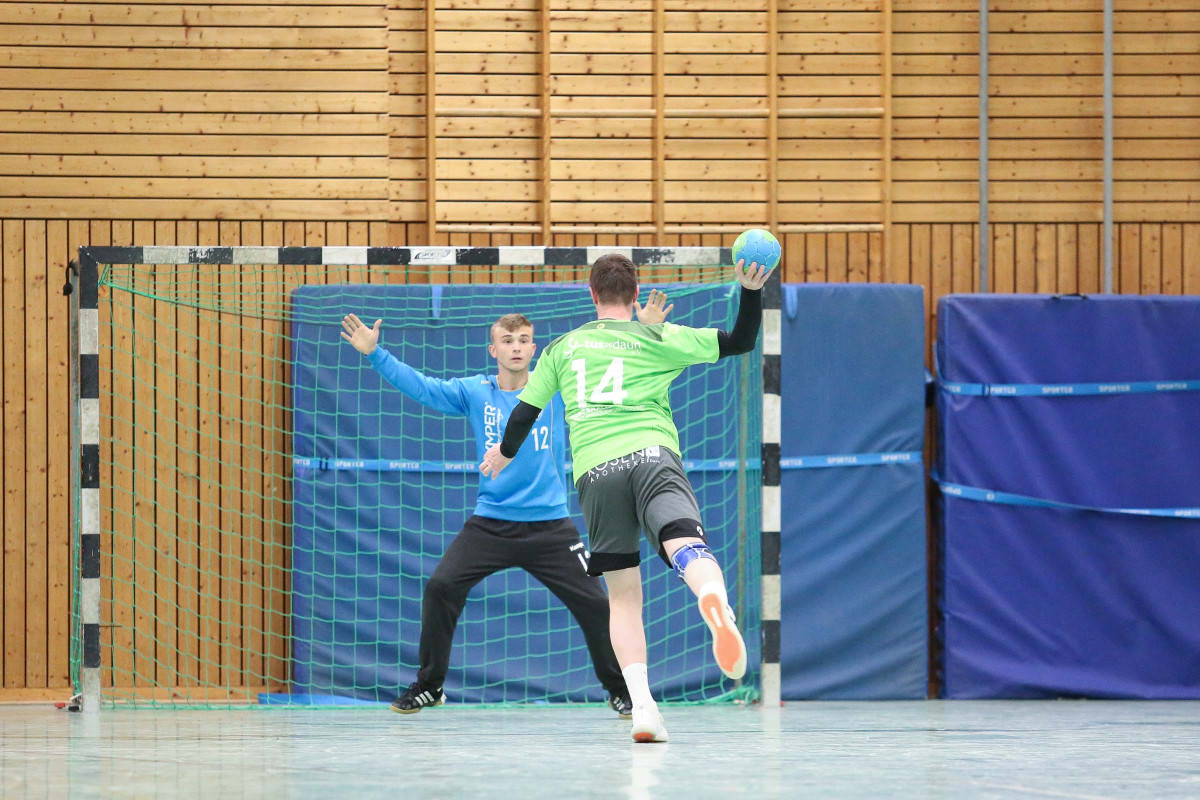 Ausgeglichen verliefen die Anfangsminuten der Begegnung, in der die Gastgeber sich bis zur 16. Minute auf 8:6 absetzten, doch es war früh erkennbar, dass die Gäste über die gesamte Spielzeit mit hohem Tempo agieren würden und das sollte letztlich mit spielentscheidend sein. Die Führung der Dauner hielt bis 12:10 in der 24. Minute, dann verletzte sich Ruslan Podriezov am Oberschenkel und konnte nach dem Wechsel nur noch sporadisch im Deckungsverband eingesetzt werden. Nach dem 14:14 Ausgleich gelang dem Favoriten aus Dansenberg mit zwei schnellen Toren die 14:16 Pausenführung.