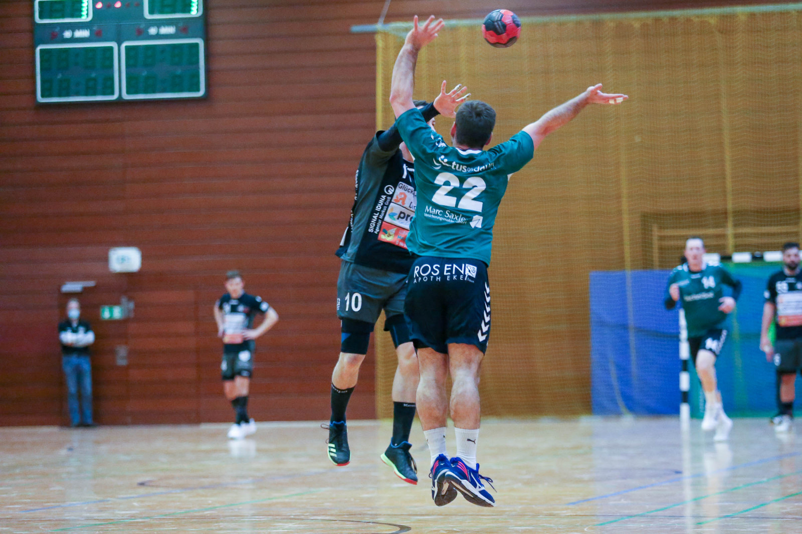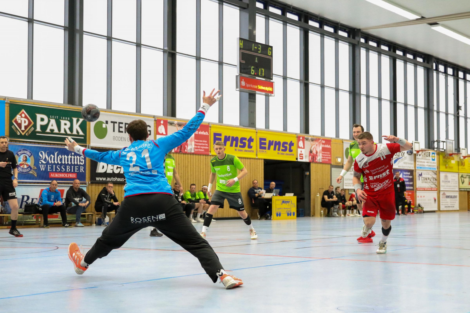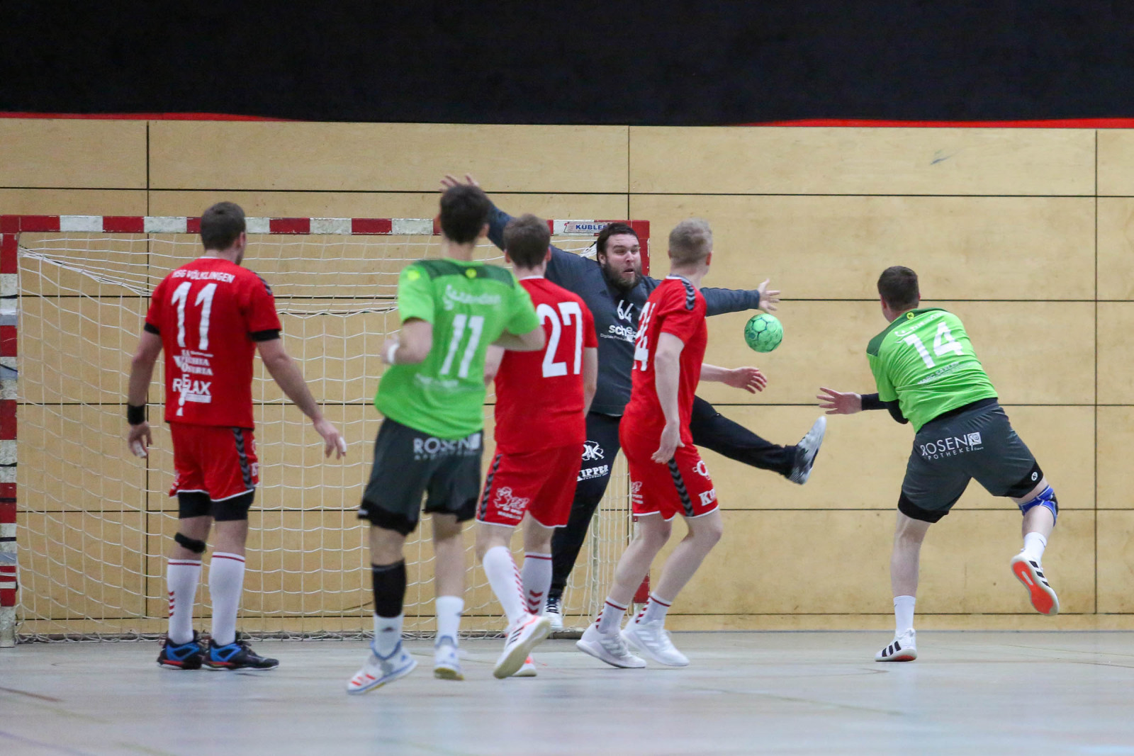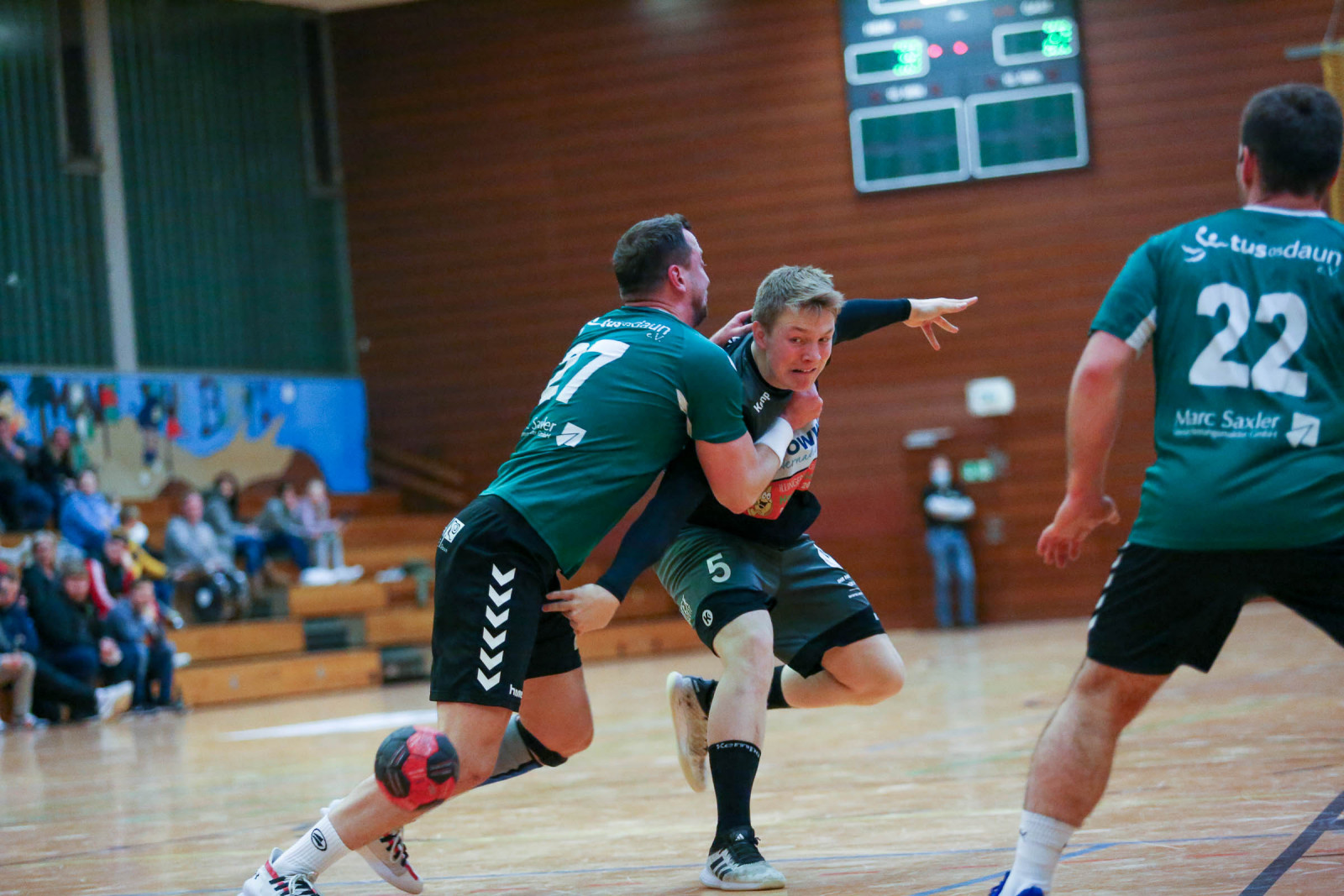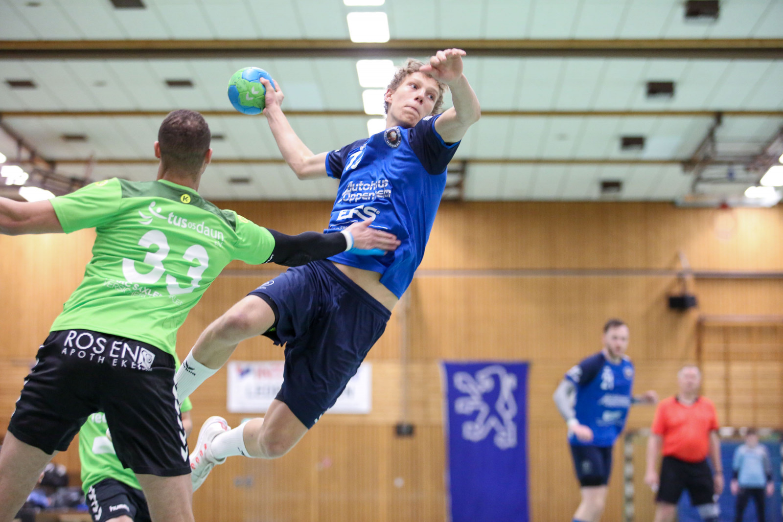 Ausgeglichen verliefen die Anfangsminuten der Begegnung, in der die Gastgeber sich bis zur 16. Minute auf 8:6 absetzten, doch es war früh erkennbar, dass die Gäste über die gesamte Spielzeit mit hohem Tempo agieren würden und das sollte letztlich mit spielentscheidend sein. Die Führung der Dauner hielt bis 12:10 in der 24. Minute, dann verletzte sich Ruslan Podriezov am Oberschenkel und konnte nach dem Wechsel nur noch sporadisch im Deckungsverband eingesetzt werden. Nach dem 14:14 Ausgleich gelang dem Favoriten aus Dansenberg mit zwei schnellen Toren die 14:16 Pausenführung.