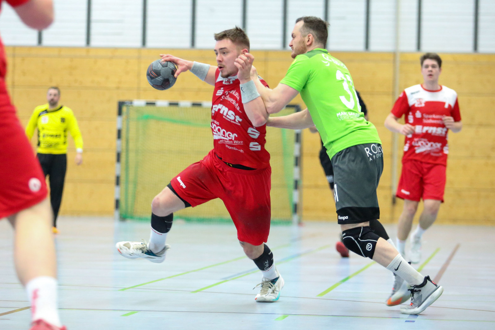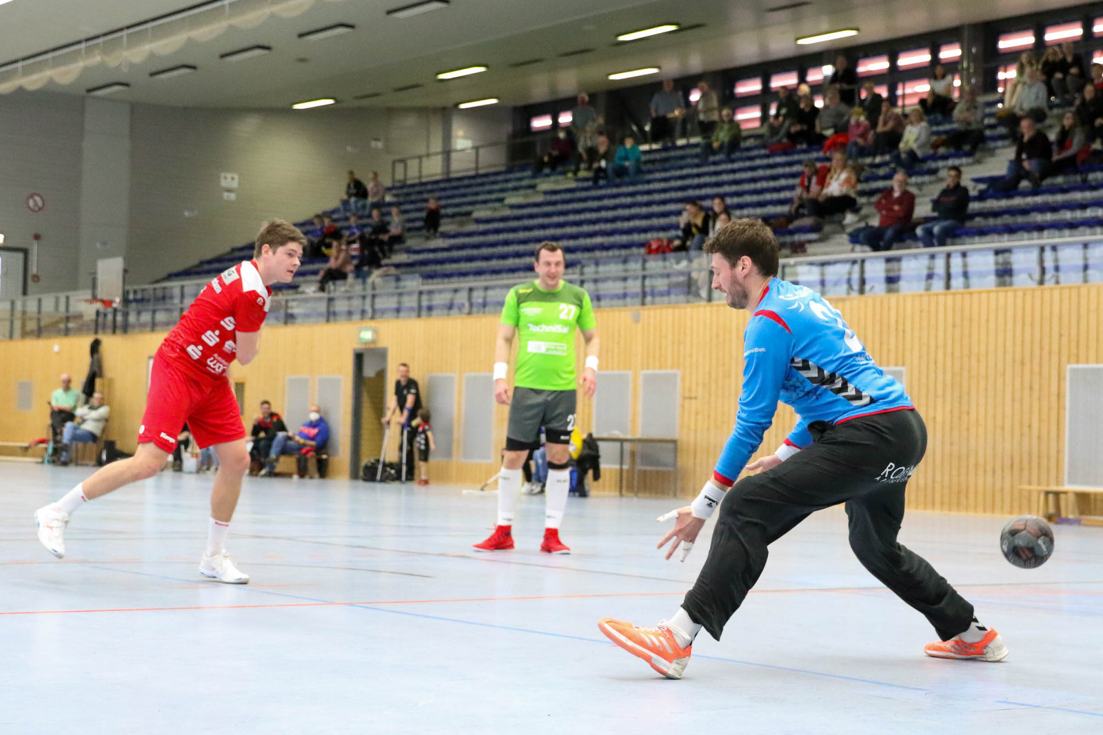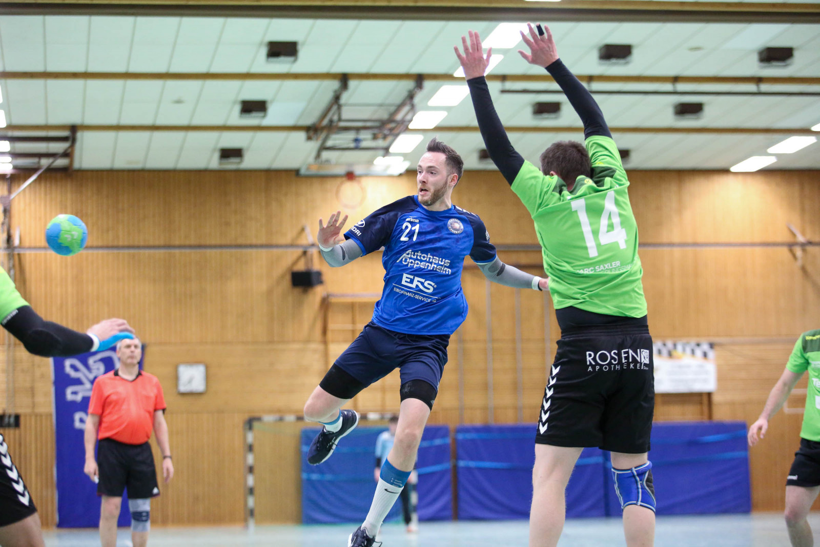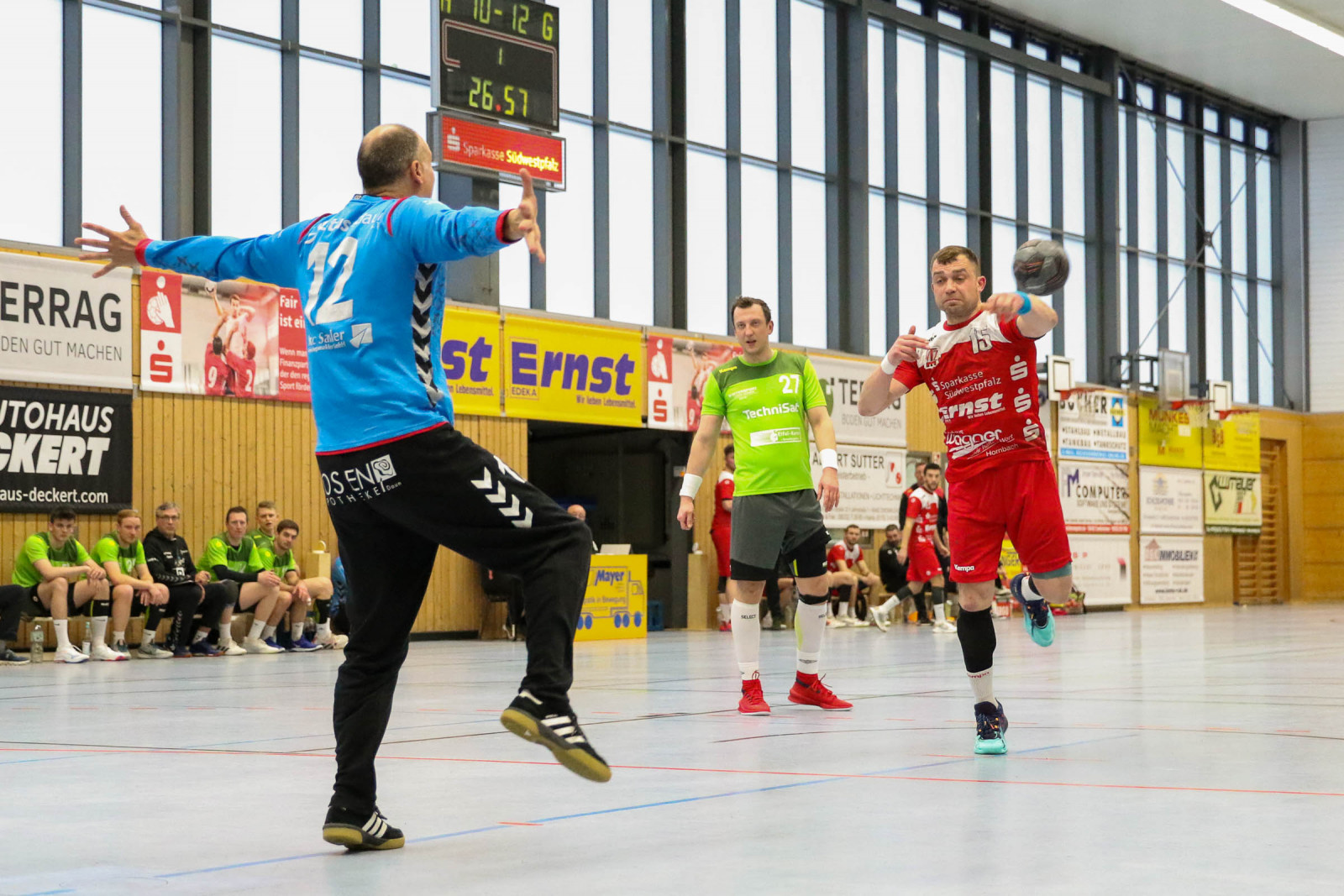 Ausgeglichen verliefen die Anfangsminuten der Begegnung, in der die Gastgeber sich bis zur 16. Minute auf 8:6 absetzten, doch es war früh erkennbar, dass die Gäste über die gesamte Spielzeit mit hohem Tempo agieren würden und das sollte letztlich mit spielentscheidend sein. Die Führung der Dauner hielt bis 12:10 in der 24. Minute, dann verletzte sich Ruslan Podriezov am Oberschenkel und konnte nach dem Wechsel nur noch sporadisch im Deckungsverband eingesetzt werden. Nach dem 14:14 Ausgleich gelang dem Favoriten aus Dansenberg mit zwei schnellen Toren die 14:16 Pausenführung.
