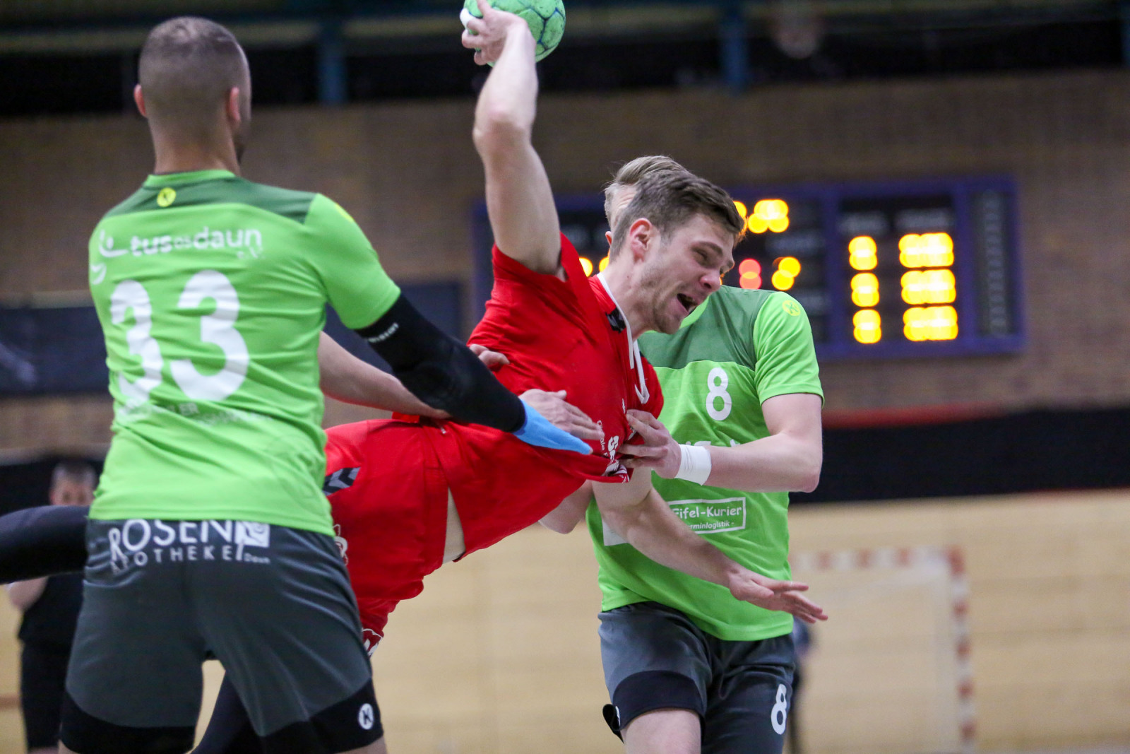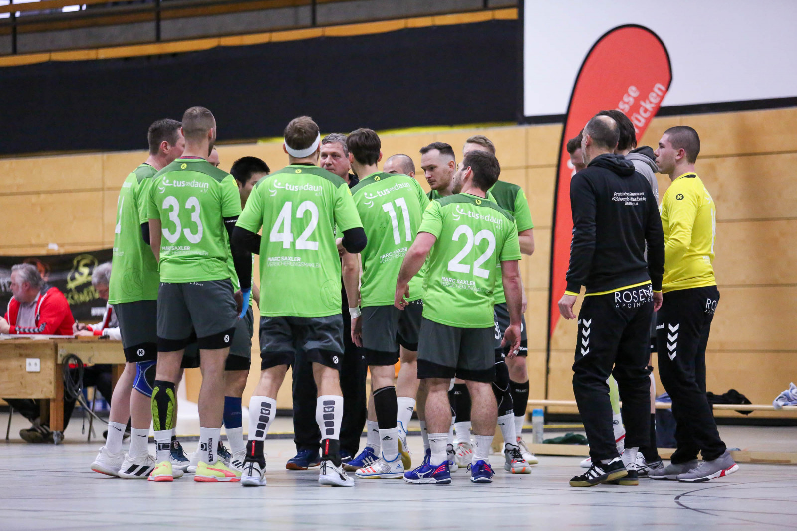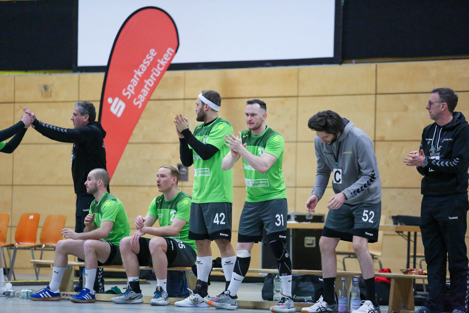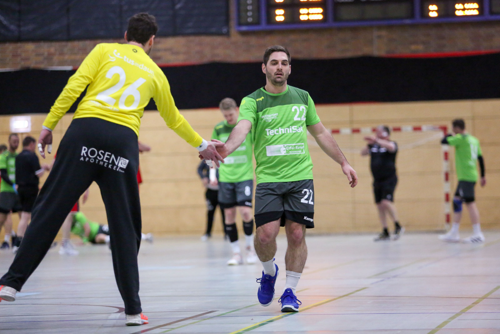 „Ein krasses Missverhältnis! Bei jeder kleinen Berührung in der Abwehr wurde auf Siebenmeter gegen uns entschieden. Da hilft es auch nichts, wenn meine Jungs wie verrückt kämpfen. Das hat allen Respekt verdient. Doch so kannst du kein Spiel gewinnen, wenn es so eng ist“, schimpfte der Dauner Coach. Von den 12 Strafwürfen brachte Dansenberg 9 im Kasten der Eifelaner unter und das war ein entscheidender Faktor. „Dansenberg spielte einen extrem schnellen Handball, erzielte viele Tore über die erste und zweite Welle. Bei uns war auf jeden Fall das Überzahlspiel gegenüber den letzten Spielen deutlich besser. Wir hatten eine Trefferquote von 75 Prozent, die Gäste lagen bei 77 Prozent. Auf beiden Seiten waren lediglich neun technische Fehler zu beklagen“, resümierte Domaschenko.