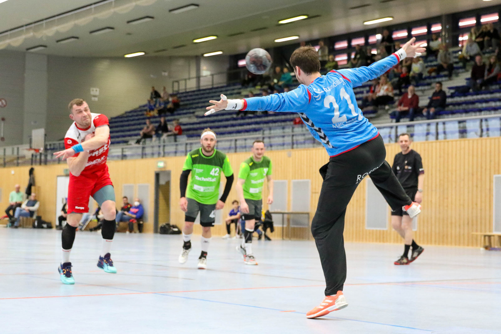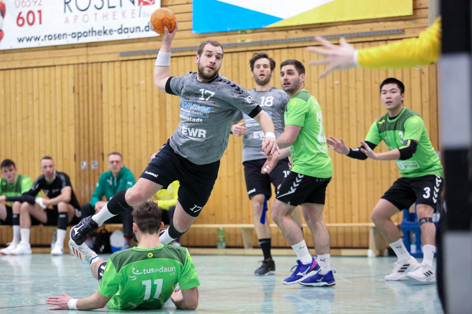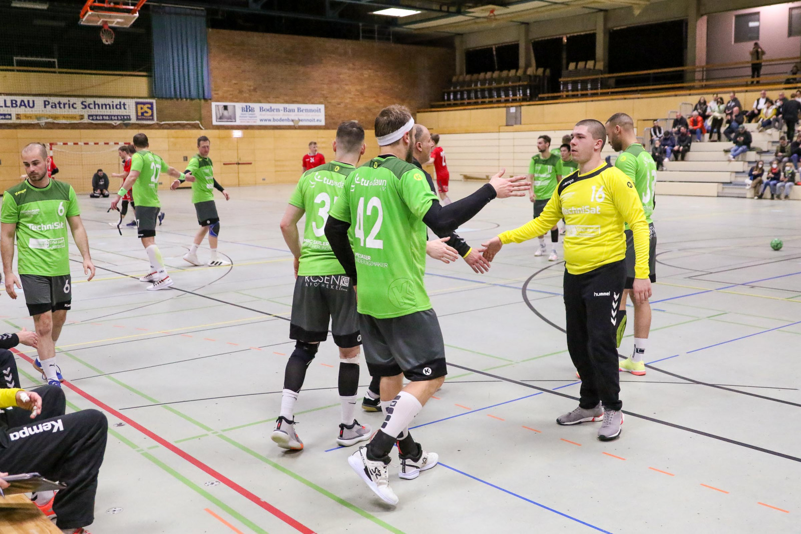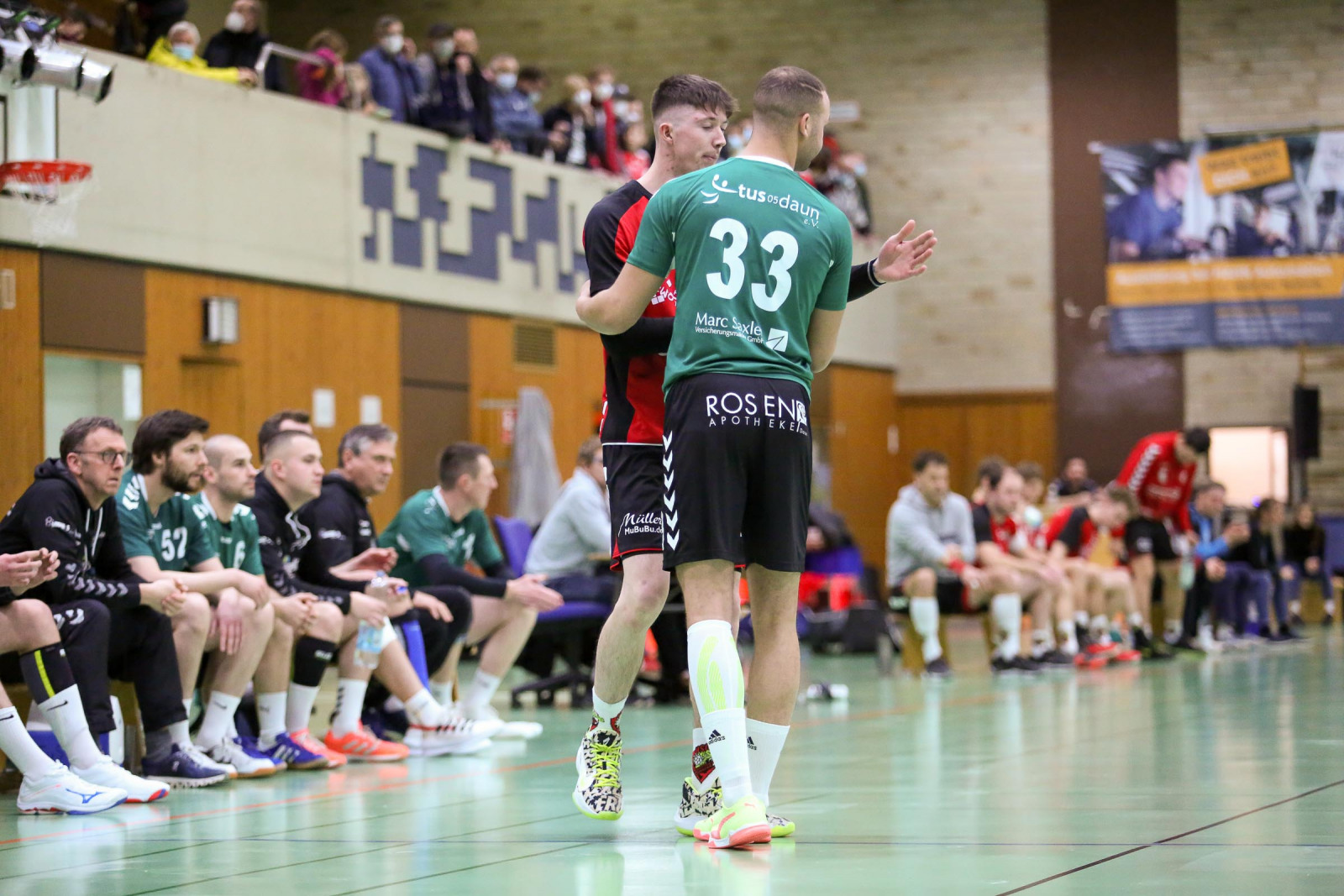 „Ein krasses Missverhältnis! Bei jeder kleinen Berührung in der Abwehr wurde auf Siebenmeter gegen uns entschieden. Da hilft es auch nichts, wenn meine Jungs wie verrückt kämpfen. Das hat allen Respekt verdient. Doch so kannst du kein Spiel gewinnen, wenn es so eng ist“, schimpfte der Dauner Coach. Von den 12 Strafwürfen brachte Dansenberg 9 im Kasten der Eifelaner unter und das war ein entscheidender Faktor. „Dansenberg spielte einen extrem schnellen Handball, erzielte viele Tore über die erste und zweite Welle. Bei uns war auf jeden Fall das Überzahlspiel gegenüber den letzten Spielen deutlich besser. Wir hatten eine Trefferquote von 75 Prozent, die Gäste lagen bei 77 Prozent. Auf beiden Seiten waren lediglich neun technische Fehler zu beklagen“, resümierte Domaschenko.