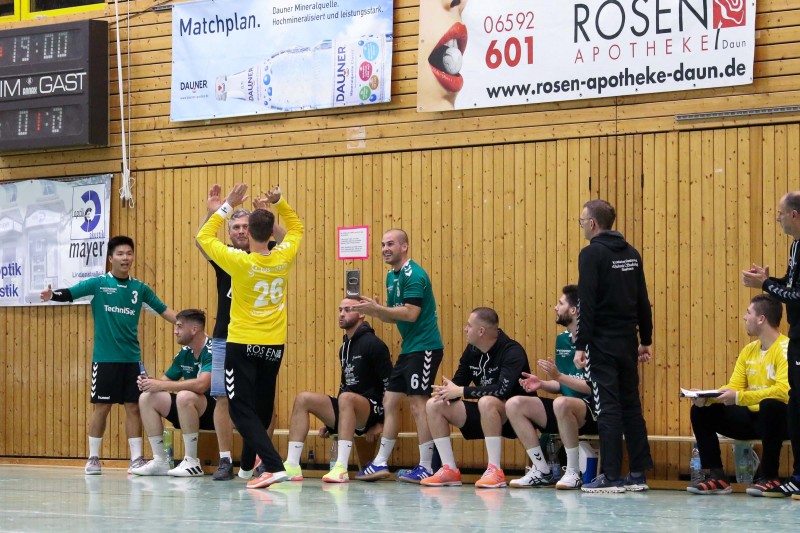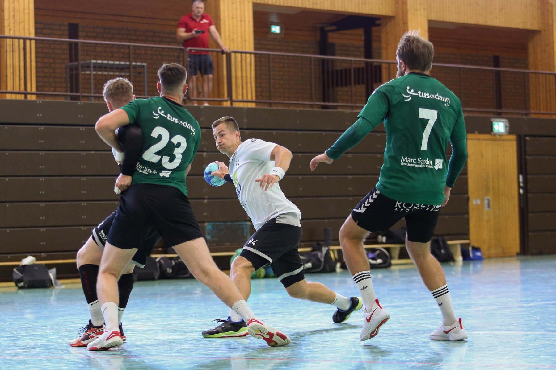 Auf Dauner Seite überzeugten im Angriff der Rückraum mit Kai Lißmann und Jannis Willems, Thinh-Hoang Tran spielte einen bärenstarken Abwehrpart auf Außen, gewann viele Bälle und erzielte wichtige Treffer. Im Tor zeigte Pascal Oliver seine Klasse, wehrte klarste Möglichkeiten der Mülheimer ab und parierte insgesamt drei Siebenmeter der Gäste. „Ich bin stolz auf meine Jungs, die alles umgesetzt haben, was wir uns vorgenommen hatten. Wir waren auf allen möglichen Angriffsvarianten der Gäste eingestellt und nach anfänglichen Problemen hat sich der Abwehrverband immer besser auf die Gäste einstellen können“, lobte Dauns Coach Igor Domaschenko.