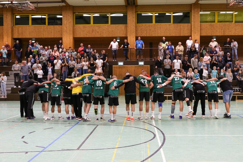 200 begeisterte Zuschauer feierten mit ihrer Mannschaft nach dem Schlusspfiff den überraschend klaren Auftakterfolg ihres Teams über den Rheinland-Vertreter TV Mülheim.