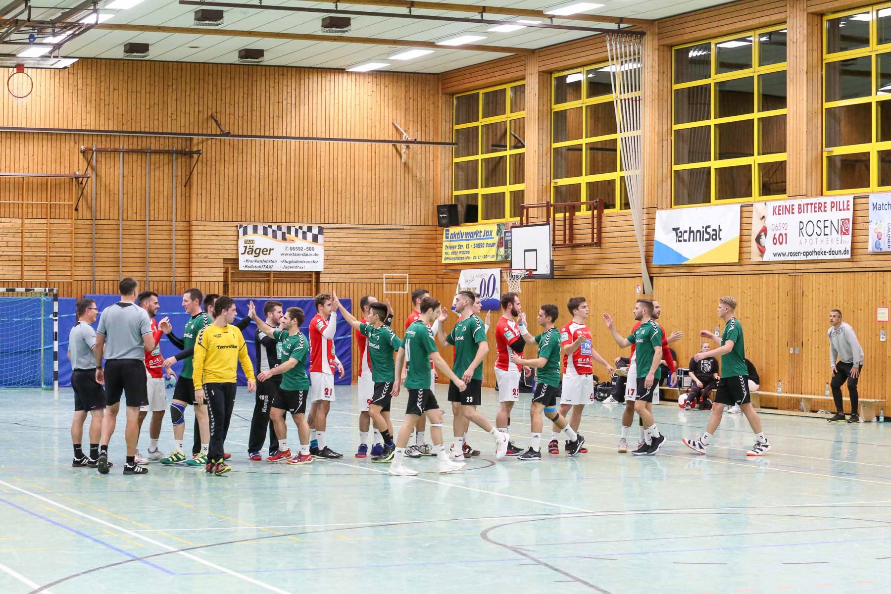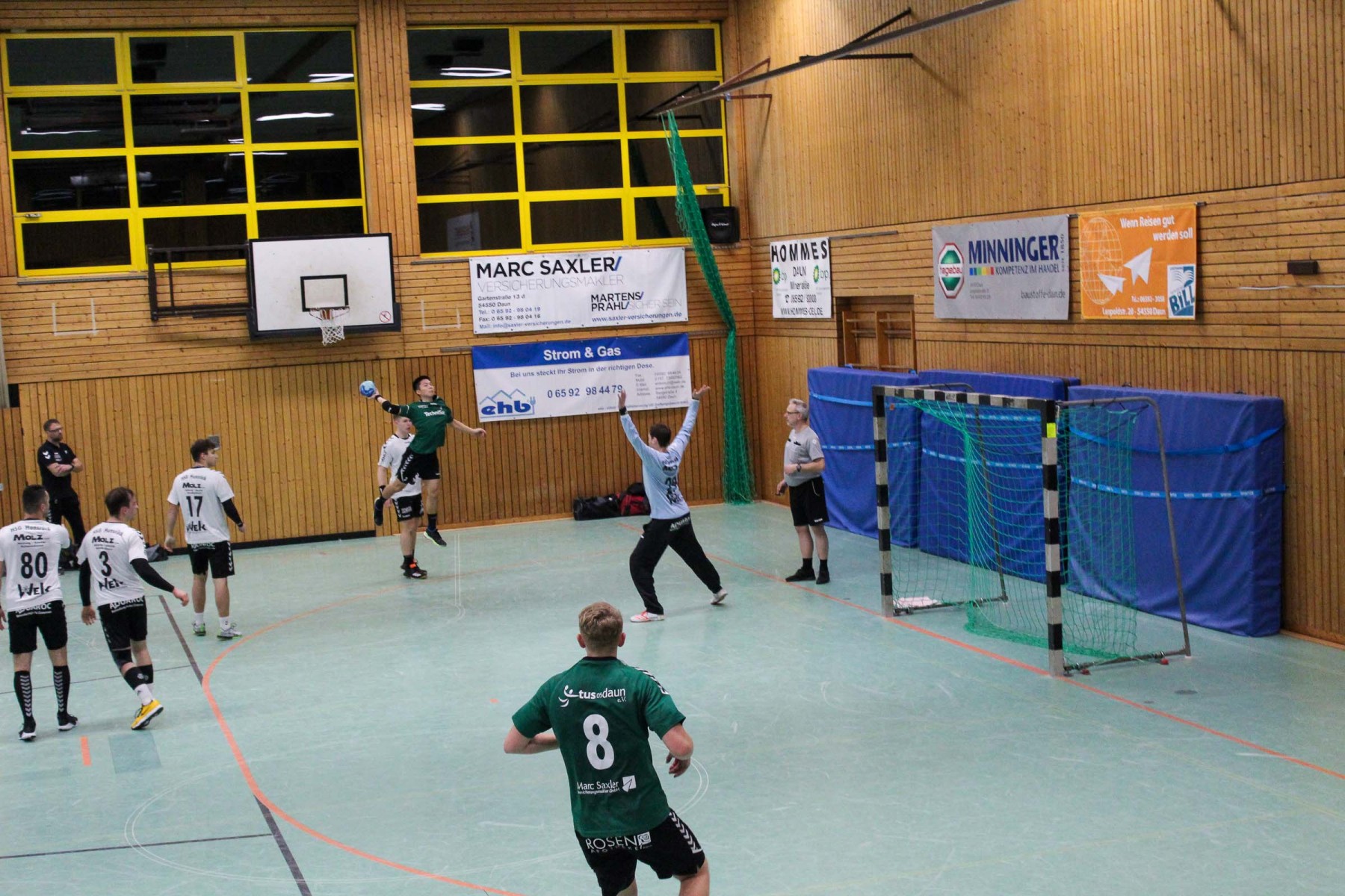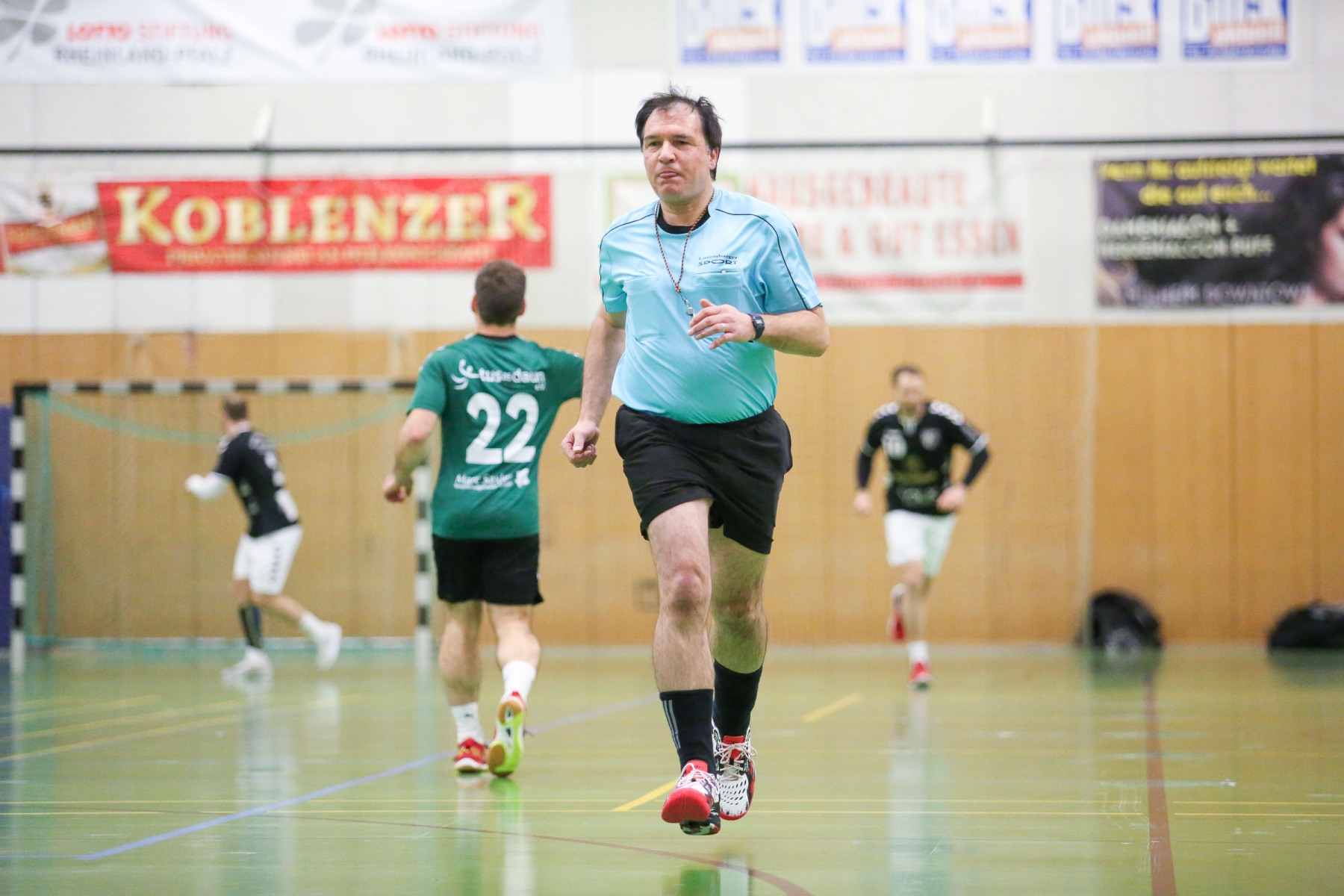 Die Unparteiischen verloren mit zunehmender Spieldauer ihre Linie, die sie im ersten Spielabschnitt konsequent umgesetzt hatten, verteilten unverständliche Zeitstrafen hüben wie drüben und griffen damit ins Spielgeschehen ein. So entwickelte sich eine hektische Schlussphase, in der die Saarburger Edin Mesevic und Almir Balas – die sicherlich nicht austrainiert sind – das schlechte Rückzugsverhalten der Dauner bestraften und mit einem schnellen Anwurf von Edin Mesevic über Almir Balas mit einem Gegenstoßtor 52 Sekunden vor dem Ende für die Saarburger 35:34 Führung sorgten, die am Ende aber nicht reichte.