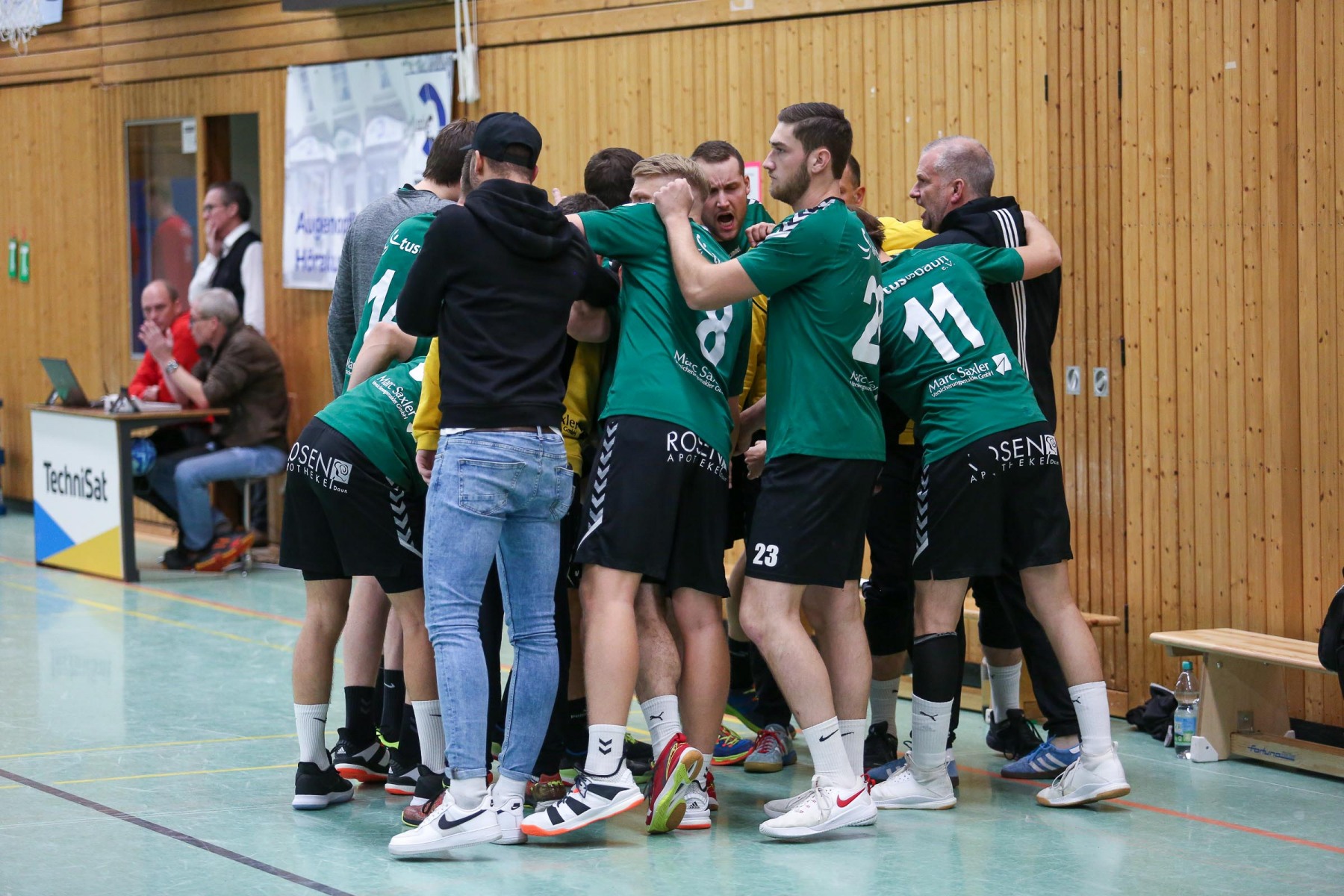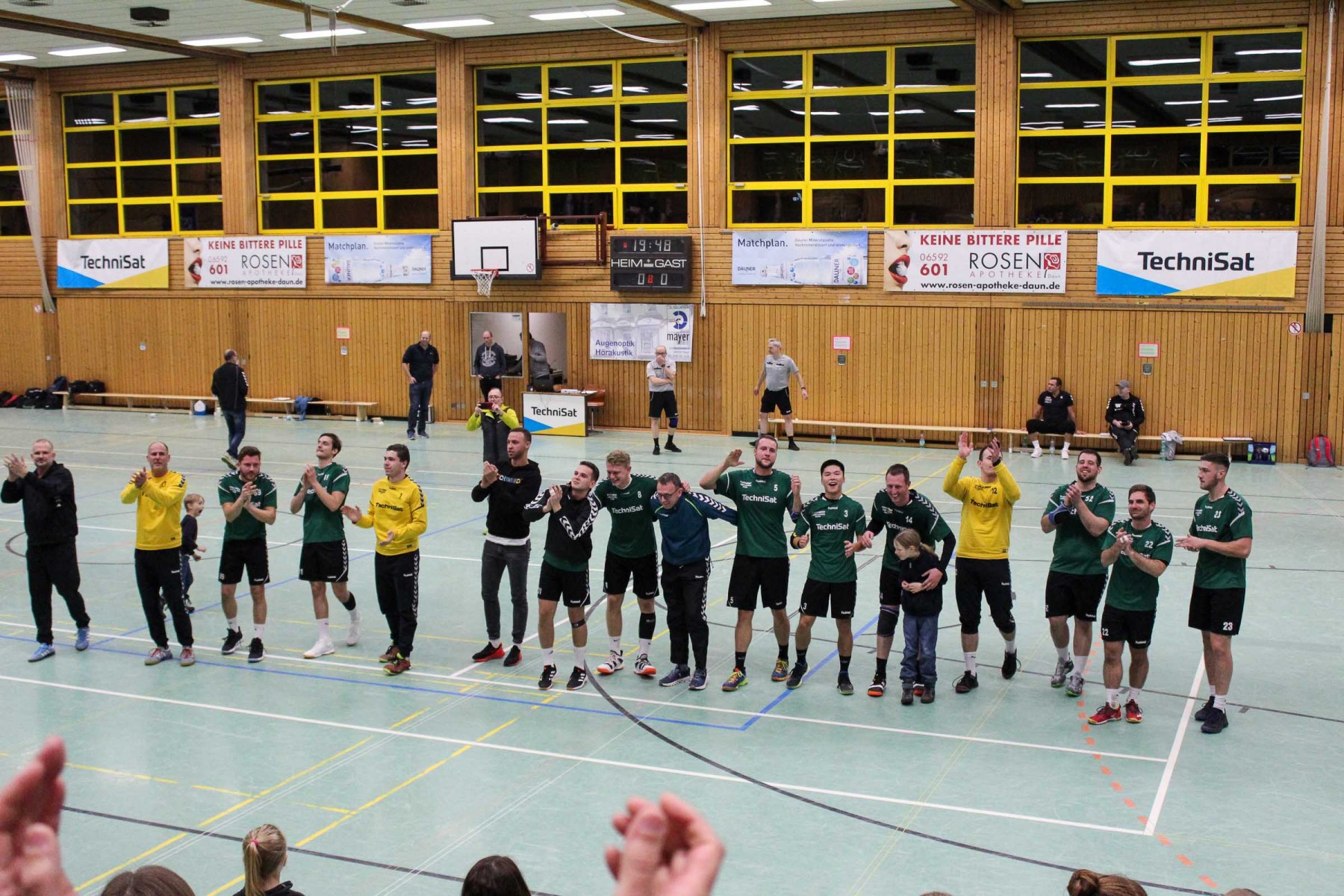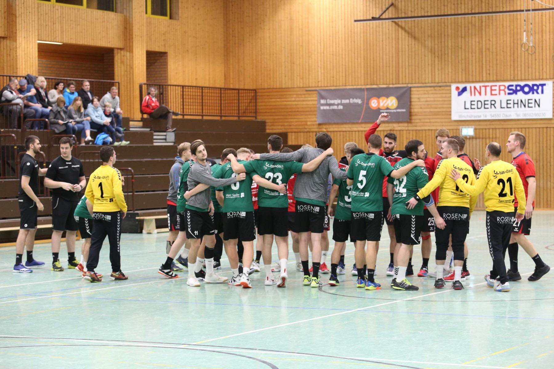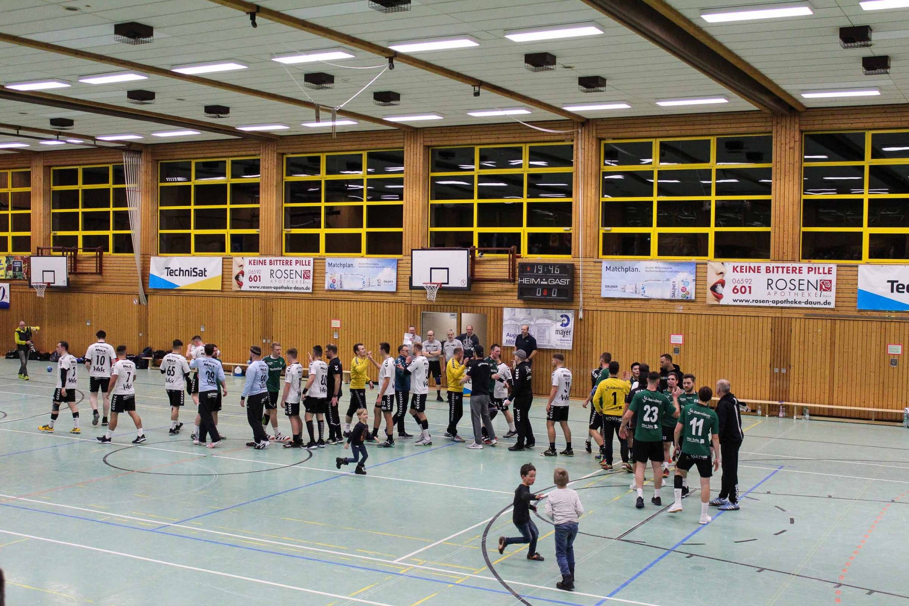 Die Unparteiischen verloren mit zunehmender Spieldauer ihre Linie, die sie im ersten Spielabschnitt konsequent umgesetzt hatten, verteilten unverständliche Zeitstrafen hüben wie drüben und griffen damit ins Spielgeschehen ein. So entwickelte sich eine hektische Schlussphase, in der die Saarburger Edin Mesevic und Almir Balas – die sicherlich nicht austrainiert sind – das schlechte Rückzugsverhalten der Dauner bestraften und mit einem schnellen Anwurf von Edin Mesevic über Almir Balas mit einem Gegenstoßtor 52 Sekunden vor dem Ende für die Saarburger 35:34 Führung sorgten, die am Ende aber nicht reichte.