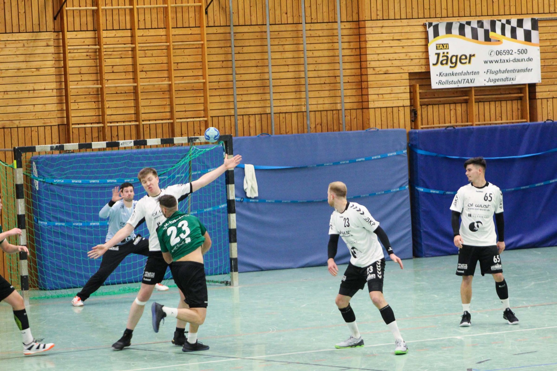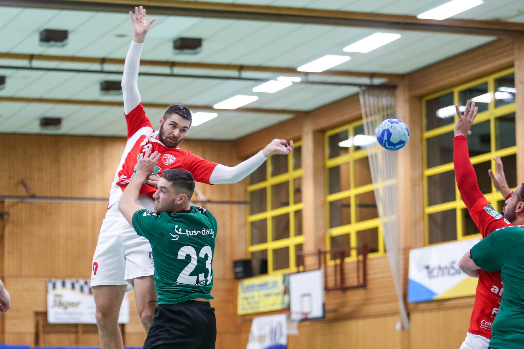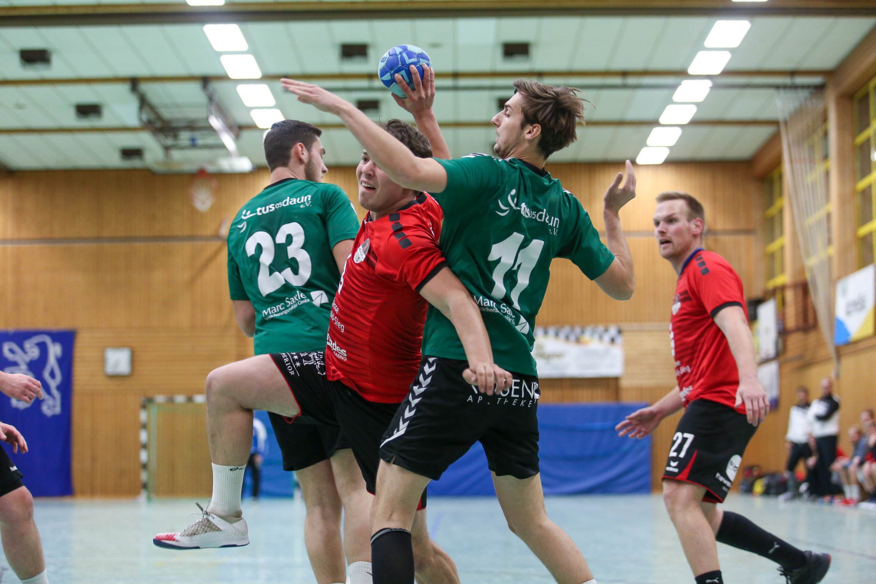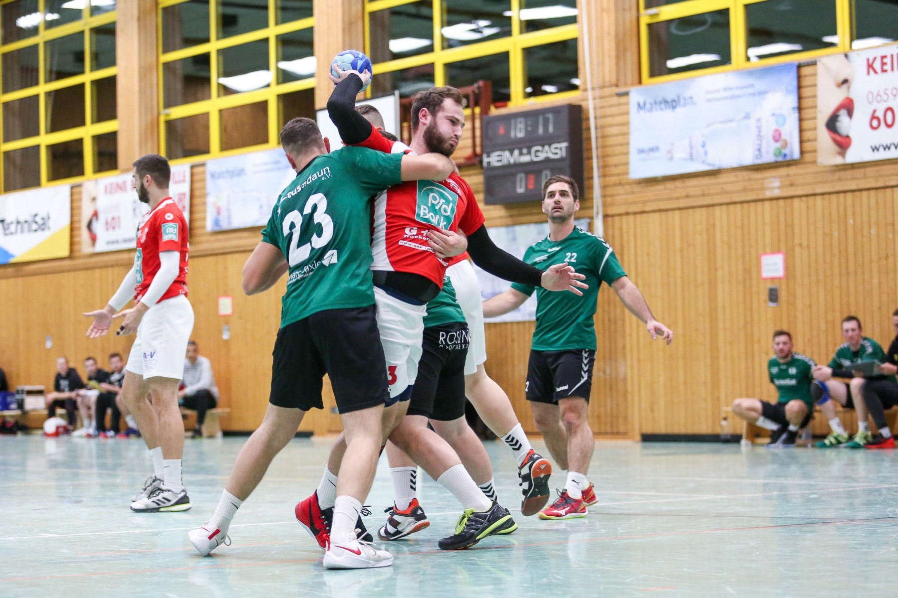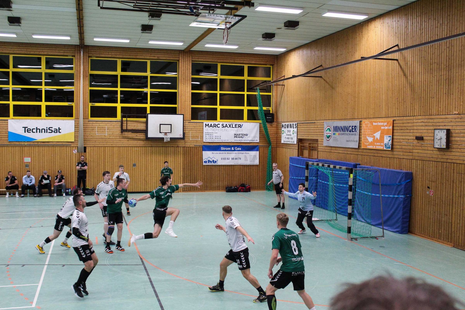 Besser auf Gastgeberkeeper Dupre eingestellt, kamen die Dauner aus der Kabine, machten jetzt die Bälle dunkel und schienen beim 16:17 in der 33. Minute das Spiel in den Griff zu bekommen. Doch dann das gleiche Bild: entweder gingen die Dauner Bälle über den Kasten oder wurden Beute des Fortunen Keepers. Saarburg nutzte die immer kopfloser agierenden Dauner Angriffsbemühungen, legte zum 20:17 in der 37. Minute vor und die Halle stand wie eine Wand hinter ihrem Team. Bis 23:20 in der 41. Minute schienen die Gastgeber auf dem besten Wege, für die Überraschung des Spieltages sorgen zu können, doch Daun stemmte sich mit seinen Leistungsträgern Pat Brümmer und Bassi Präder gegen die frühe Entscheidung. So glich der Gast beim 23:23 in der 43. Minute aus.