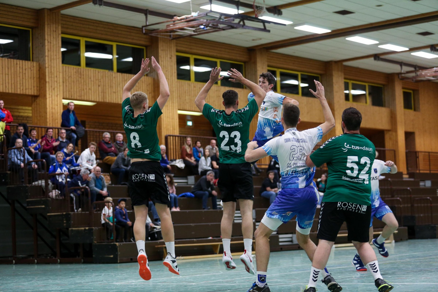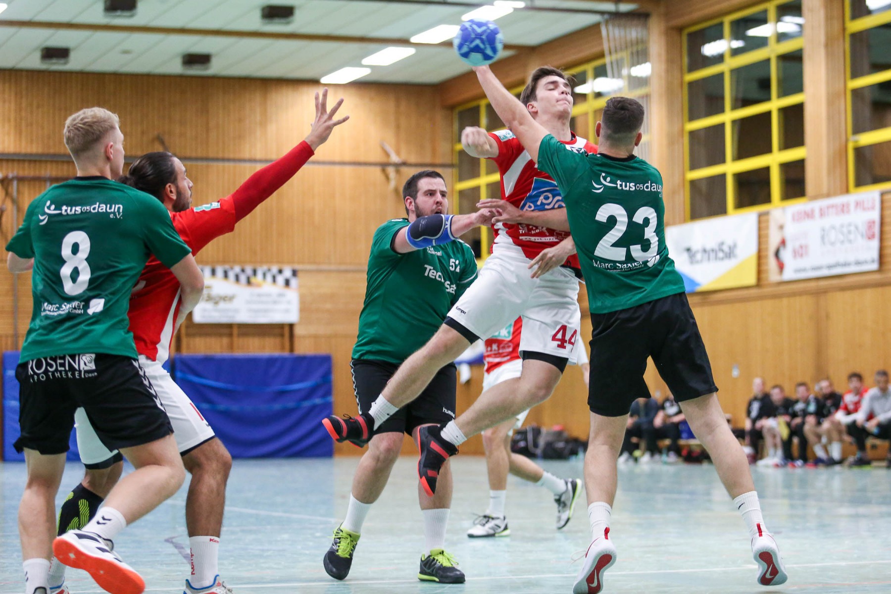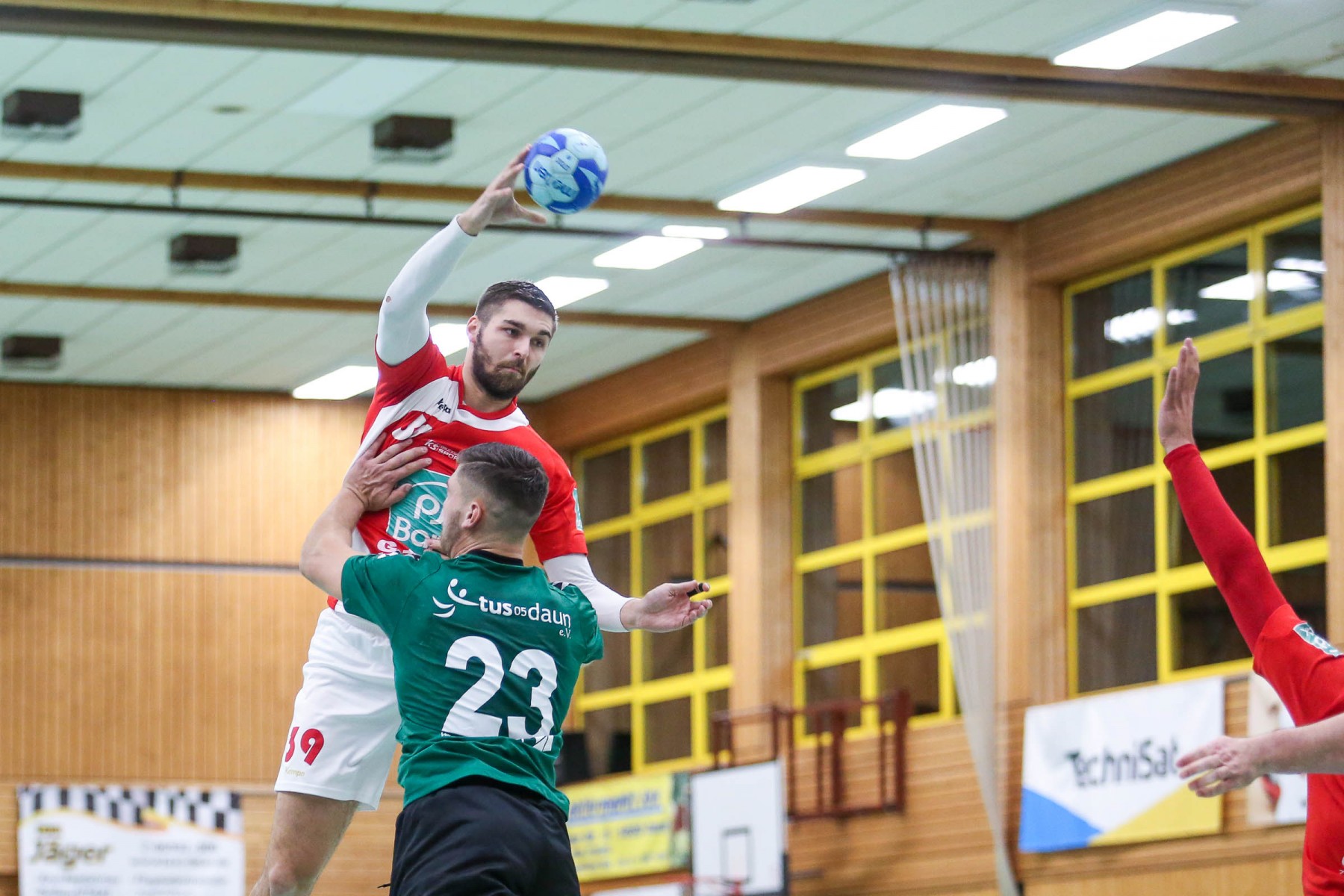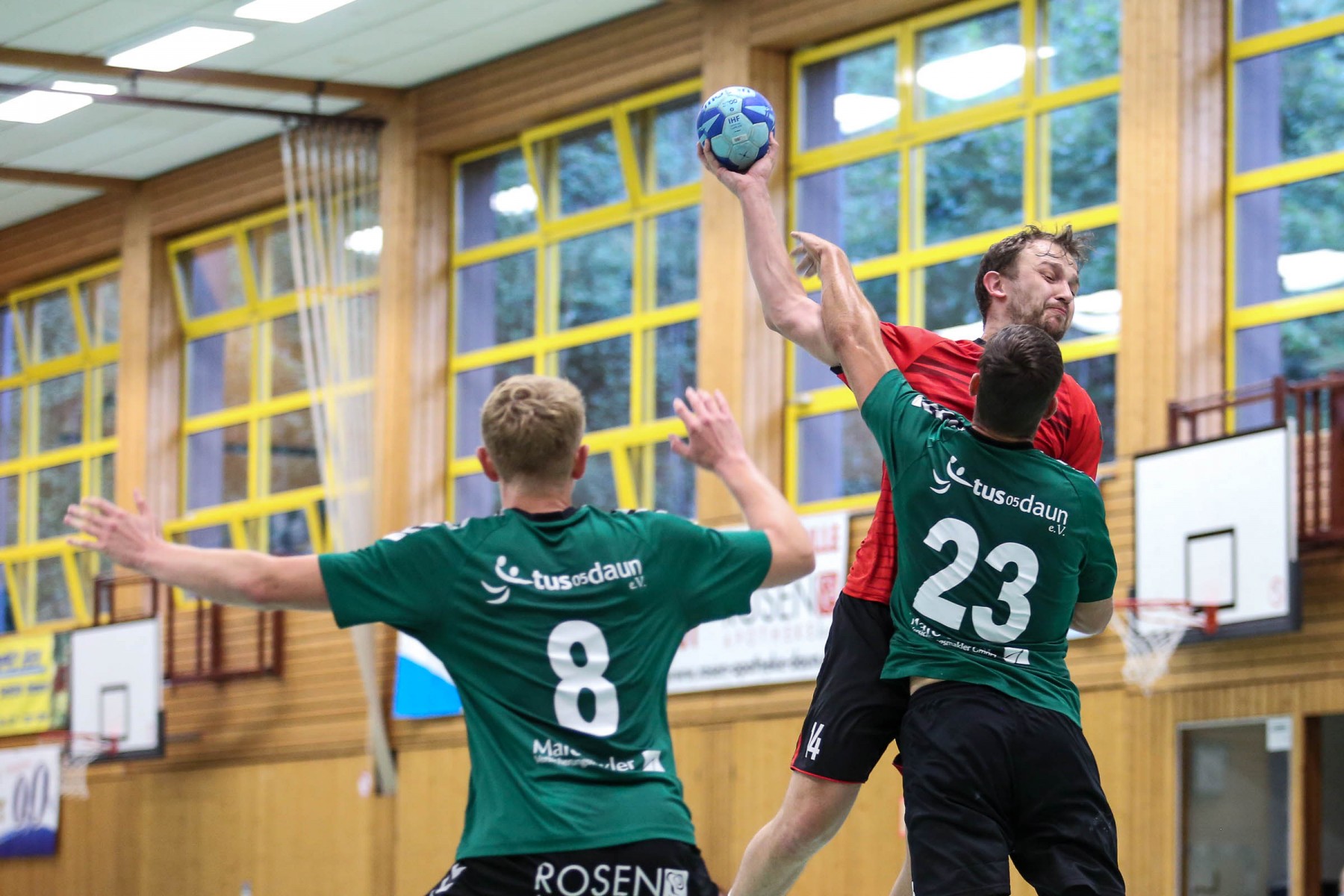 Besser auf Gastgeberkeeper Dupre eingestellt, kamen die Dauner aus der Kabine, machten jetzt die Bälle dunkel und schienen beim 16:17 in der 33. Minute das Spiel in den Griff zu bekommen. Doch dann das gleiche Bild: entweder gingen die Dauner Bälle über den Kasten oder wurden Beute des Fortunen Keepers. Saarburg nutzte die immer kopfloser agierenden Dauner Angriffsbemühungen, legte zum 20:17 in der 37. Minute vor und die Halle stand wie eine Wand hinter ihrem Team. Bis 23:20 in der 41. Minute schienen die Gastgeber auf dem besten Wege, für die Überraschung des Spieltages sorgen zu können, doch Daun stemmte sich mit seinen Leistungsträgern Pat Brümmer und Bassi Präder gegen die frühe Entscheidung. So glich der Gast beim 23:23 in der 43. Minute aus.