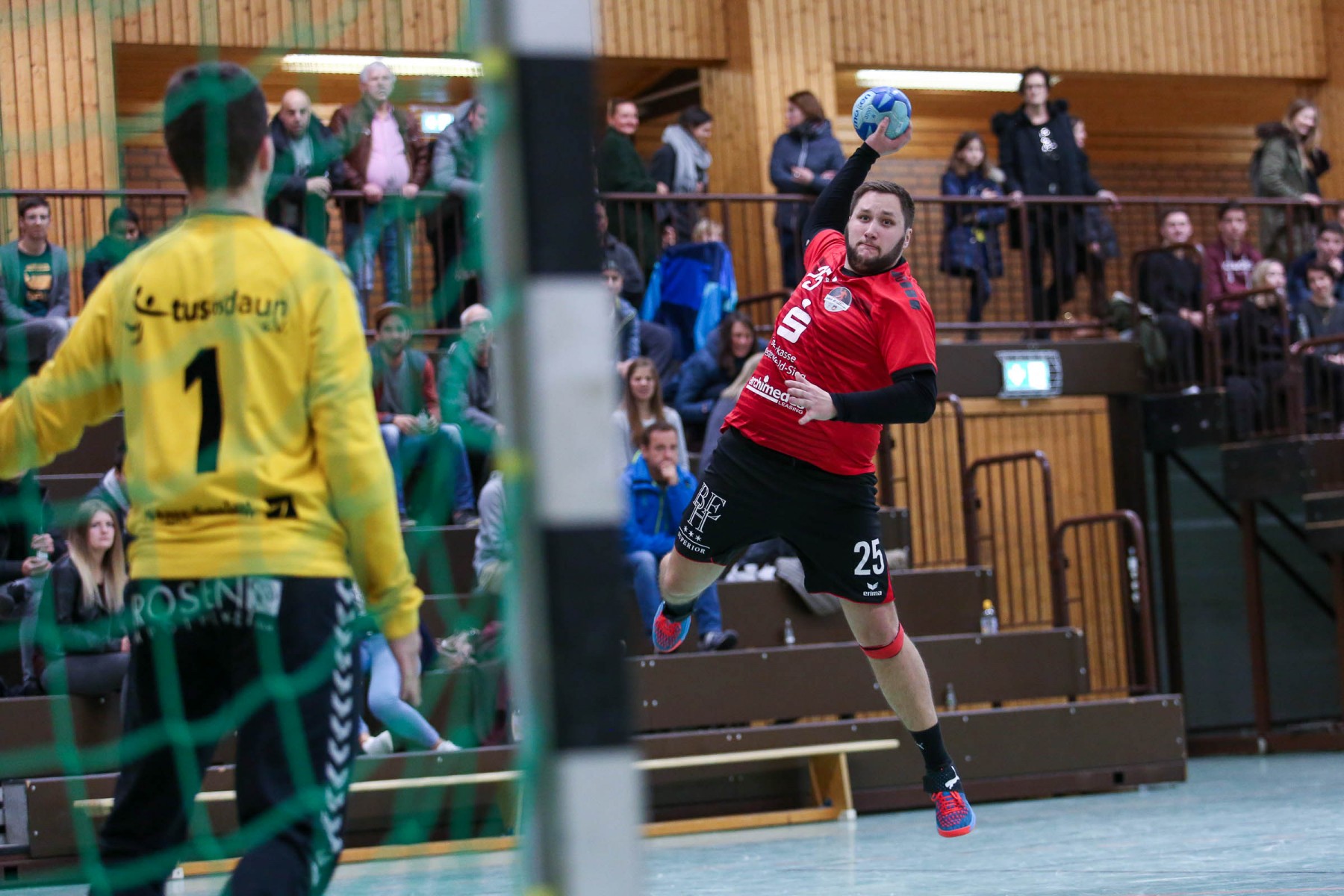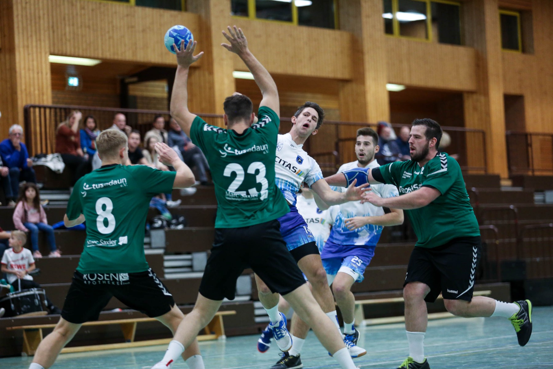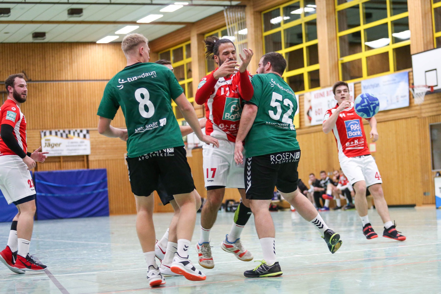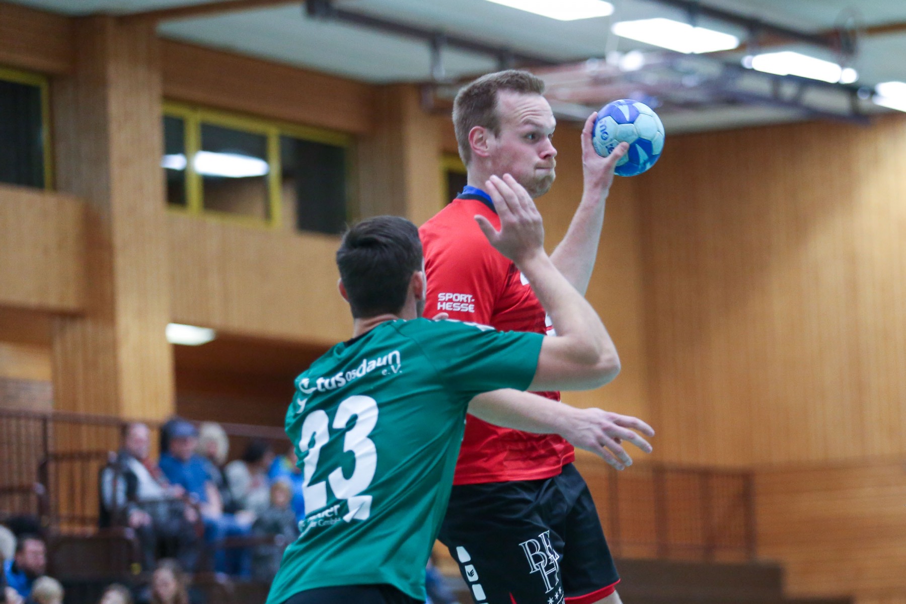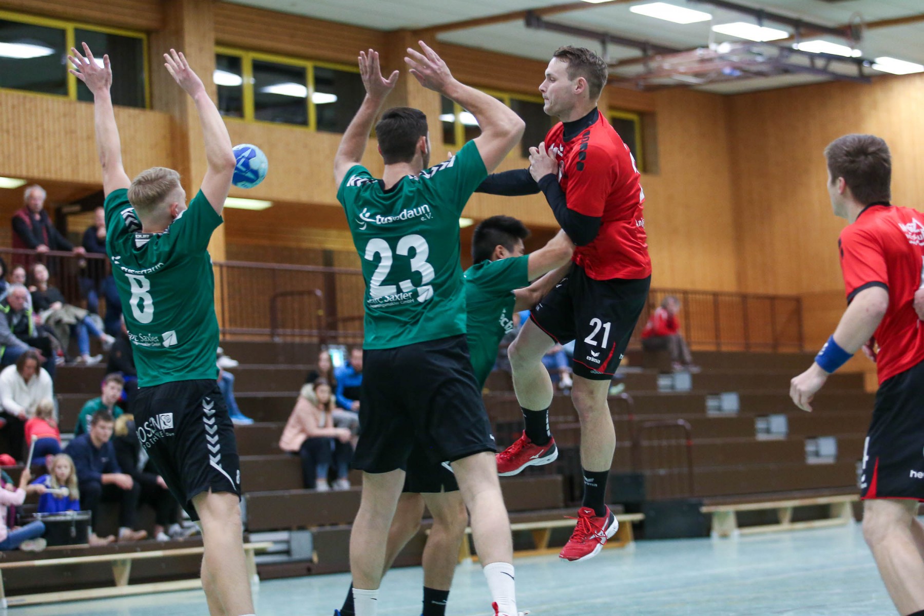 Besser auf Gastgeberkeeper Dupre eingestellt, kamen die Dauner aus der Kabine, machten jetzt die Bälle dunkel und schienen beim 16:17 in der 33. Minute das Spiel in den Griff zu bekommen. Doch dann das gleiche Bild: entweder gingen die Dauner Bälle über den Kasten oder wurden Beute des Fortunen Keepers. Saarburg nutzte die immer kopfloser agierenden Dauner Angriffsbemühungen, legte zum 20:17 in der 37. Minute vor und die Halle stand wie eine Wand hinter ihrem Team. Bis 23:20 in der 41. Minute schienen die Gastgeber auf dem besten Wege, für die Überraschung des Spieltages sorgen zu können, doch Daun stemmte sich mit seinen Leistungsträgern Pat Brümmer und Bassi Präder gegen die frühe Entscheidung. So glich der Gast beim 23:23 in der 43. Minute aus.