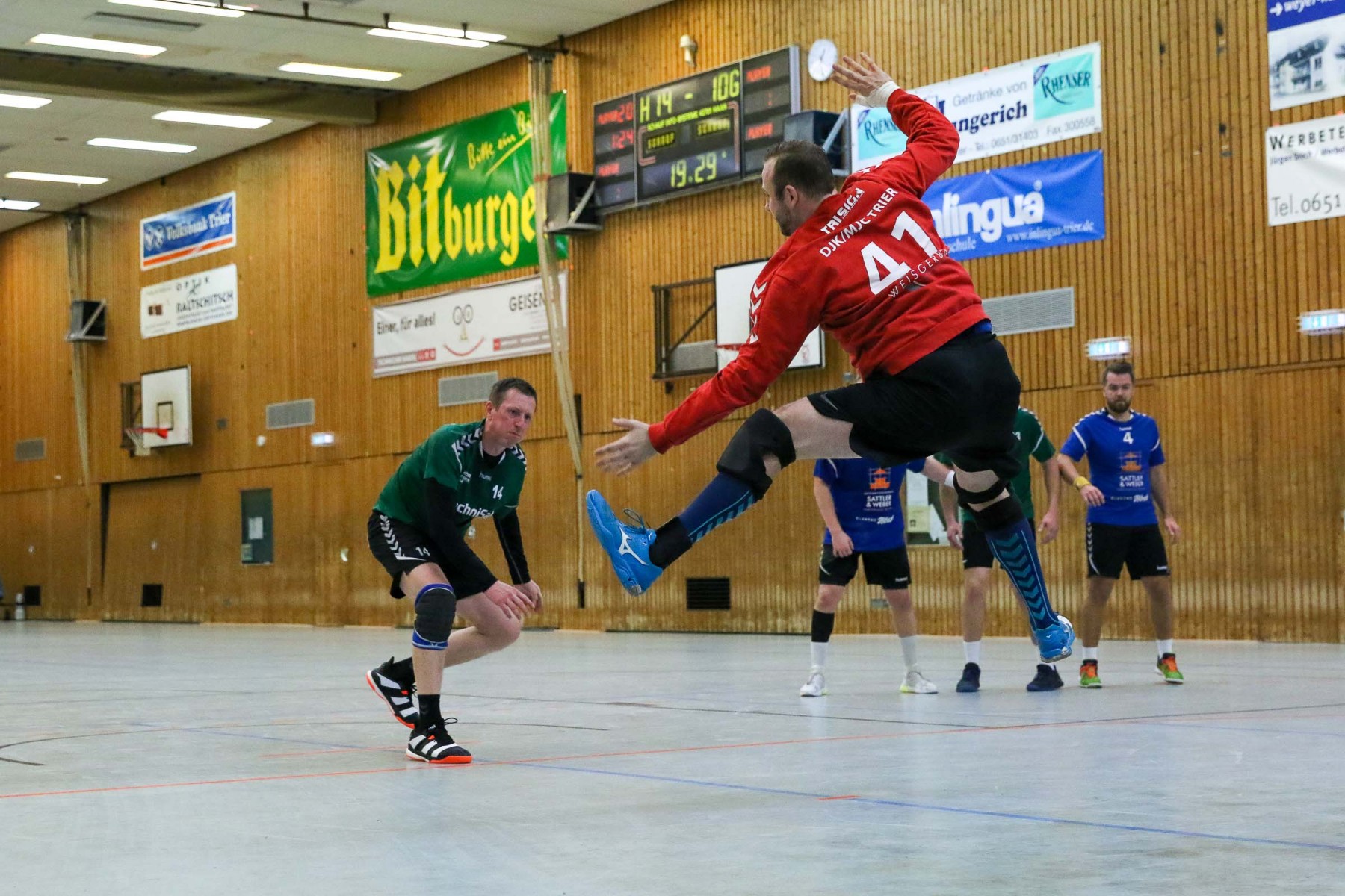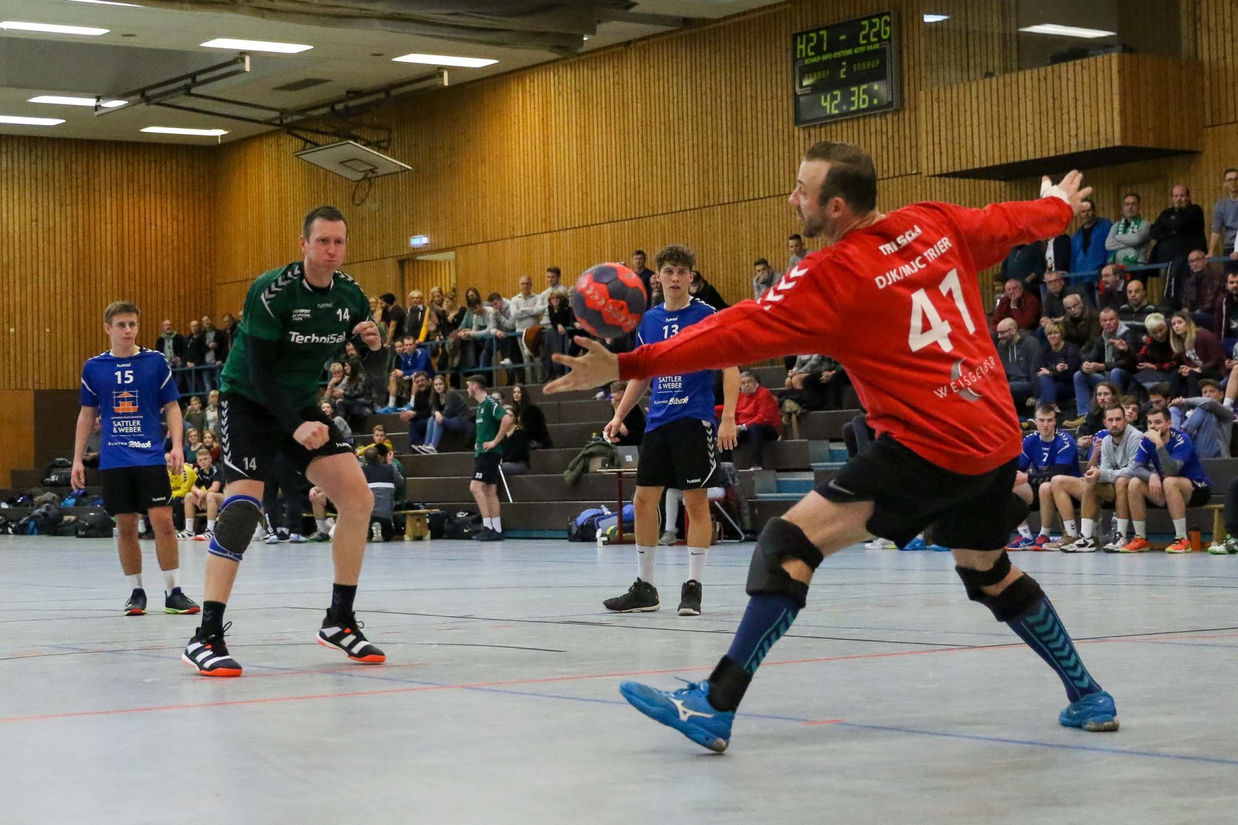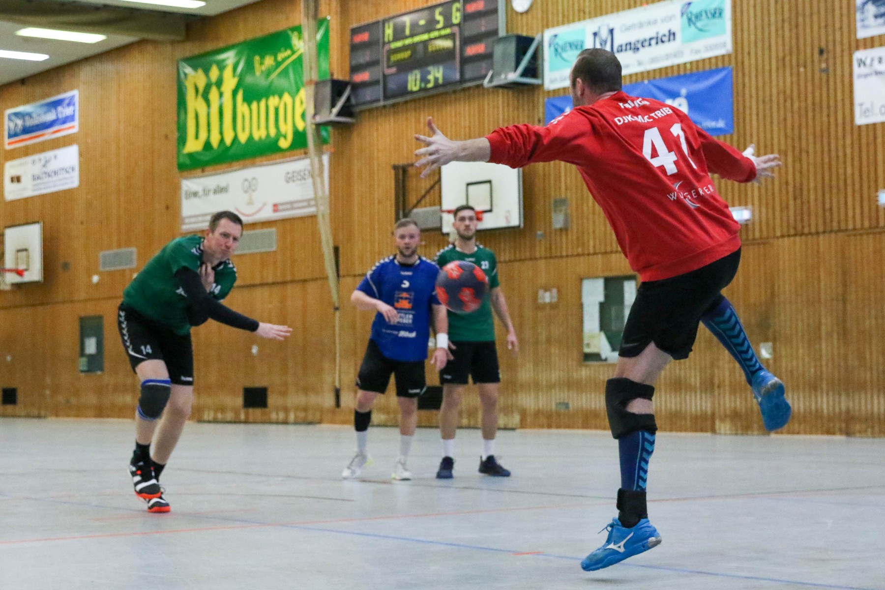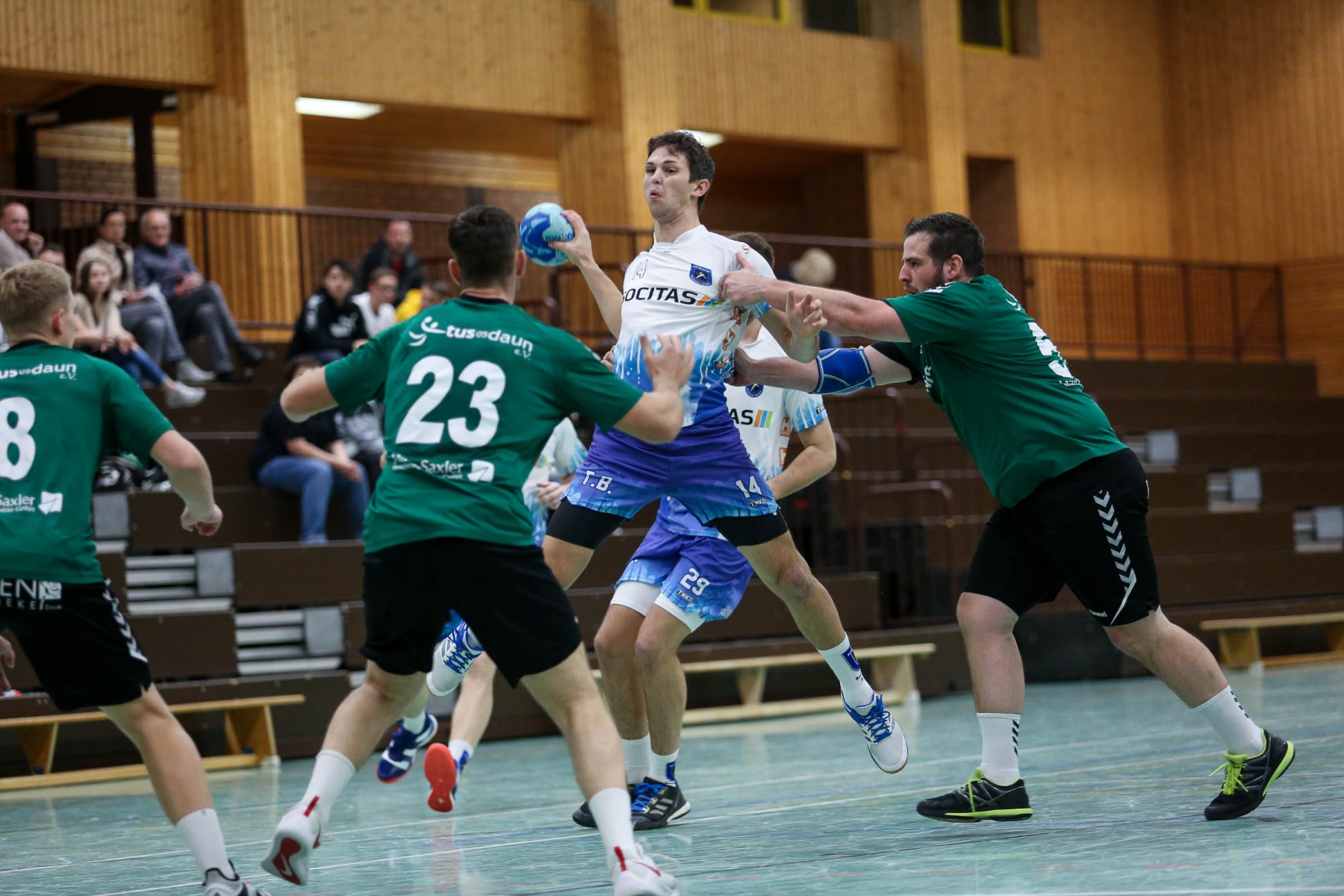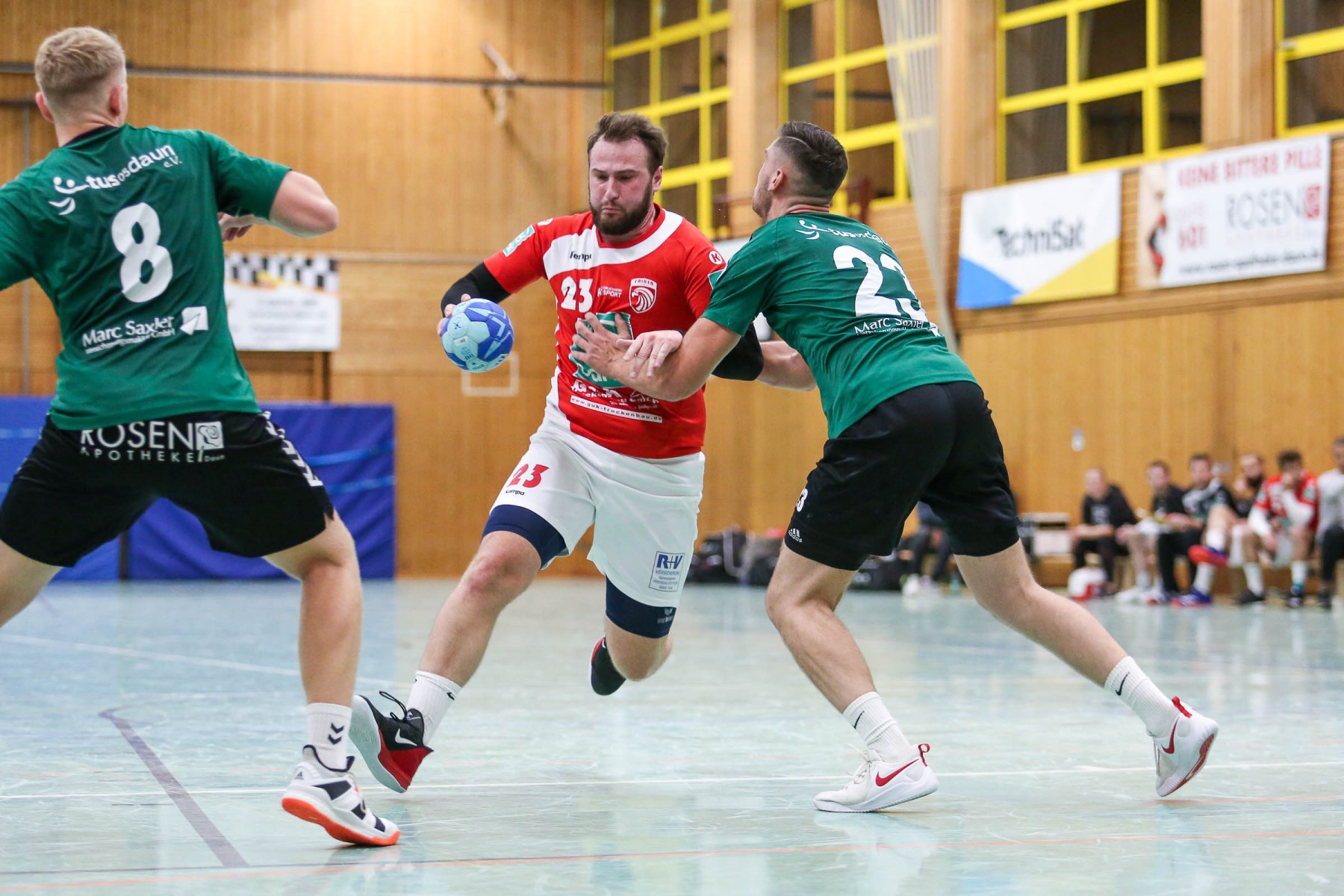 Besser auf Gastgeberkeeper Dupre eingestellt, kamen die Dauner aus der Kabine, machten jetzt die Bälle dunkel und schienen beim 16:17 in der 33. Minute das Spiel in den Griff zu bekommen. Doch dann das gleiche Bild: entweder gingen die Dauner Bälle über den Kasten oder wurden Beute des Fortunen Keepers. Saarburg nutzte die immer kopfloser agierenden Dauner Angriffsbemühungen, legte zum 20:17 in der 37. Minute vor und die Halle stand wie eine Wand hinter ihrem Team. Bis 23:20 in der 41. Minute schienen die Gastgeber auf dem besten Wege, für die Überraschung des Spieltages sorgen zu können, doch Daun stemmte sich mit seinen Leistungsträgern Pat Brümmer und Bassi Präder gegen die frühe Entscheidung. So glich der Gast beim 23:23 in der 43. Minute aus.