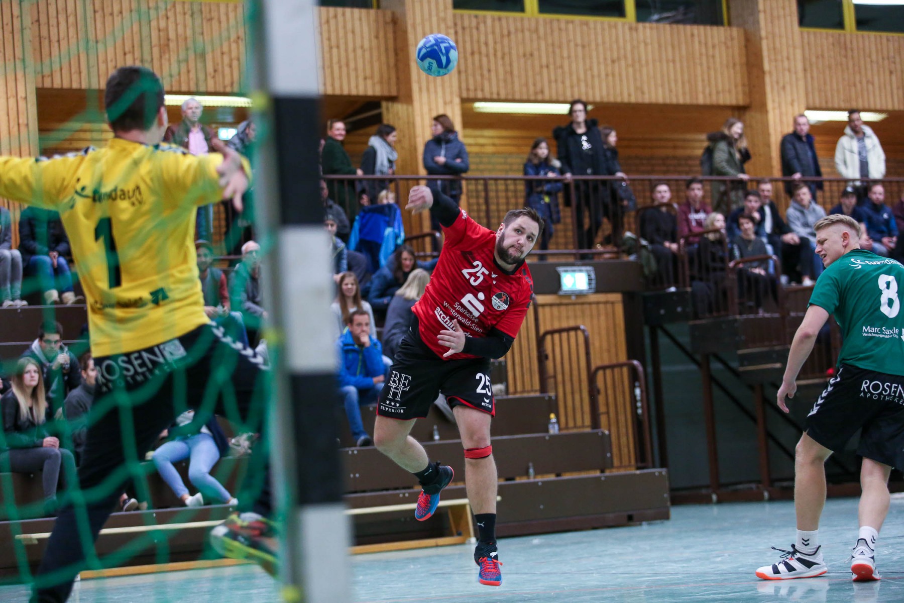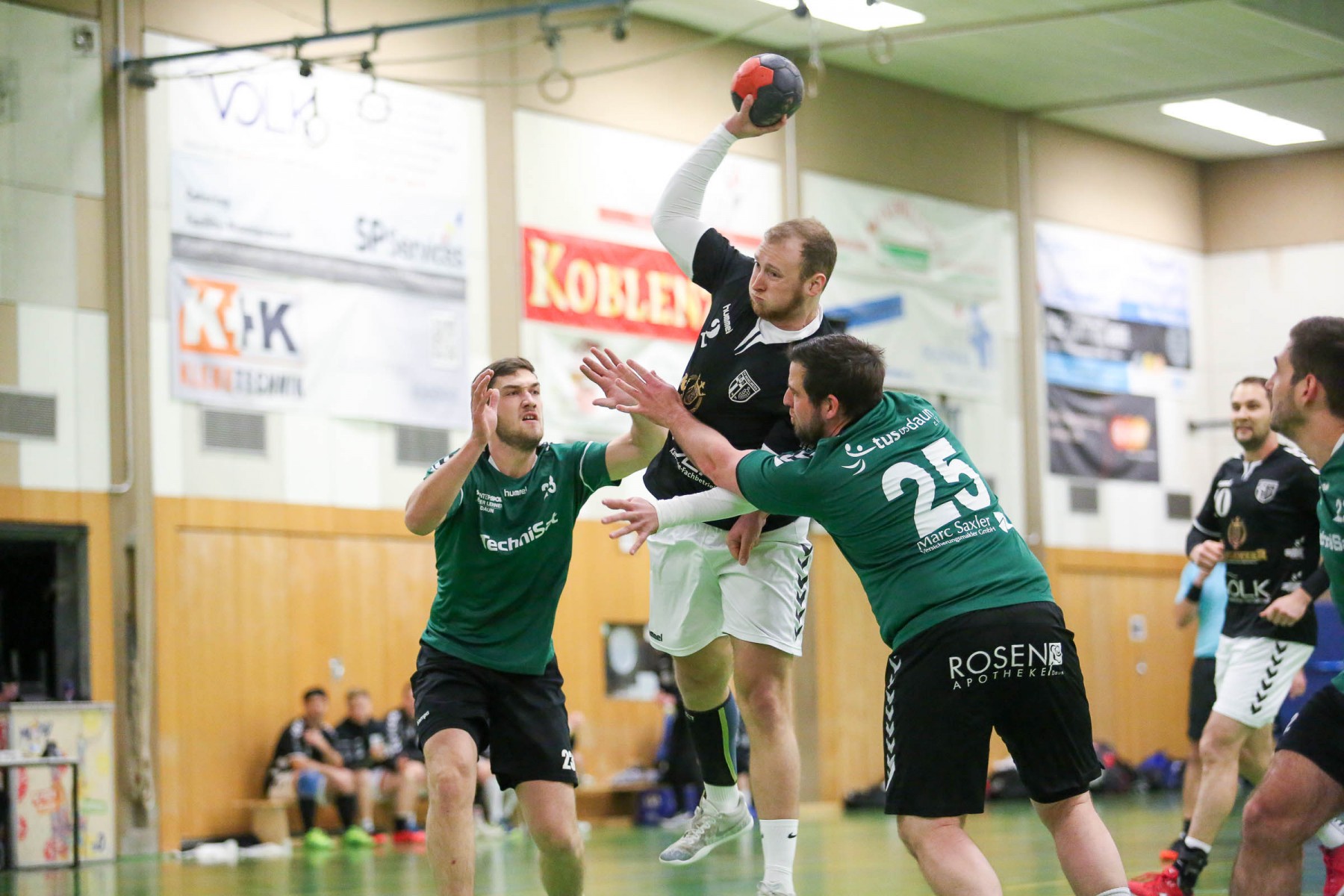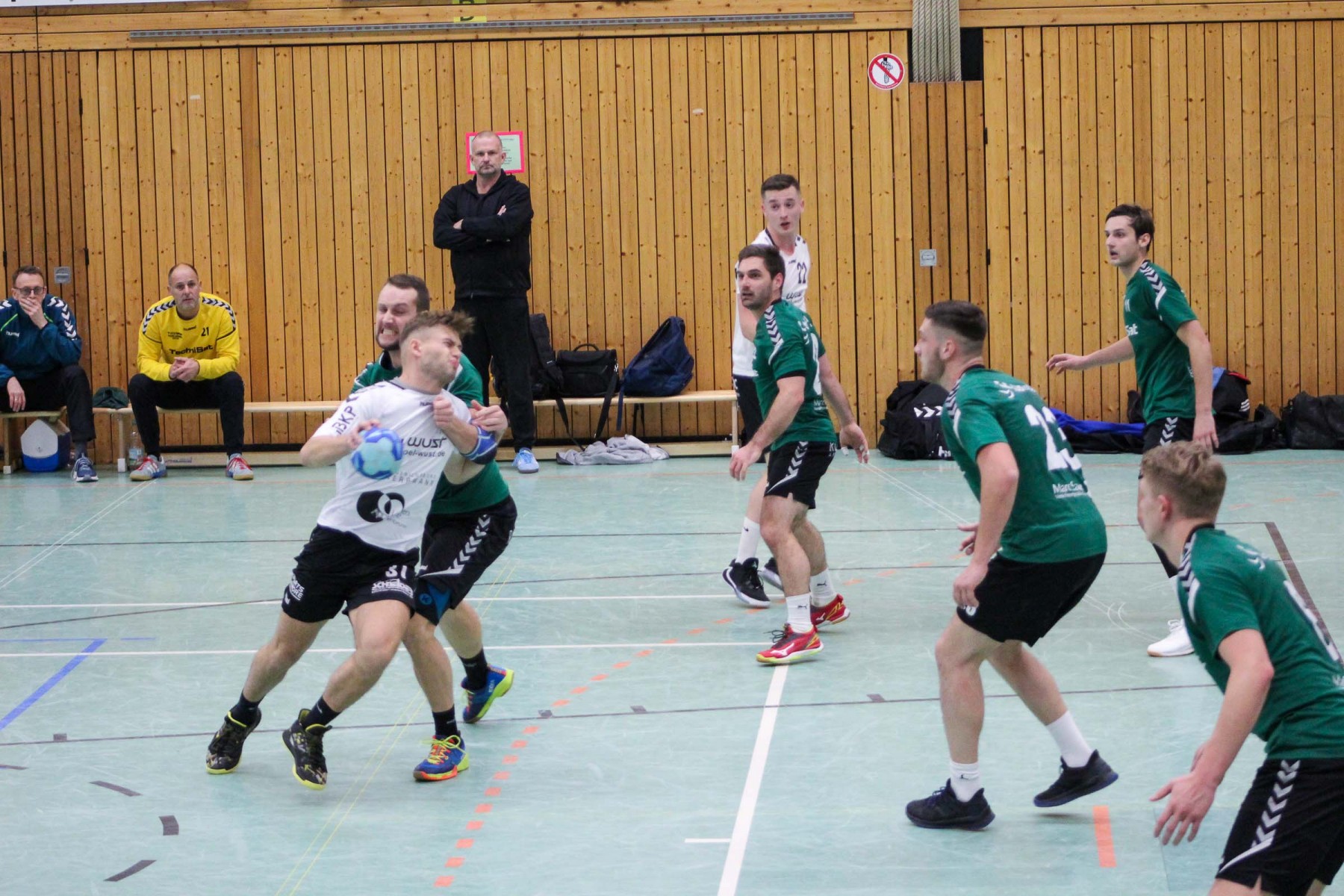 Vor 250 Zuschauern in der fast ausverkauften Sporthalle in Beurig entwickelte sich von Beginn an eine ausgeglichene Begegnung, in der beide Teams zunächst mit einer defensiven 6:0 Deckung ihr Glück versuchten.