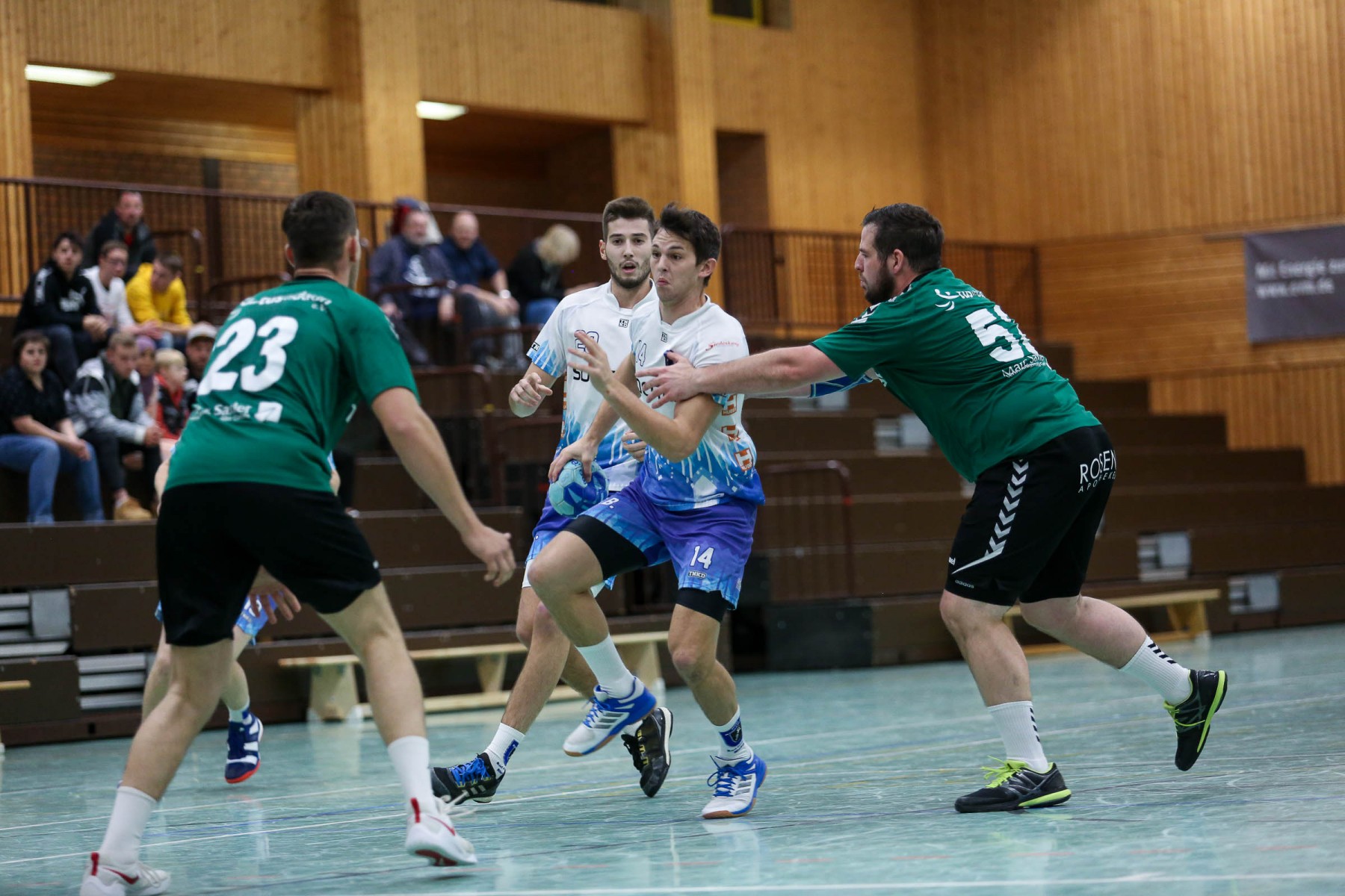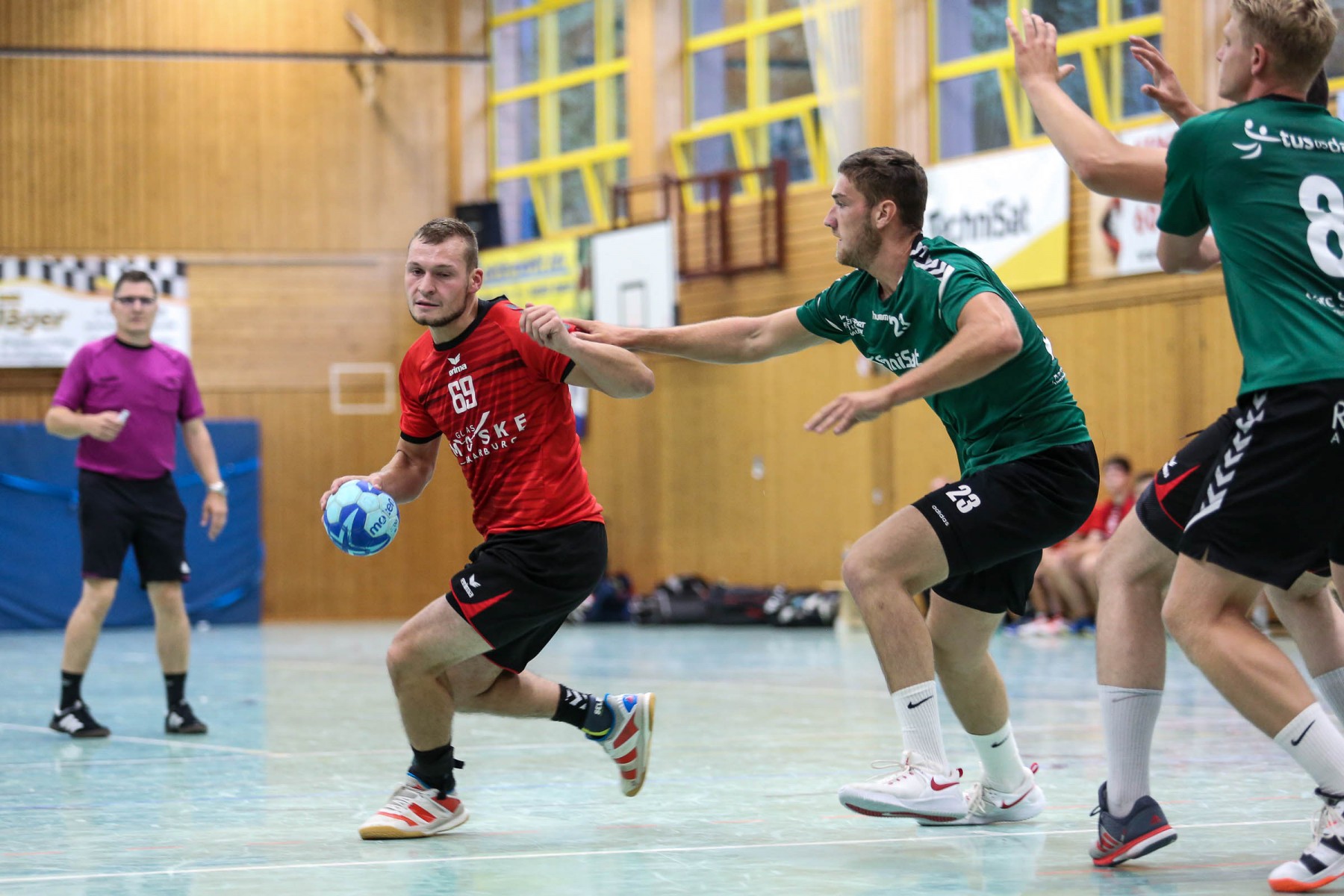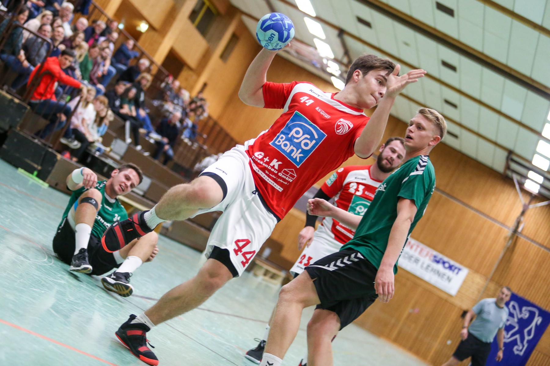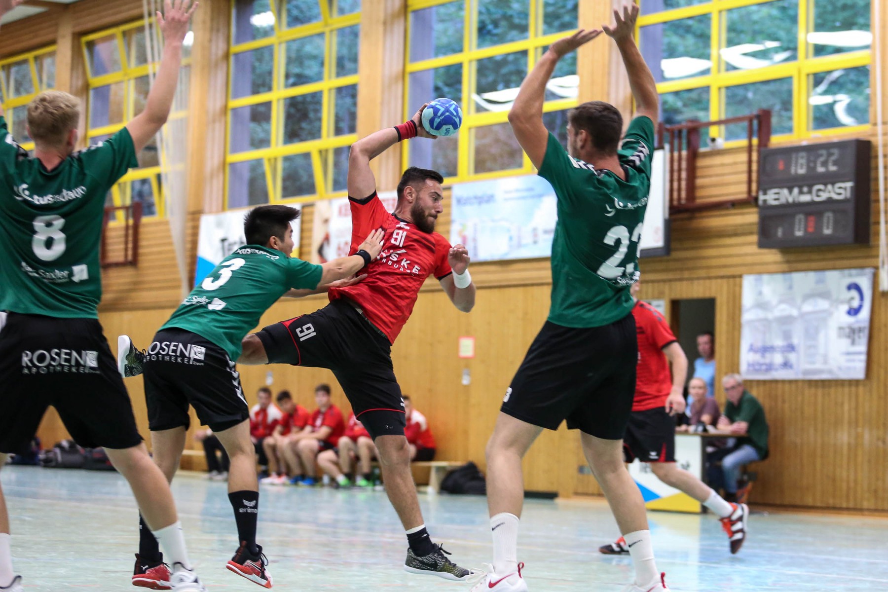 Vor 250 Zuschauern in der fast ausverkauften Sporthalle in Beurig entwickelte sich von Beginn an eine ausgeglichene Begegnung, in der beide Teams zunächst mit einer defensiven 6:0 Deckung ihr Glück versuchten.