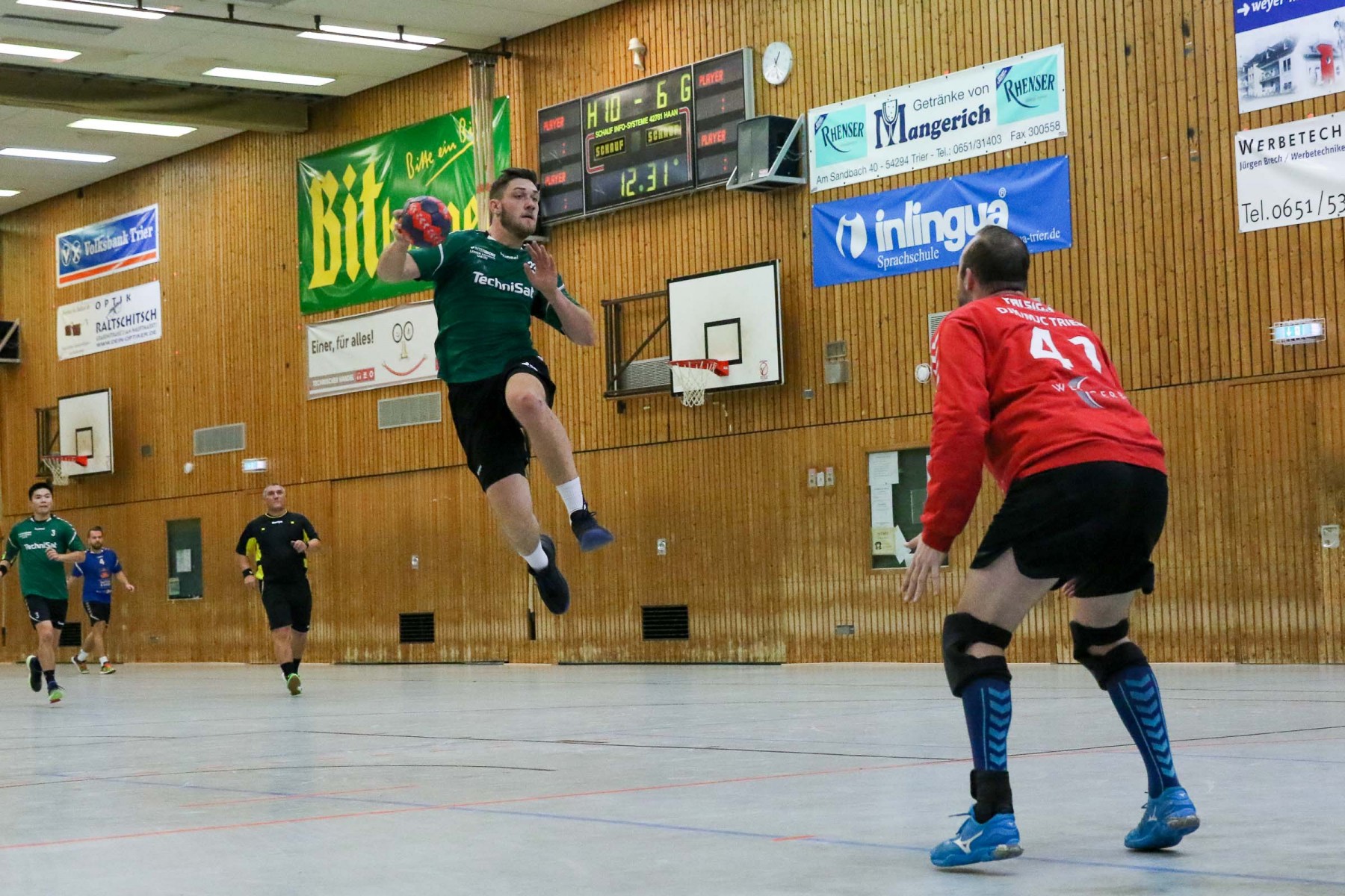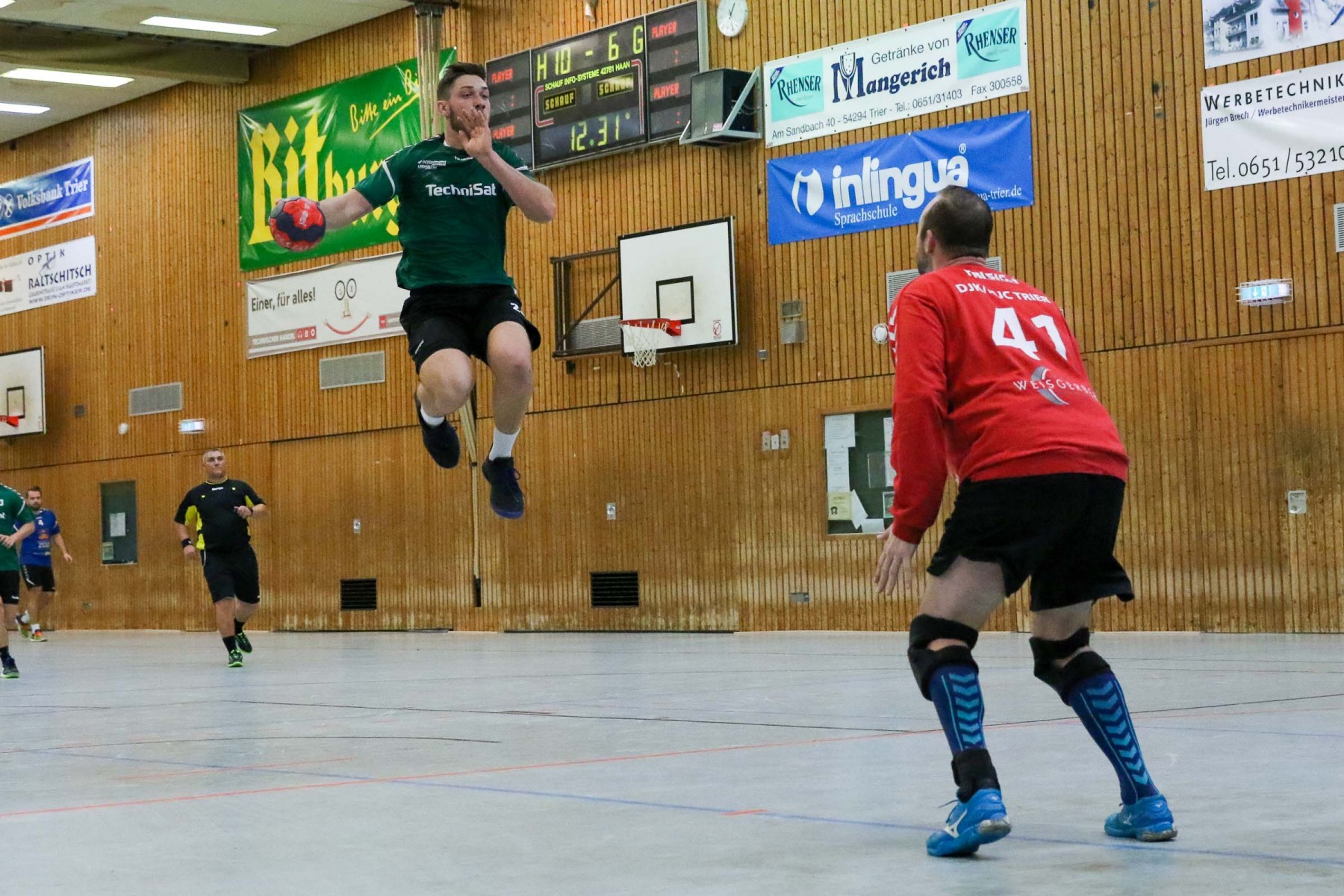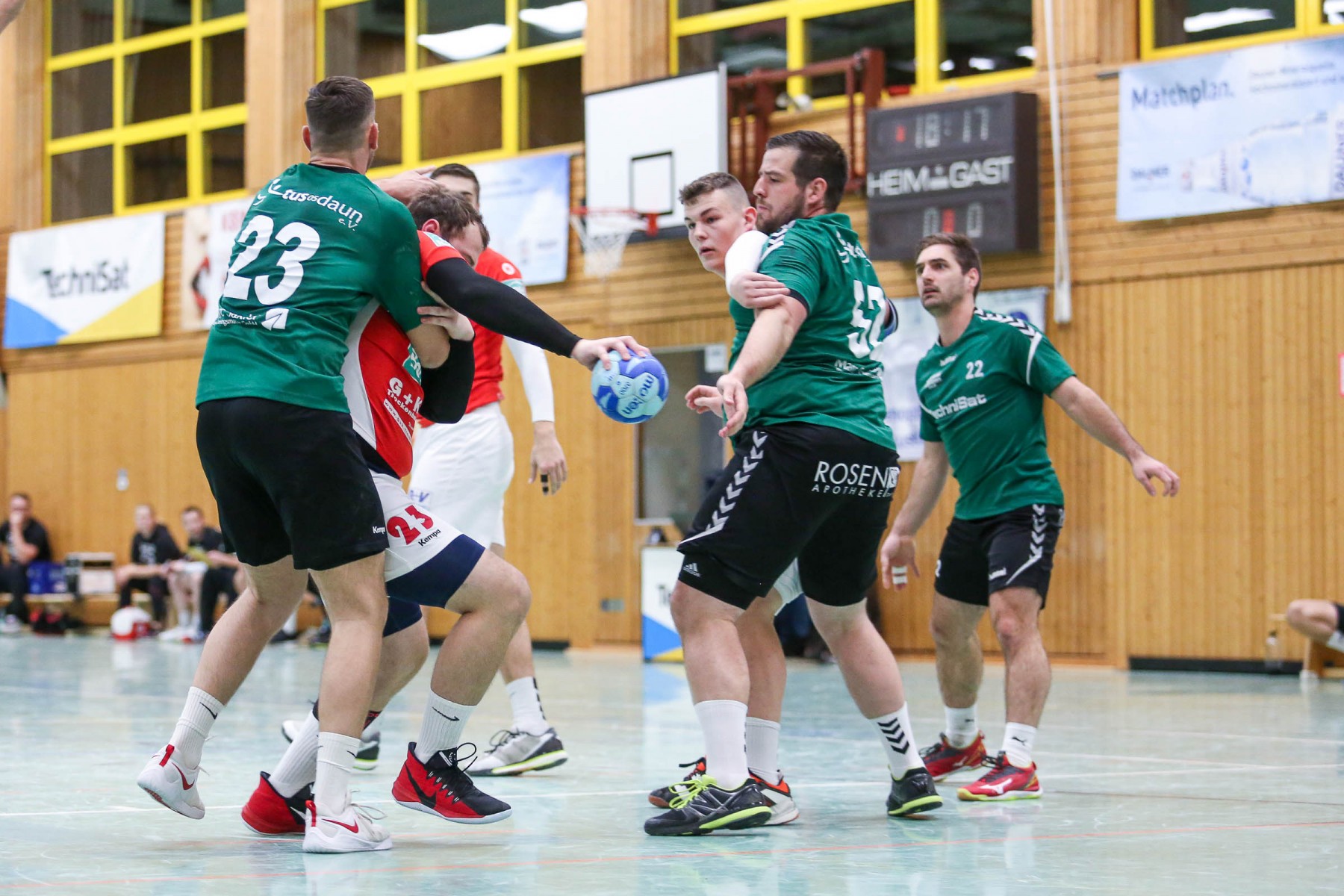 Zudem schienen die Dauner Angreifer an diesem Abend kein Zielwasser getrunken zu haben, knallten unbedrängt die Bälle am Saarburger Tor vorbei oder scheiterten am erfahrenen Marc Dupre im Gastgeber Kasten. Dupre gewann an diesem Abend das Torhüterduell klar, Daun rief an diesem Abend einfach keine Leistung im Tor ab! So ging die knappe Saarburger Führung zur Pause auch in Ordnung, zumal auch die Dauner Abwehr keine Mittel gegen die Körperlichkeit von Edin Mesevic fand, der den Eifelanern gleich sieben Buden im ersten Spielabschnitt einschenkte.