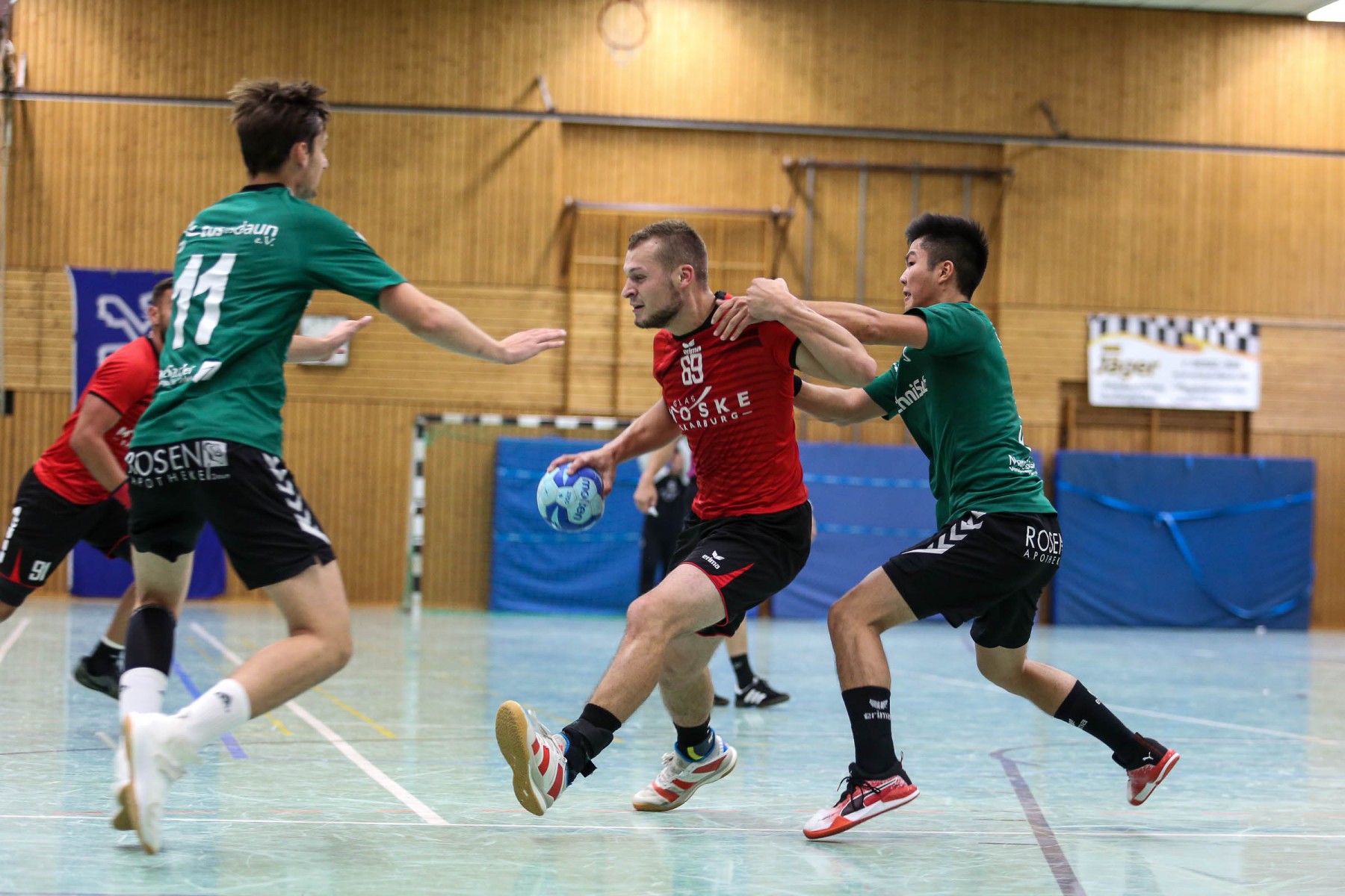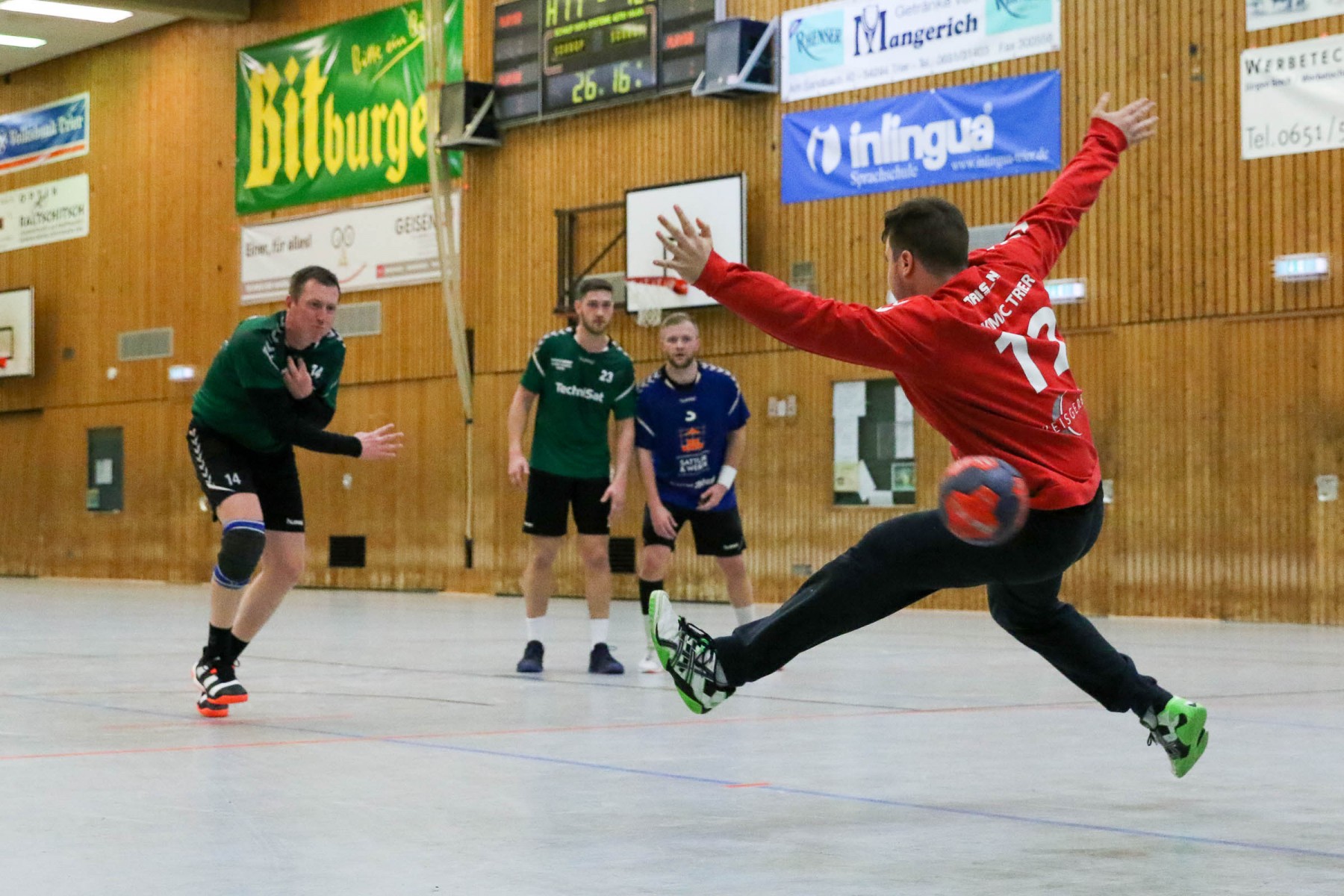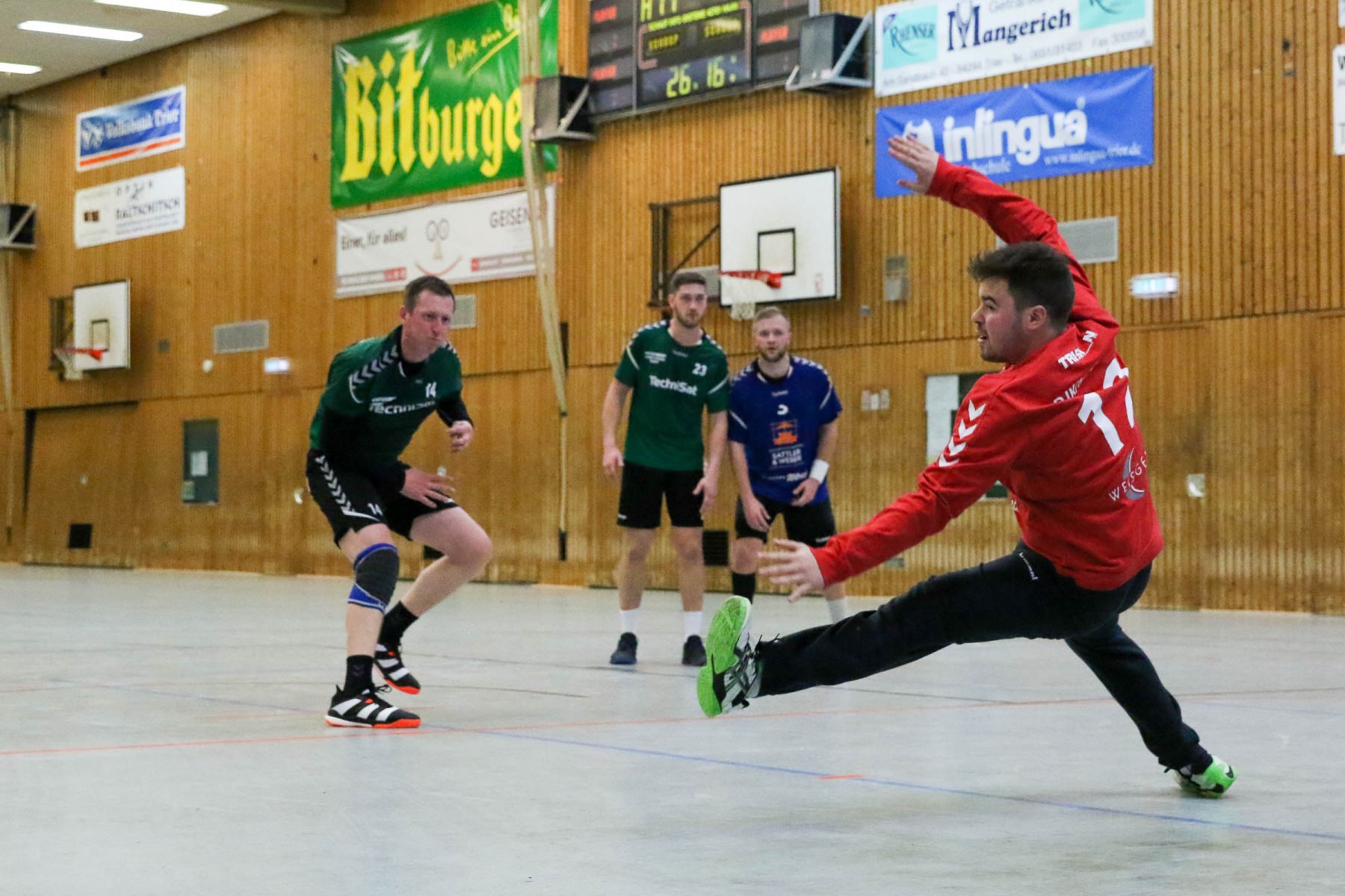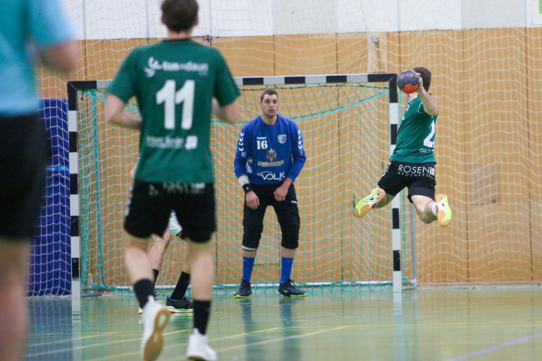 Zudem schienen die Dauner Angreifer an diesem Abend kein Zielwasser getrunken zu haben, knallten unbedrängt die Bälle am Saarburger Tor vorbei oder scheiterten am erfahrenen Marc Dupre im Gastgeber Kasten. Dupre gewann an diesem Abend das Torhüterduell klar, Daun rief an diesem Abend einfach keine Leistung im Tor ab! So ging die knappe Saarburger Führung zur Pause auch in Ordnung, zumal auch die Dauner Abwehr keine Mittel gegen die Körperlichkeit von Edin Mesevic fand, der den Eifelanern gleich sieben Buden im ersten Spielabschnitt einschenkte.