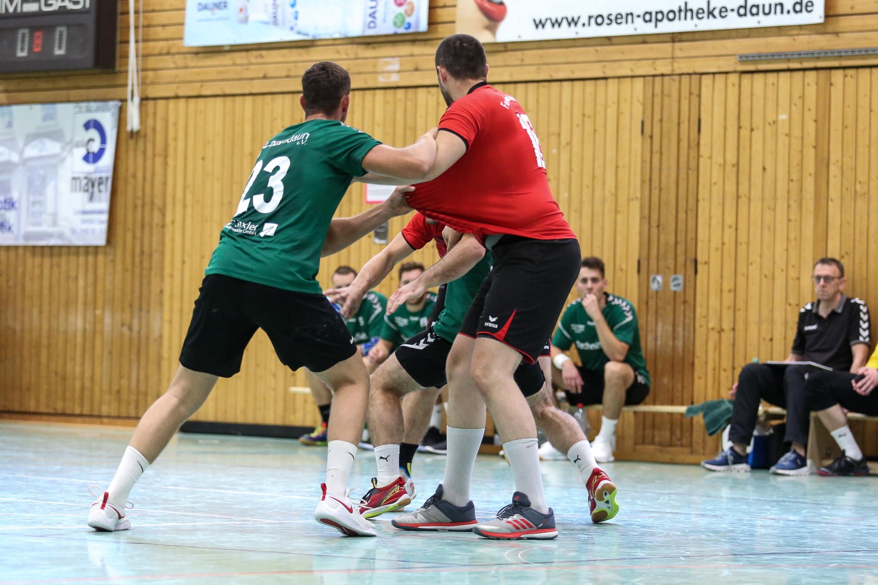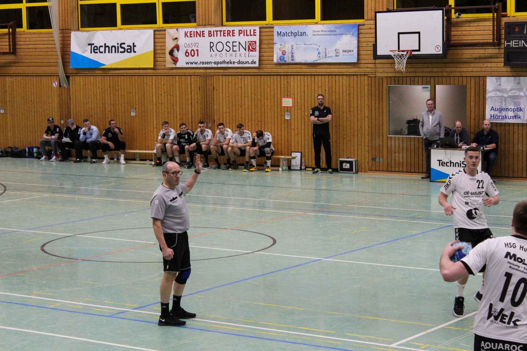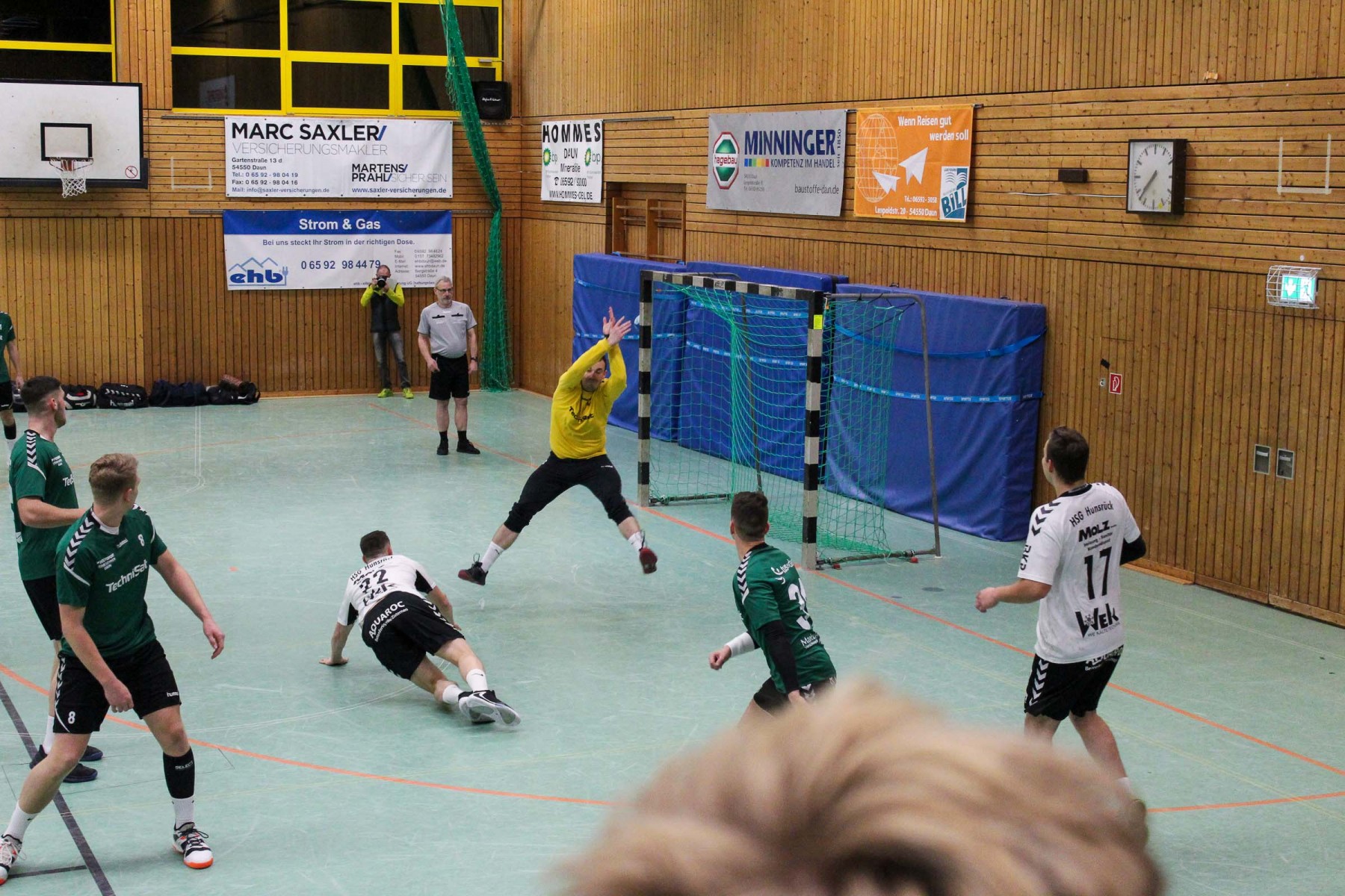 Als Dauns Keeper Maurice Rode seinen ersten Ball aus dem Spiel gegen Almir Balas hielt, war Daun in Ballbesitz, der im Gegenzug mit der Zeitstrafe gegen Tim Moske, Siebenmeter für Daun und noch vor Ausführung des Strafwurfes mit einer weiteren Zeitstrafe gegen Saarburgs Keeper Marc Dupre endete, begann die Schwächephase des Schiedsrichtergespanns Ernst Ebert und Richard Rosteck, die jetzt mit ihren Entscheidungen im Spiel für Unverständnis auf beiden Seiten und auf den Rängen sorgten.