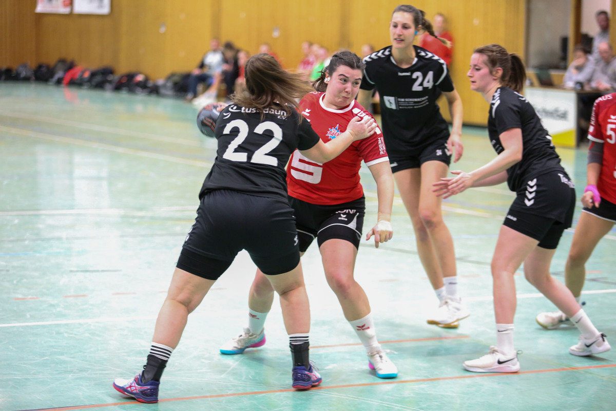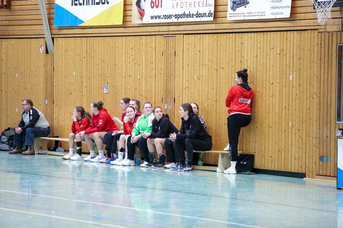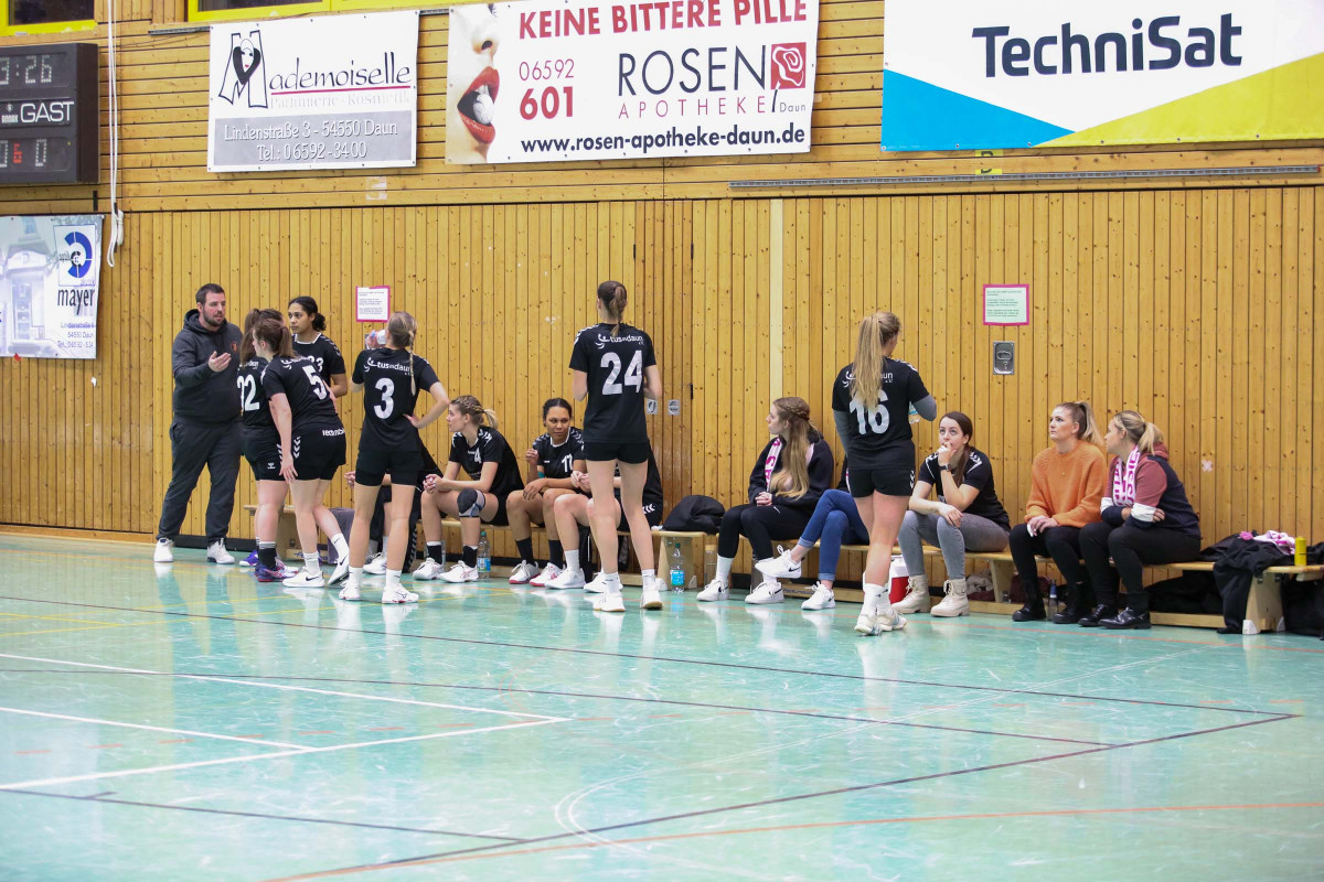 Ausgeglichen verlief die Anfangsphase zwischen den Daunerinnen und der SG „BaEng“, dabei mussten die Gäste erstmals ohne ihren am Mittwoch zurückgetretenen Trainer Michael Menke auflaufen. Die Führungen wechselten hin und her. Zunächst legten die Gäste zum 3:5 (11.) vor, dann waren es die Gastgeber, die beim 9:7 (21.) auf dem Wege waren, das Spiel in den Griff zu bekommen. Beim 11:10 nahm Gastgebertrainer Ralf Nebeler in der 25. Minute die Auszeit, doch die Gäste ließen sich nicht abschütteln und waren beim 12:12 zur Pause auf Augenhöhe.