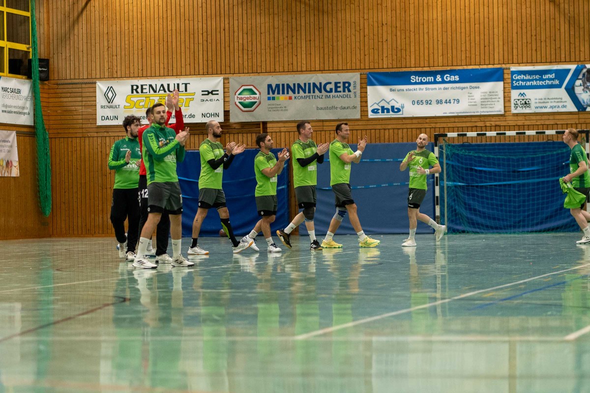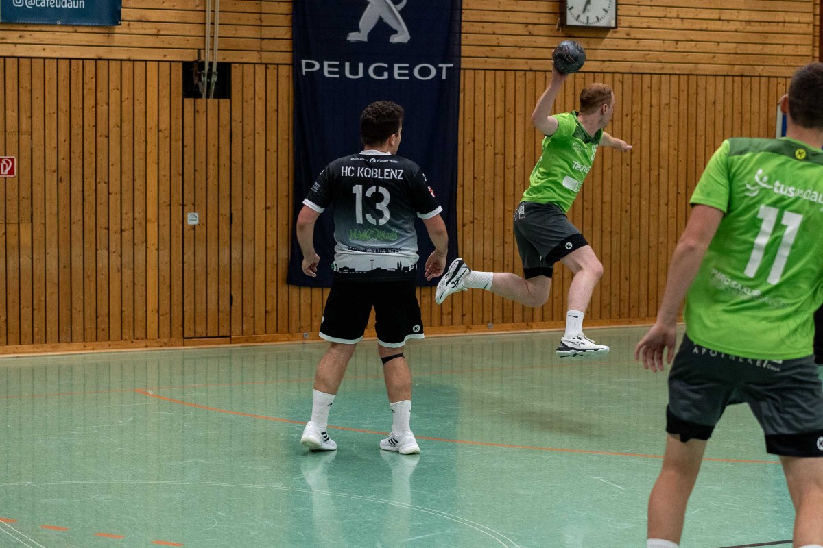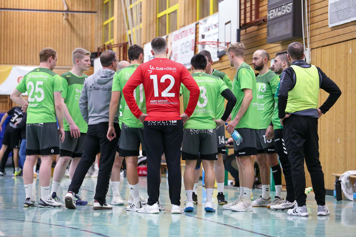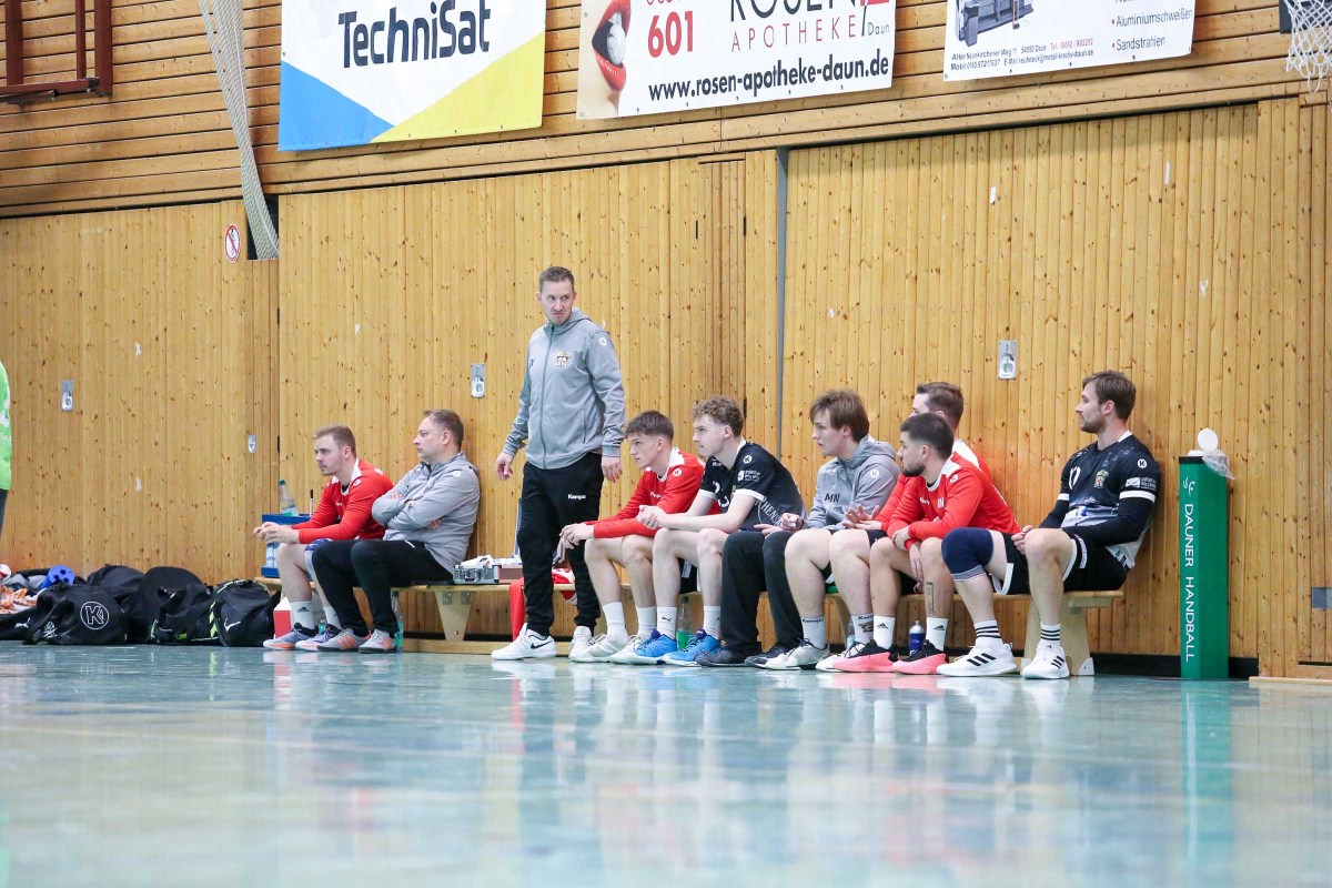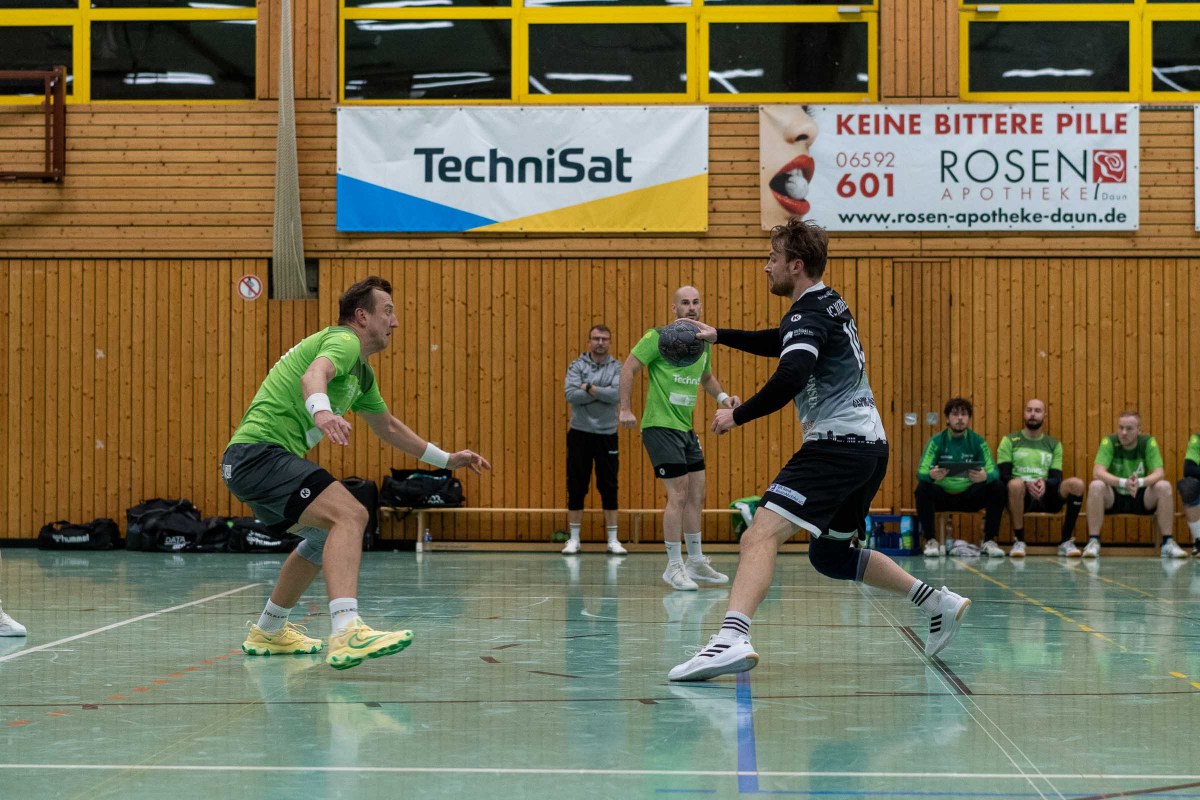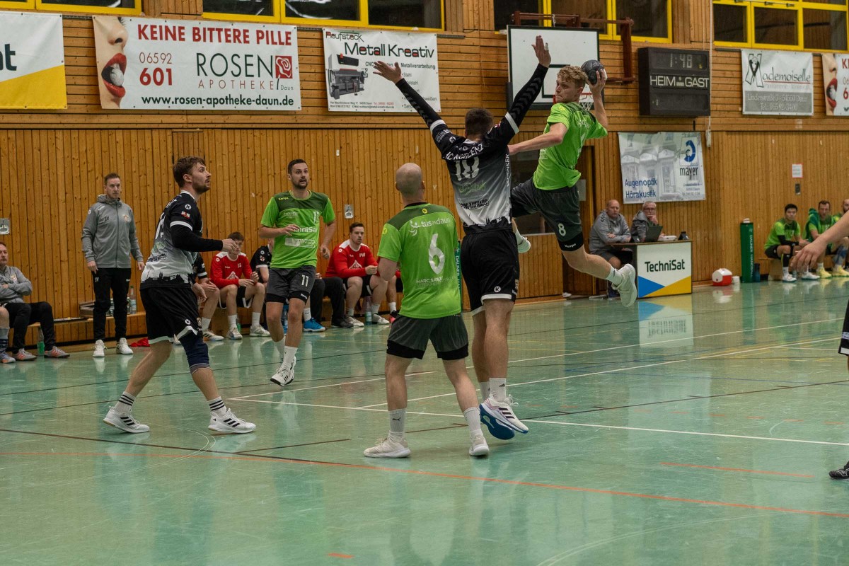 Die Dauner Heimserie ist dahin! Die Mannschaft unterlag nach einem katastrophalen Start den Gästen aus Handball Mülheim-Urmitz. Eiskalt erwischt wurden die Dauner, die ohne ihre Linkshänder Bassi Praeder antreten mussten, von der jungen Mannschaft von Handball Mülheim-Urmitz, die sich schnell mit vier Toren zum 0:5 (7.) absetzten. Die Auszeit von Trainer Thorsten Ringer war dann der Weckruf für die Eifelaner, die über 4:7 (13.) die Aufholjagd starteten. Nach dem Tor von Luca Willems zum 6:8, nahmen die Gäste die Auszeit (19.), doch Daun war jetzt im Spiel, glich beim 8:8 per Siebenmeter durch Jannis Willems aus. Es blieb weiter eng, erneut legten die Gäste zwei Treffer in Folge nach (8:10), die das routiniertere Dauner Team bis zur Pause wieder ausgleichen konnte. Es blieb nach dem Wechsel das weiterhin umkämpfte Spiel, in dem sich die Gäste aber nach dem 13:13 (37.) mit drei Toren in Folge wieder deutlicher auf 13:16 (43.) absetzen und so Daun zur erneuten Auszeit zwangen. Als den Gästen sogar beim 16:20 (51.) die vier Tore Führung gelang, schien die Serie der gewonnen Heimspiele zu enden. Daun kämpfte sich zwar noch einmal auf 18:20 (54.) heran, musste die Gäste dann aber entscheidend nach der Zeitstrafe auf 18:22 (56) ziehen lassen. „Das krankheitsbedingte Fehlen von Bassi Praeder hat uns richtig weh getan, dazu gingen einige Spieler angeschlagen in die Begegnung und das waren schon keine guten Vorzeichen. Von Beginn an war keine Körpersprache zu erkennen, keine Aggressivität in Angriff und Abwehr. Die Anzahl unserer Tore spiegelt wider, das die Gäste das gut gemacht haben. Sie haben uns mit ihrer aggressiven und keinesfalls unfairen Abwehrarbeit den Schneid abgekauft. Heute spiegelt sich auch die Trainingsbeteiligung der letzten Wochen wider und letztlich kassieren wir dumme Zeitstrafen in den entscheidenden Minuten und so kam der Gast zu einem verdienten Sieg. In den letzten Jahren waren sie bei uns immer dicht am Sieg, heute hat es geklappt. Für uns sicherlich kein Beinbruch, aber es sollte ein Warnschuss sein. Am Ende waren wir einfach platt und das war den Leistungsträgern anzumerken“, resümierte Dauns sportlicher Leiter Markus Willems.
