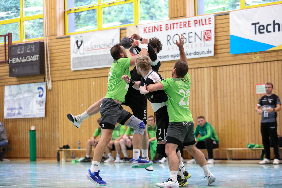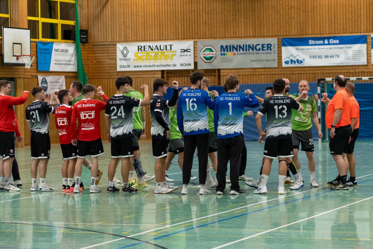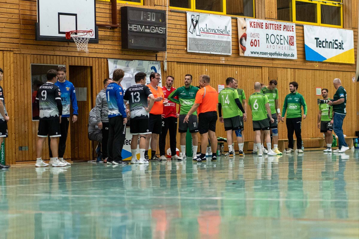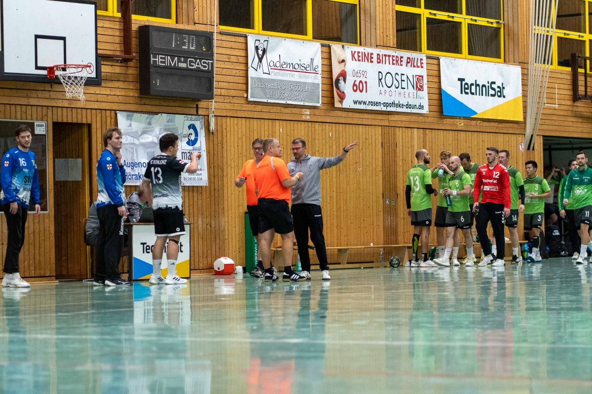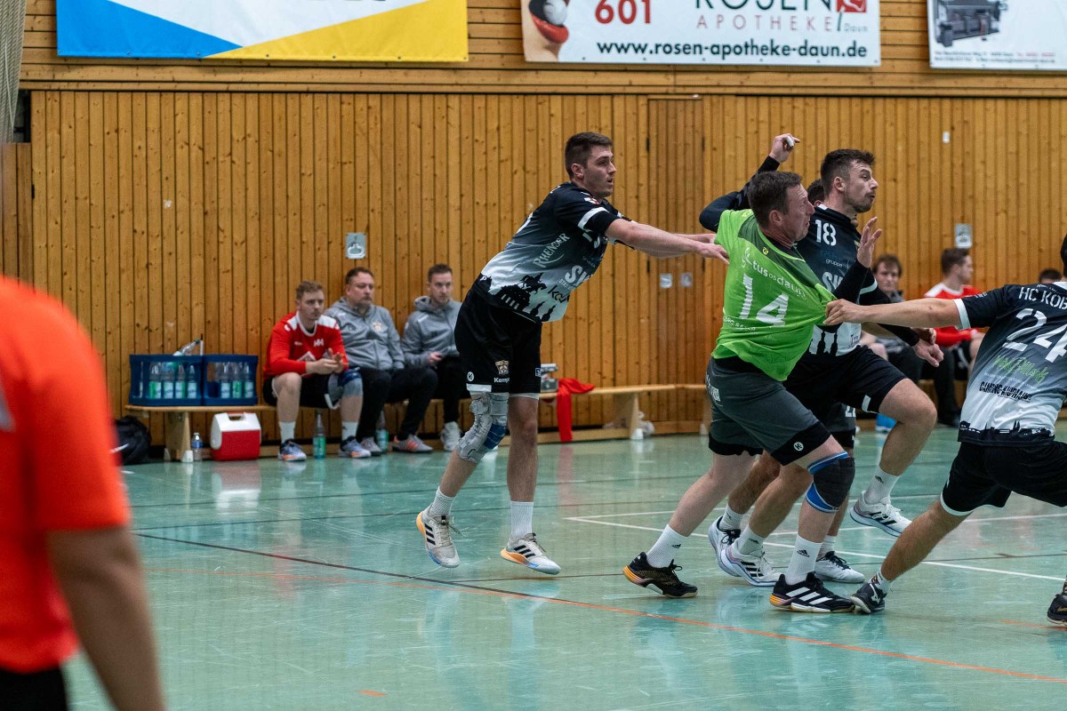 Die Dauner Heimserie ist dahin! Die Mannschaft unterlag nach einem katastrophalen Start den Gästen aus Handball Mülheim-Urmitz. Eiskalt erwischt wurden die Dauner, die ohne ihre Linkshänder Bassi Praeder antreten mussten, von der jungen Mannschaft von Handball Mülheim-Urmitz, die sich schnell mit vier Toren zum 0:5 (7.) absetzten. Die Auszeit von Trainer Thorsten Ringer war dann der Weckruf für die Eifelaner, die über 4:7 (13.) die Aufholjagd starteten. Nach dem Tor von Luca Willems zum 6:8, nahmen die Gäste die Auszeit (19.), doch Daun war jetzt im Spiel, glich beim 8:8 per Siebenmeter durch Jannis Willems aus. Es blieb weiter eng, erneut legten die Gäste zwei Treffer in Folge nach (8:10), die das routiniertere Dauner Team bis zur Pause wieder ausgleichen konnte. Es blieb nach dem Wechsel das weiterhin umkämpfte Spiel, in dem sich die Gäste aber nach dem 13:13 (37.) mit drei Toren in Folge wieder deutlicher auf 13:16 (43.) absetzen und so Daun zur erneuten Auszeit zwangen. Als den Gästen sogar beim 16:20 (51.) die vier Tore Führung gelang, schien die Serie der gewonnen Heimspiele zu enden. Daun kämpfte sich zwar noch einmal auf 18:20 (54.) heran, musste die Gäste dann aber entscheidend nach der Zeitstrafe auf 18:22 (56) ziehen lassen. „Das krankheitsbedingte Fehlen von Bassi Praeder hat uns richtig weh getan, dazu gingen einige Spieler angeschlagen in die Begegnung und das waren schon keine guten Vorzeichen. Von Beginn an war keine Körpersprache zu erkennen, keine Aggressivität in Angriff und Abwehr. Die Anzahl unserer Tore spiegelt wider, das die Gäste das gut gemacht haben. Sie haben uns mit ihrer aggressiven und keinesfalls unfairen Abwehrarbeit den Schneid abgekauft. Heute spiegelt sich auch die Trainingsbeteiligung der letzten Wochen wider und letztlich kassieren wir dumme Zeitstrafen in den entscheidenden Minuten und so kam der Gast zu einem verdienten Sieg. In den letzten Jahren waren sie bei uns immer dicht am Sieg, heute hat es geklappt. Für uns sicherlich kein Beinbruch, aber es sollte ein Warnschuss sein. Am Ende waren wir einfach platt und das war den Leistungsträgern anzumerken“, resümierte Dauns sportlicher Leiter Markus Willems.