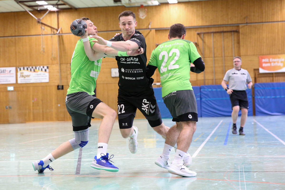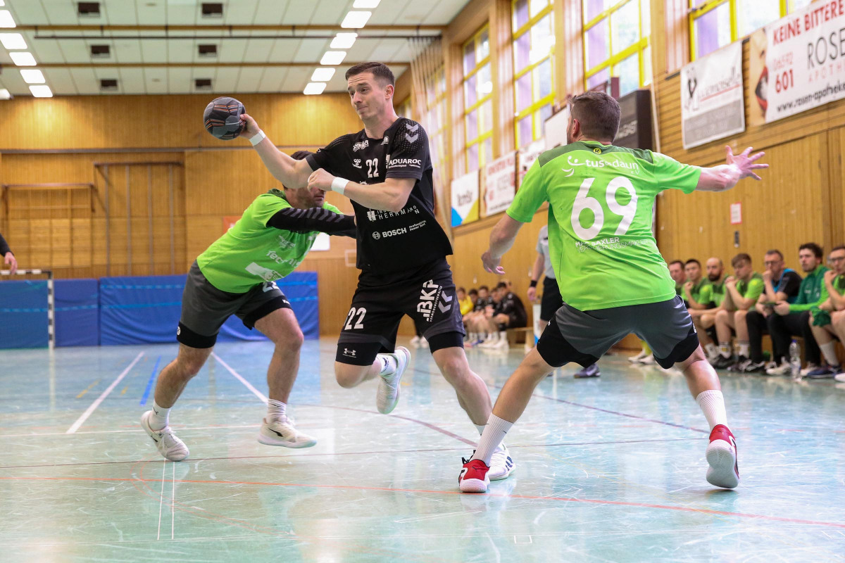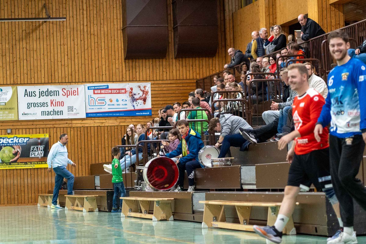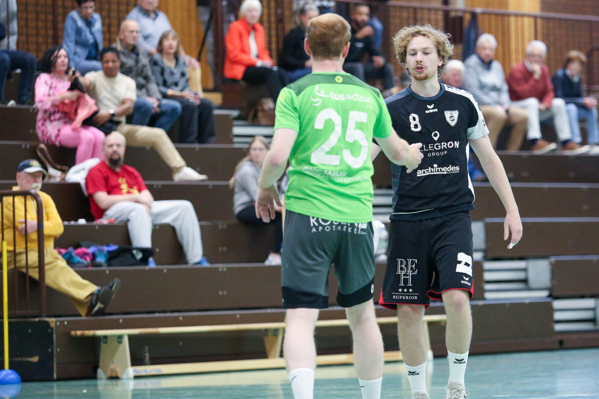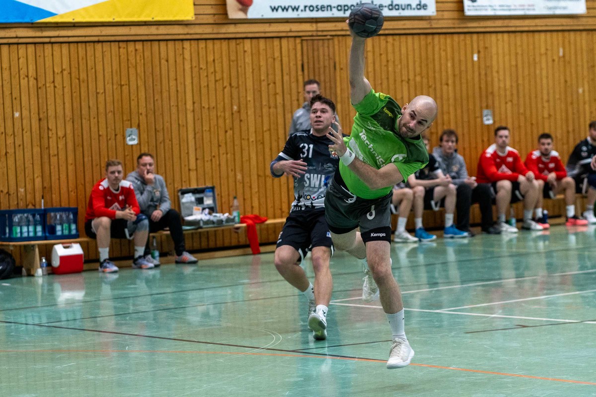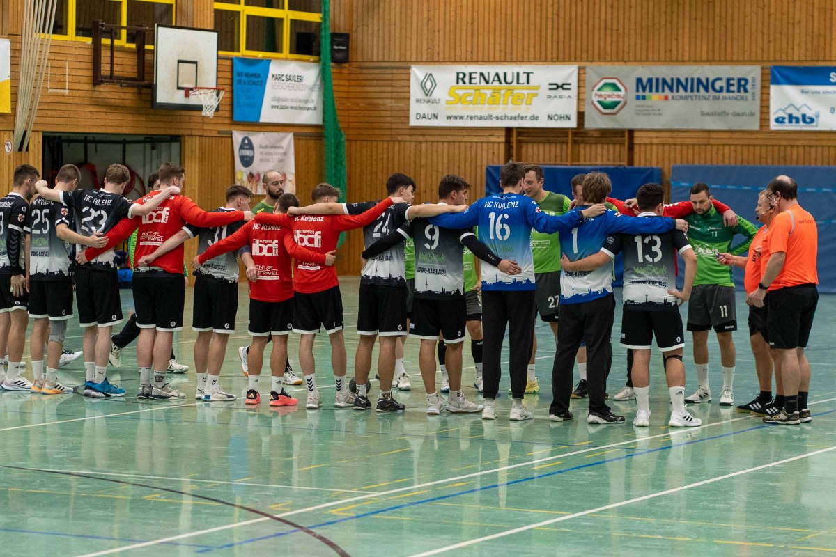 Die Dauner Heimserie ist dahin! Die Mannschaft unterlag nach einem katastrophalen Start den Gästen aus Handball Mülheim-Urmitz. Eiskalt erwischt wurden die Dauner, die ohne ihre Linkshänder Bassi Praeder antreten mussten, von der jungen Mannschaft von Handball Mülheim-Urmitz, die sich schnell mit vier Toren zum 0:5 (7.) absetzten. Die Auszeit von Trainer Thorsten Ringer war dann der Weckruf für die Eifelaner, die über 4:7 (13.) die Aufholjagd starteten. Nach dem Tor von Luca Willems zum 6:8, nahmen die Gäste die Auszeit (19.), doch Daun war jetzt im Spiel, glich beim 8:8 per Siebenmeter durch Jannis Willems aus. Es blieb weiter eng, erneut legten die Gäste zwei Treffer in Folge nach (8:10), die das routiniertere Dauner Team bis zur Pause wieder ausgleichen konnte. Es blieb nach dem Wechsel das weiterhin umkämpfte Spiel, in dem sich die Gäste aber nach dem 13:13 (37.) mit drei Toren in Folge wieder deutlicher auf 13:16 (43.) absetzen und so Daun zur erneuten Auszeit zwangen. Als den Gästen sogar beim 16:20 (51.) die vier Tore Führung gelang, schien die Serie der gewonnen Heimspiele zu enden. Daun kämpfte sich zwar noch einmal auf 18:20 (54.) heran, musste die Gäste dann aber entscheidend nach der Zeitstrafe auf 18:22 (56) ziehen lassen. „Das krankheitsbedingte Fehlen von Bassi Praeder hat uns richtig weh getan, dazu gingen einige Spieler angeschlagen in die Begegnung und das waren schon keine guten Vorzeichen. Von Beginn an war keine Körpersprache zu erkennen, keine Aggressivität in Angriff und Abwehr. Die Anzahl unserer Tore spiegelt wider, das die Gäste das gut gemacht haben. Sie haben uns mit ihrer aggressiven und keinesfalls unfairen Abwehrarbeit den Schneid abgekauft. Heute spiegelt sich auch die Trainingsbeteiligung der letzten Wochen wider und letztlich kassieren wir dumme Zeitstrafen in den entscheidenden Minuten und so kam der Gast zu einem verdienten Sieg. In den letzten Jahren waren sie bei uns immer dicht am Sieg, heute hat es geklappt. Für uns sicherlich kein Beinbruch, aber es sollte ein Warnschuss sein. Am Ende waren wir einfach platt und das war den Leistungsträgern anzumerken“, resümierte Dauns sportlicher Leiter Markus Willems.