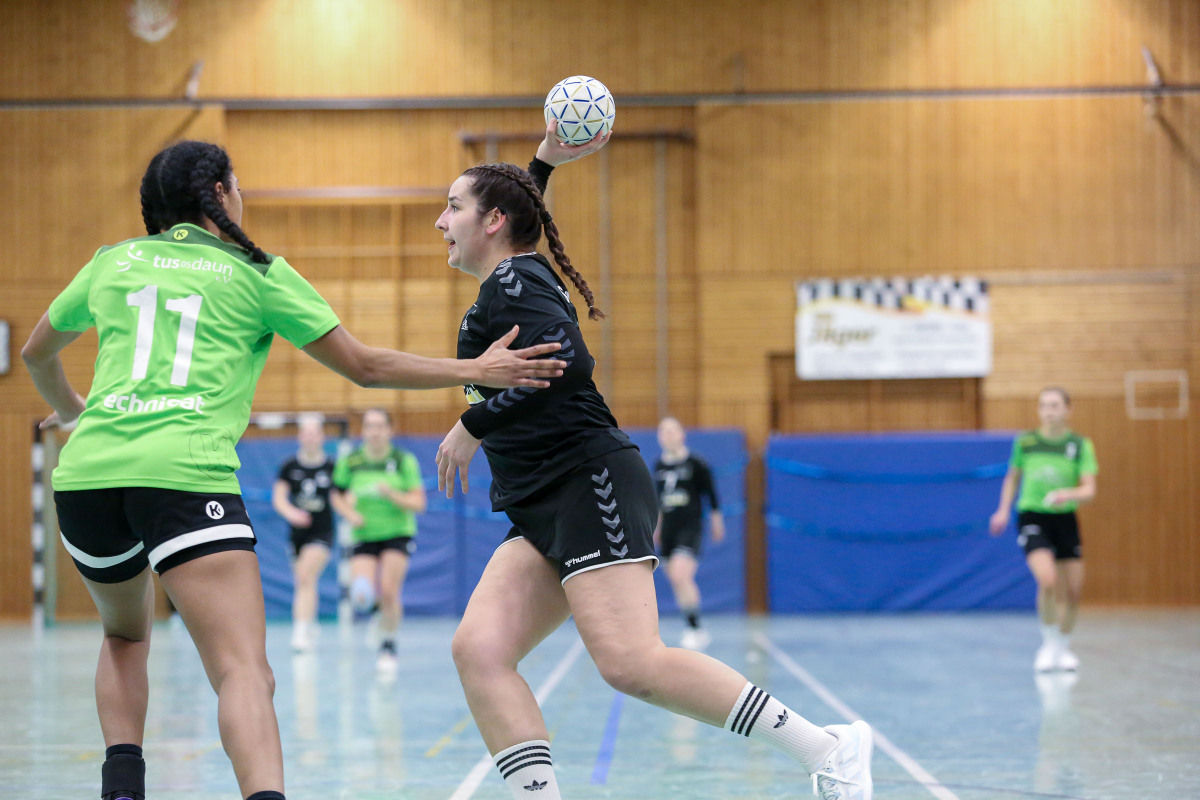 „Heute hatten ich zum ersten Mal eine volle Bank und das hat mich begeistert. Ich musste sogar zwei Spielerinnen aussetzen lassen und die personelle Besetzung war aus meiner Sicht am Ende auch spielentscheidend. Es war eine ausgeglichen geführte erste Halbzeit, in der Schweich einfach zu viele Tore erzielte. Wir haben hier nicht konsequent genug verteidigt und so fand Schweich immer wieder die Räume durch ihr gutes Parallelstossspiel. Bei uns wurde nicht geredet und nicht verschoben, die Angriffsleistung war in Ordnung. Für die zweite Hälfte hatten wir uns dann viel vorgenommen, doch es ging weiter hin und her. Das Schweicher Trainergespann tat uns dann den Gefallen, die gut spielende Jana Clever mit einer Manndeckung aus dem Spiel zu nehmen. Darauf habe ich dann damit reagiert, dass ich meine guten eins gegen eins Spielerinnen aufs Parkett schickte, die jetzt ihre Räume nutzten. Jetzt stand auch unsere Abwehr besser und wir konnten uns am Ende durchsetzen. Zwei wichtige Punkte für uns, auf die wir weiter aufbauen wollen“, sagt Dauns Trainer Heinz Hammann.