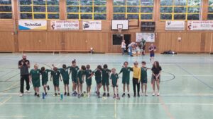 Von Beginn an zeigten unsere Jungs eine beeindruckende Leistung und bewiesen, dass sie bereit waren, alles zu geben, um das Spiel für sich zu entscheiden. Die Dauner starteten mit einem hohen Tempo und konnten in den ersten Minuten einige Tore erzielen. Zu Beginn war die Konzentration groß, sodass die Jungs der männlichen D-Jugend ihrem starken Gegenüber die Stirn boten. Allerdings hatten sie schwer mit der offensiven Abwehr der gegnerischen Mannschaft zu kämpfen. Mit präzisen Pässen und versuchten Spielzügen im Angriff, gelang es den Daunern immer wieder, die gegnerische Abwehr zu überwinden und erfolgreich abzuschließen. Allerdings war der Gegner keineswegs gewillt, so einfach aufzugeben. Mit zunehmender Spielzeit gelang es ihnen, sich besser auf unsere Spielweise einzustellen. Sie verstärkten ihre Angriffe und setzten uns vermehrt unter Druck. Leider konnten wir diesem Druck nicht mehr so standhalten wie zu Beginn des Spiels. Die Konzentration unserer Spieler ließ nach und so schlichen sich vermehrt Fehler ein. Fehlpässe, vergebene Torchancen und ungenaue Abschlüsse kosteten uns wertvolle Punkte. Der Gegner nutzte diese Schwächephase gnadenlos aus und konnte den Rückstand immer weiter verkürzen.