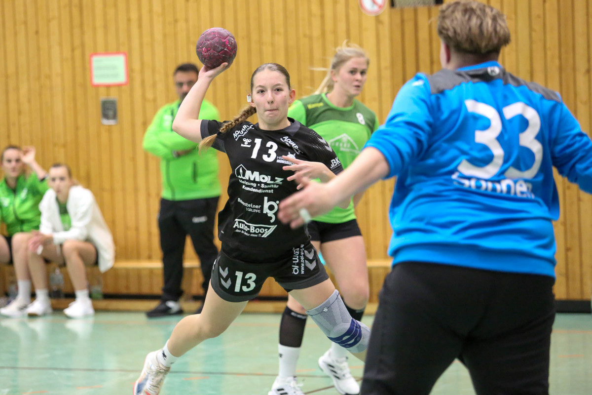 Aber auch in der Abwehr gab es riesen Probleme, falsches Abzählen und schlechtes Stellungsspiel machten es der HSG immer wieder möglich frei aufs Tor der TuS zu werfen, wo Sarah Sonnen dieses Mal fast nichts ausrichten konnte.