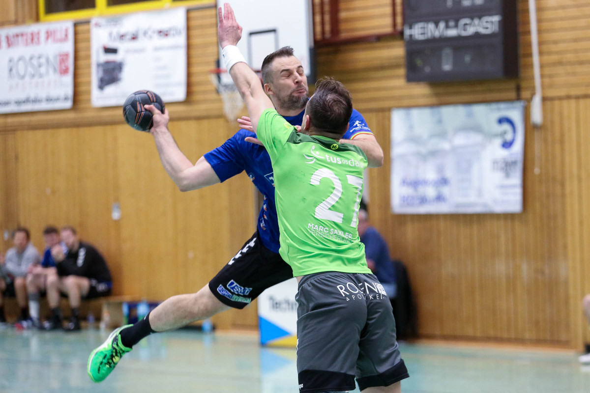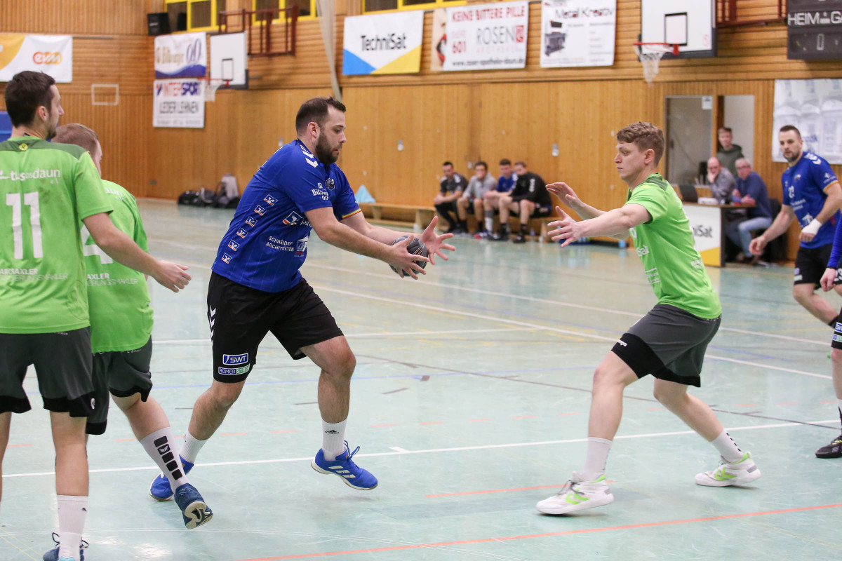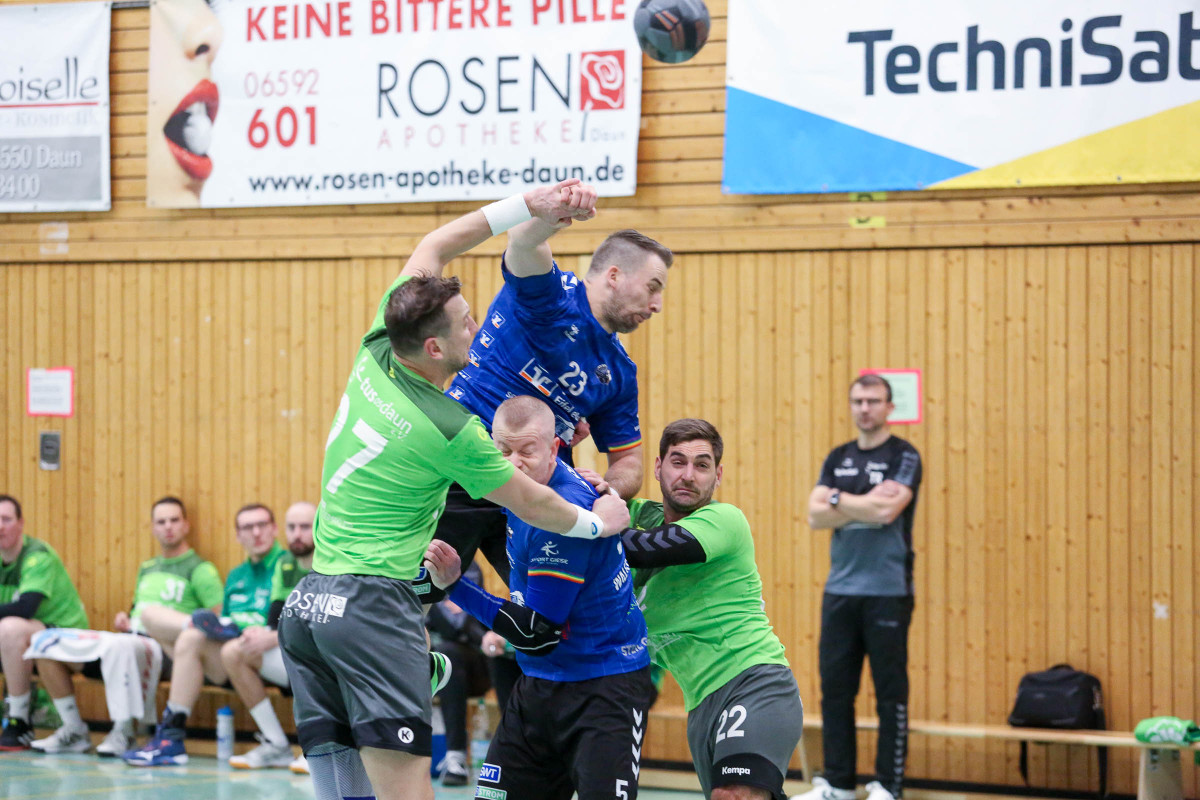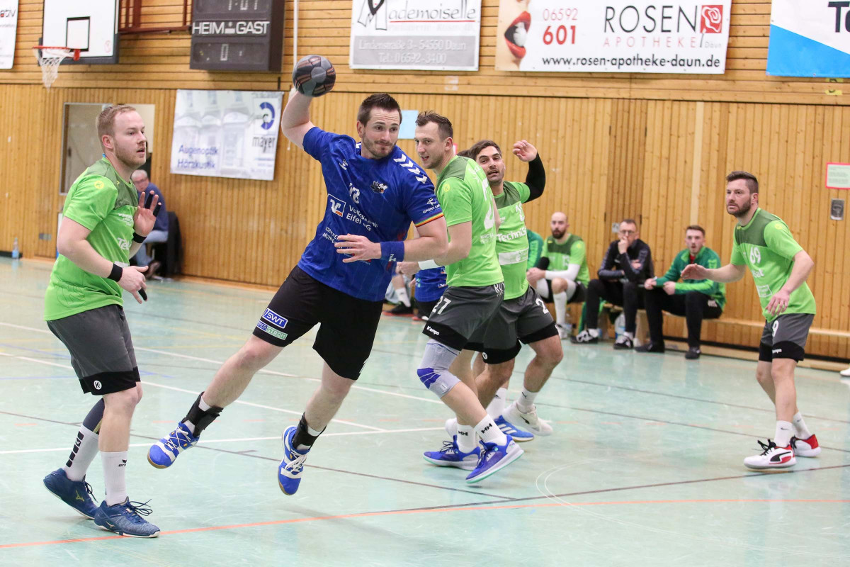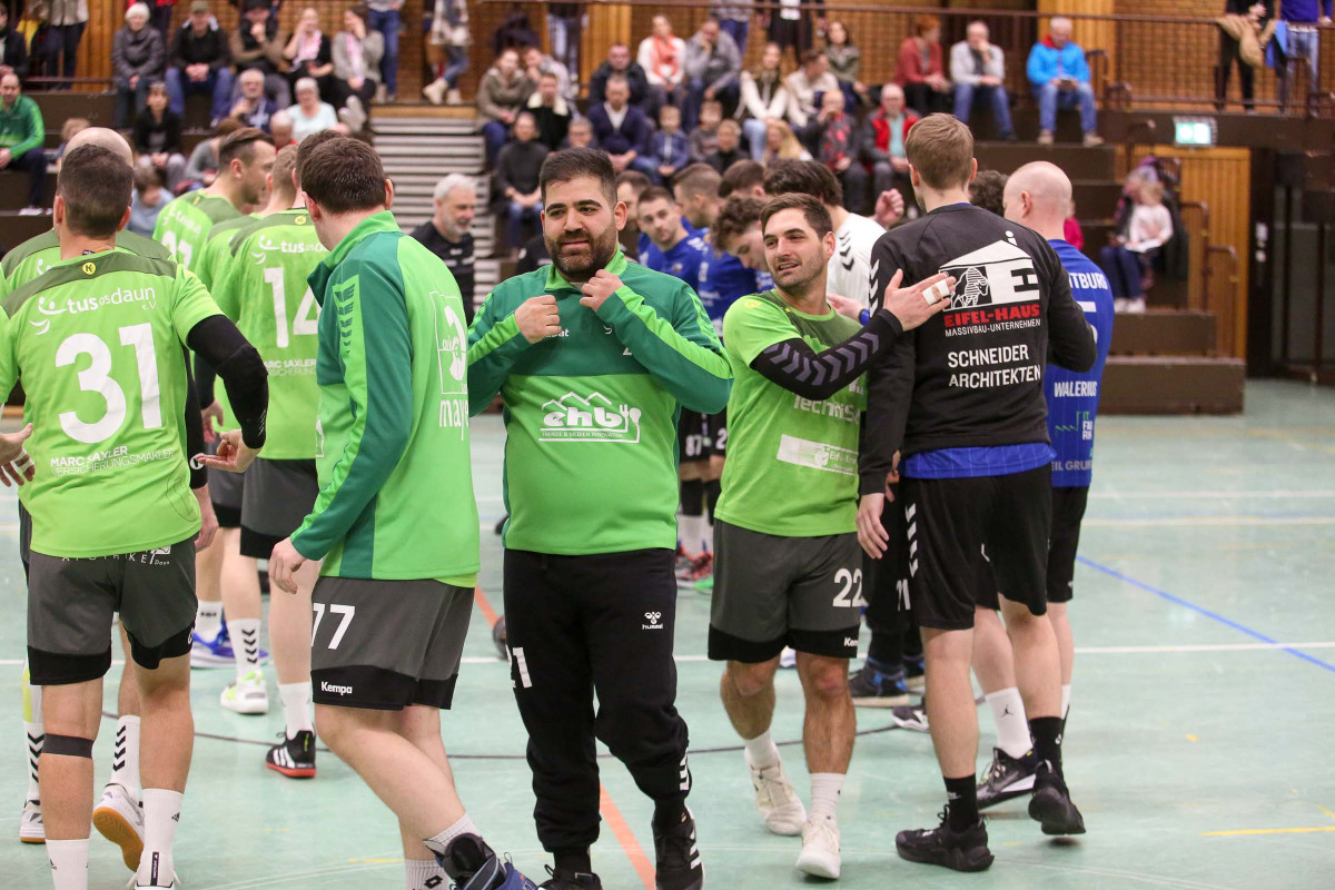 Aber auch auf Dauner Seite fehlten einige Stammspieler, allen voran Luca Willems. Die Anfangsphase verlief bis zum 4:4 (6.) ausgeglichen, ehe sich die Dauner auf drei Tore zum 7:4 (9.) absetzten und die drei bis vier Tore Führung bis 15:12 (26.) behaupteten. Mathis Otto sorgte mit seinem fünften Treffer in der ersten Hälfte für die vier Tore Führung seines Teams (16:12/29.), die diese Führung auch mit in die Pause nahmen. Mehr und mehr machte sich nach dem Wechsel dann die konditionelle Überlegenheit der Gastgeber bemerkbar, die mit ihrem guten Start in die zweite Hälfte beim 23:16 (38.) für die Vorentscheidung gesorgt hatten. Die klare Führung verteidigte die Mannschaft von Trainer Thorsten Ringer über 27:20 (43.) und 30:23 (49.), verwalteten die sieben Tore Führung bis 32:25 (54.) und feierten am Ende den verdienten und nie gefährdeten Heimspielerfolg.