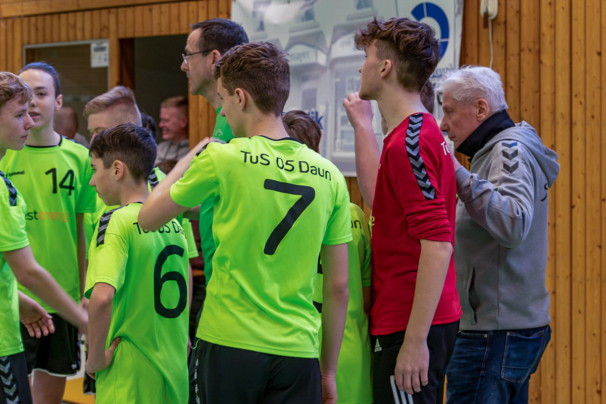 Mit ihrem Sieg, in einem bis zur letzten Sekunde spannenden Spiel, sichern sich die Jungs des TuS 05 Daun, den Gewinn der Rheinlandliga Pokalrunde! Zunächst starten die Gastgeber recht souverän ins Spiel und zwangen Gästetrainer Ben Stemann bereits in der 6. Spielminute beim Stand von 5:2 zu einer ersten Auszeit. Koblenz kam danach besser ins Spiel und schaffte es bis zur Pause recht ausgeglichen zu gestalten. Daun ging mit einer 3 Tore Führung in die Halbzeit. Nach dem Seitenwechsel scheiterten beide Mannschaften an den immer stärker werdenden Torhütern und bei den Gastgebern schlichen sich in der Folge immer wieder technische Fehler ins Spiel ein. In den letzten anderthalb Minuten war das Spiel an Dramatik nicht mehr zu überbieten. Koblenz verkürzte in Überzahl auf 23:25 und 24:25, Dauns Angriffe endeten jeweils mit einem Stürmerfoul. 15 Sekunden vor dem Schluss hatte Koblenz den letzten Angriff, den die Dauner Abwehr aber abfangen und so die letzten 3 Sekunden runterspielen konnte.
