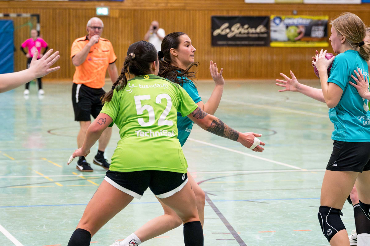 Wichtiger Heimspielerfolg der Dauner Mannschaft im vier Punktespiel gegen Bad Ems! Die Mannschaft von Trainer Can Steuernagel kam gut in die Begegnung, führte über 3:1 (5.) und bestimmte bis 9:5 (25.) weite Strecken das Spiel in der ersten Hälfte, dann gelang den Kurstädterinnen der Anschluss mit zwei Treffern in Folge, doch Daun zeigte die Reaktion, setzte sich bis zur Pause auf 12:7 ab und alles deutete auf den wichtigen Heimspielerfolg des Can-Teams hin. Ausgeglichen dann der Verlauf der zweiten Hälfe, in der es dem Gastgeberteam gelang, die Führung über 18:13 (43.) bis 21:16 (53.) zu verteidigte, dann machte das Team mit den Treffern zum 23:16 (57.) den Deckel drauf.