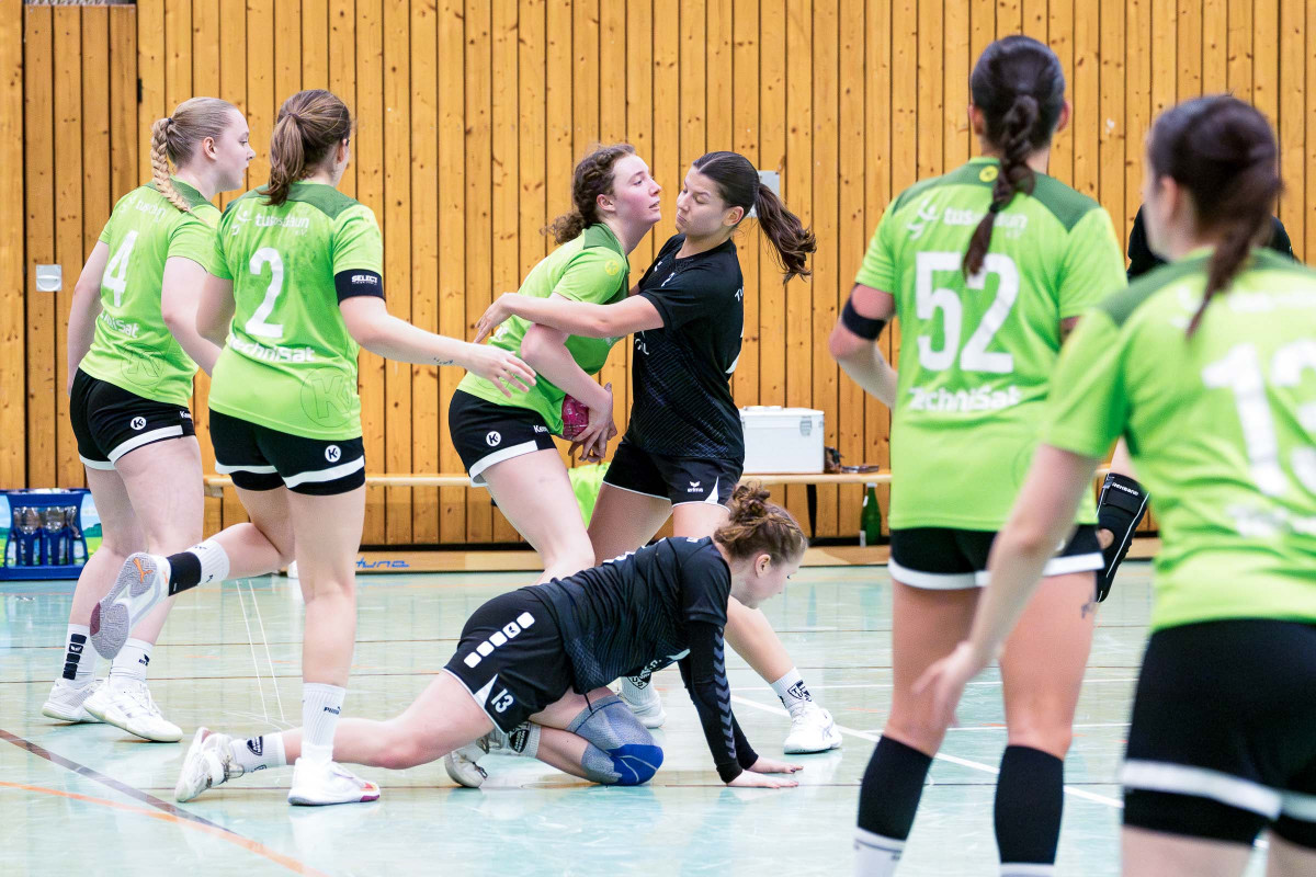 Daun gewinnt das vier-Punkte Spiel gegen den Tus Weibern und setzt sich weiter vom Tabellenletzten aus Bad Ems, der in Trier ein klare Niederlage einstecken musste, ab. Das Team von Trainer Can Steuernagel ließ lediglich die 1:2 Führung der Gäste (6.) zu, drehte das Spiel über 4:2 (11.) und verteidigte die knappe Führung bis zum 7:6 (18.) Mia von Koten und Kathi Schick sowie Lena Kretzer sorgten mit ihren Treffern dann für den beruhigenden vier Tore Vorsprung zum 10:6 (26.) den man mit in die Pause nahm. Die Anfangsphase der zweiten Hälfe aber verschlief das Steuernagel Team und das bestrafte Weibern mit dem Ausgleich zum 11:11 (34.) und hatte jetzt das Momentum auf seiner Seite. Doch Daun fing sich zum richtigen Zeitpunkt und erneut war es Lena Kretzer, die Verantwortung übernahm und ihre Mannschaft in Führung warf. Die Treffer von Mia van Koten, Finja Katzer, Kathi Schick und erneut Lena Kretzer sollten beim 16:11 (42.) für die Auszeit der Gäste sorgen. Doch jetzt verteidigte das Dauner Team die Führung, Steuernagel nahm beim 18:13 (46.) die Auszeit und spätestens beim 22:15 (54.) war die Messe in Daun zugunsten der Heimmannschaft gelesen.