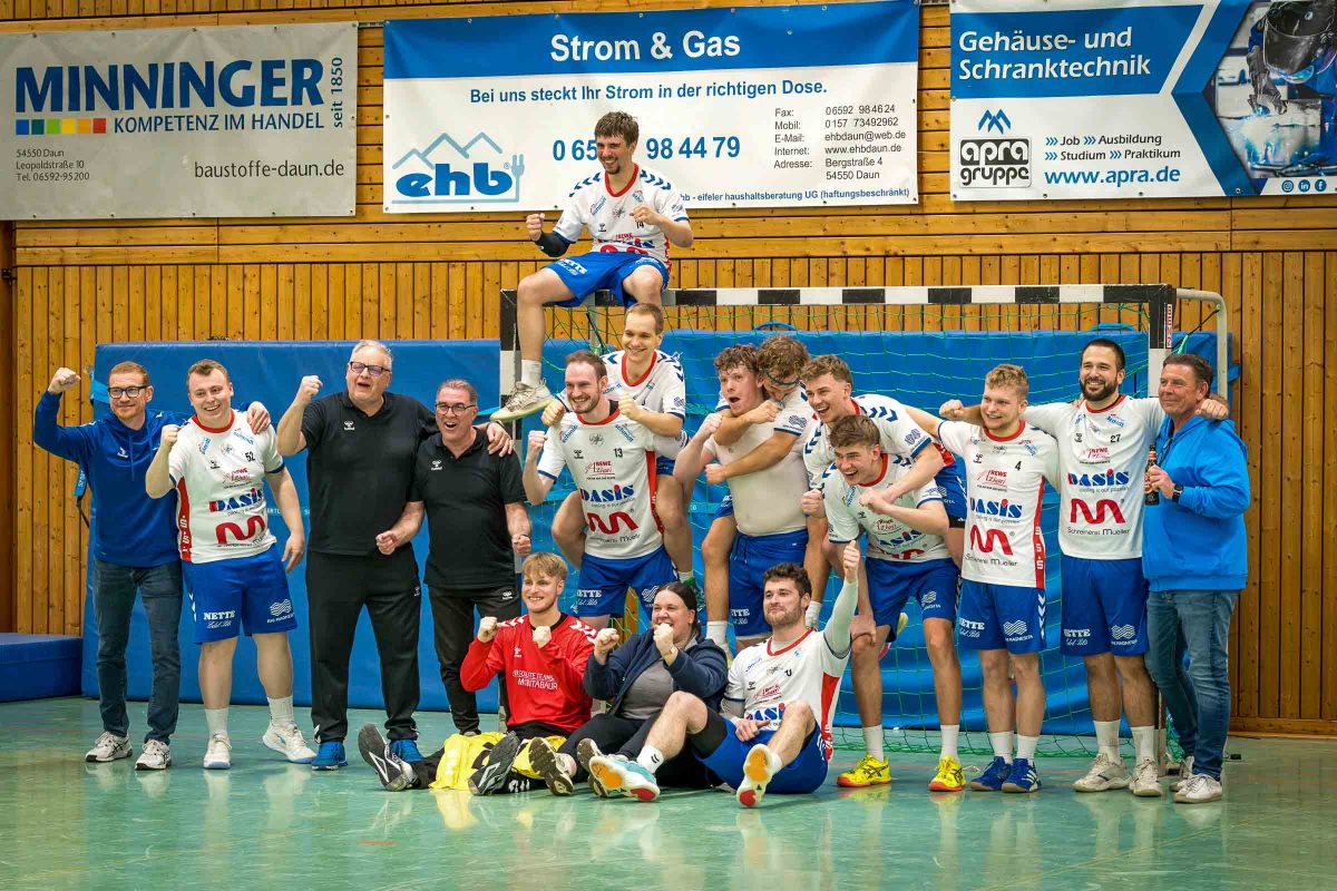 Eine vermeidbare Niederlage kassierte die Mannschaft von Trainer Lukas Illigen gegen die Reserve aus Mülheim-Urmitz! In einer von der ersten bis zur letzten Minute spannenden Begegnung fehlte den Eifelanern am Ende die Cleverness, um mindestens den Punkt in Daun zu behalten. Die Gäste hatten von Beginn an die Nase vorn, verteidigten ihre knappe Führung über die gesamte Spielzeit der ersten Hälfte, lagen beim 8:10 (21.) bis 11:13 (26.) sogar mit zwei Toren in Führung. Zur Pause glich Daun aus und markierte gleich nach dem Wiederanpfiff durch zwei Tore von Jannis Willems die erste Führung zum 15:13 (32.) und jetzt waren es die Gastgeber, die ihre knappe Führung ständig verteidigten, vom 17:15 (36.) bis 23:21 (47.) die Nase sogar mit zwei Toren vorne hatten, sich dann aber die Fehler leisteten, die der Gast nach seiner Auszeit beim 25:2 5 (54.) mit der eigenen Führung zum 25:26 bestrafte. Beim 28:28 (59.) kassierte das Illigen Team die Zeitstrafe, kam dennoch wieder in Ballbesitz und konnte den Vorteil einfach nicht nutzen.
