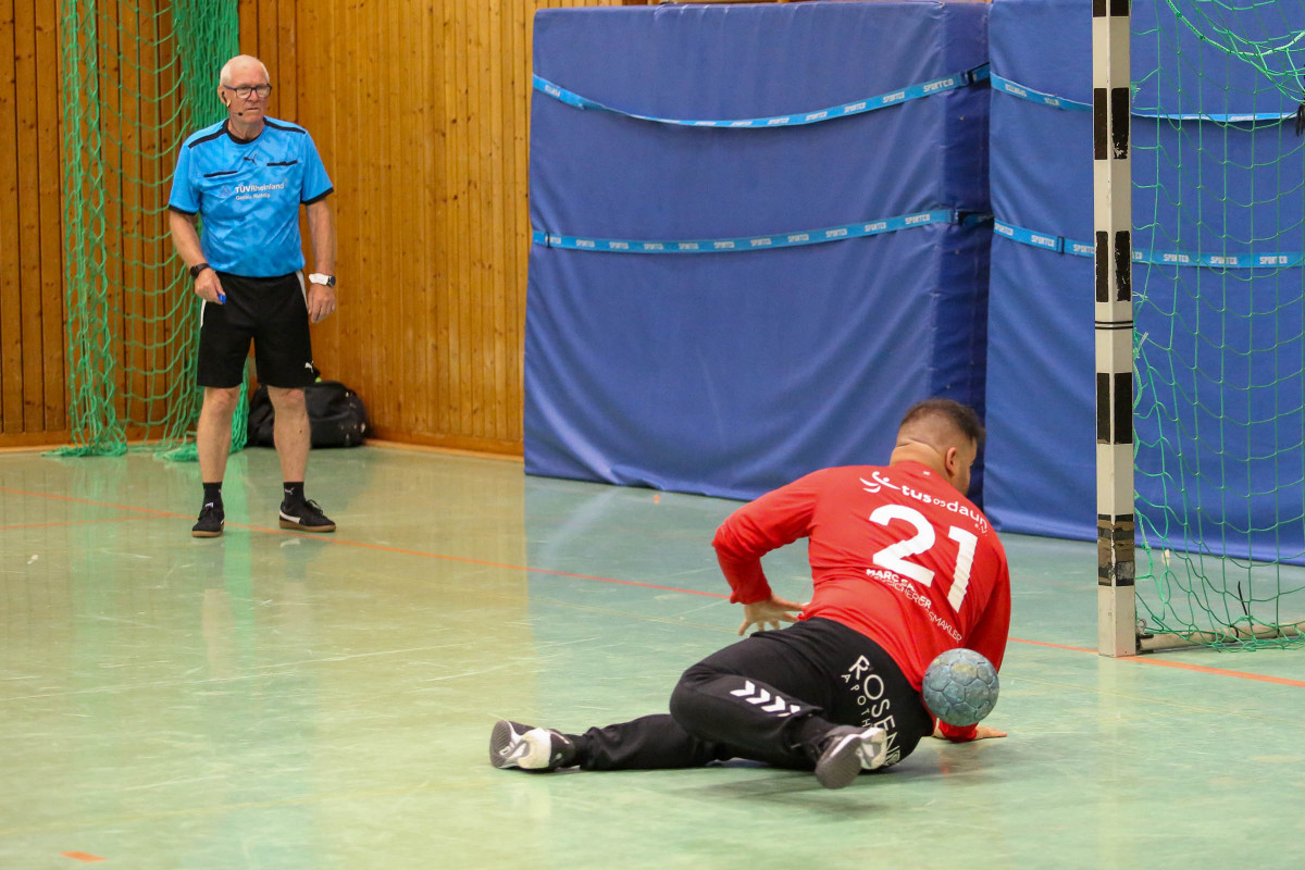 „Ausgeglichen verliefen die Anfangsminuten im Spiel, in dem auf beiden Seiten die Deckungsreihen überzeugten. So langsam aber fanden wir die richtigen Lösungen im Angriff und über die gesamte Spielzeit haben sich heute unsere Torhüter Maurice Rode und Mo Basibüyük ergänzt und das war aus meiner Sicht spielentscheidend! Welling kam immer wieder über den Kreis zu freien Würfen, die aber vielfach von unseren Keeper pariert wurden. Es war ein kampfbetontes aber immer faires Spiel, da sicher nicht einfach zu pfeifen war. Nach dem Wechsel versuchten es die Gäste aus Welling dann mit einer Manndeckung gegen Jannis, doch jetzt nutzten unsere Routiniers wie Pat Brümmer, Bassi Praeder und Ruslan Podriezov die Räume. Mit einfachen Abläufen kamen wir jetzt immer zu freien Würfen und so brachte die Manndeckung nicht den erhofften Erfolg! Den Gästen merkte man in der Schlussphase schon an, dass sie jetzt die Köpfe hängenließen, denn sie hatten sich schon was ausgerechnet. Am Ende war das Ergebnis deutlicher als der eigentliche Spielerlauf“, analysierte Dauns sportlicher Leiter Markus Willems.