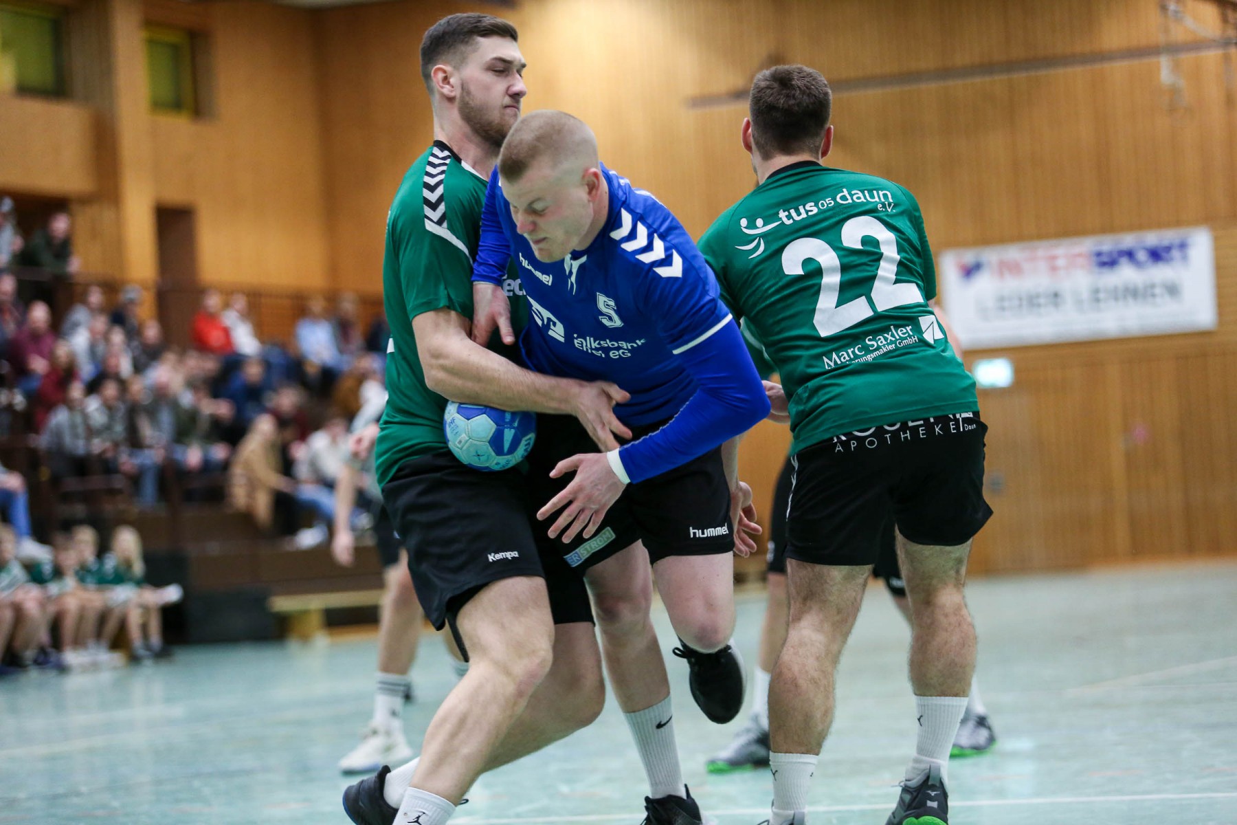 Mit dem Schlusspfiff der ersten Hälfte kassierte Bitburg die Zeitstrafe, die Daun nutzte, um sich zunächst auf zwei Tore mit 16:14 in der 32. Minute abzusetzen, dabei von gleich drei technischen Fehlern der Gäste profitierte, doch in Vollzahl kam Bitburg wieder zum Ausgleich.