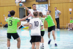 Vor dem Spiel standen die Vorzeichen nicht unbedingt gut auf Dauner Seite, fielen doch mit Sebastian Häp, Linus Löwen und Jonas Bureck drei wichtige Spieler krankheitsbedingt aus. Dennoch oder grade, deswegen fanden die Gastgeber gut ins Spiel und konnten sich über 5:3 bis auf 13:5 in der 16. Spielminute absetzen. Besonders in der Abwehr konnte man die Kreise des besten Bad Emser Angreifers Vladislaw Polieiev immer wieder geschickt eingrenzen und er musste sich jeden Torerfolg hart erarbeiten. Außerdem erwischte Dauns Keeper Mike Mehling einen Sahnetag und konnte mehrere 100%ige Torchancen der Gäste parieren. So ging es mit einer verdienten 8 Tore Führung in die Halbzeit. Zu Beginn der 2. Hälfte kam die Dauner Mannschaft hellwach aus der Kabine und setzte sich bis zur 31. Minute auf 25:11 ab. Immer wieder konnten sich die heute sehr starken Rückraumspieler Ben Gerhardy-Salas, Ben Hilsmann und Max Blonigen durch geschickte Spielverlagerungen freispielen und kamen zu einfachen Torerfolgen.