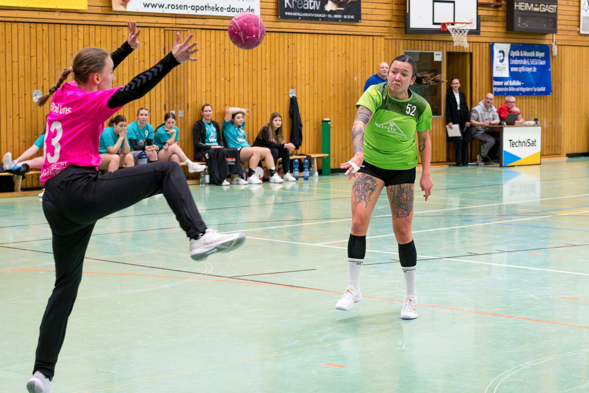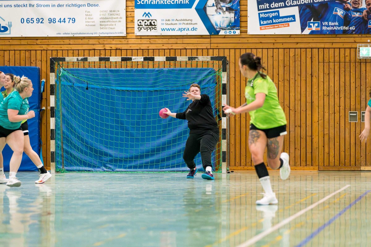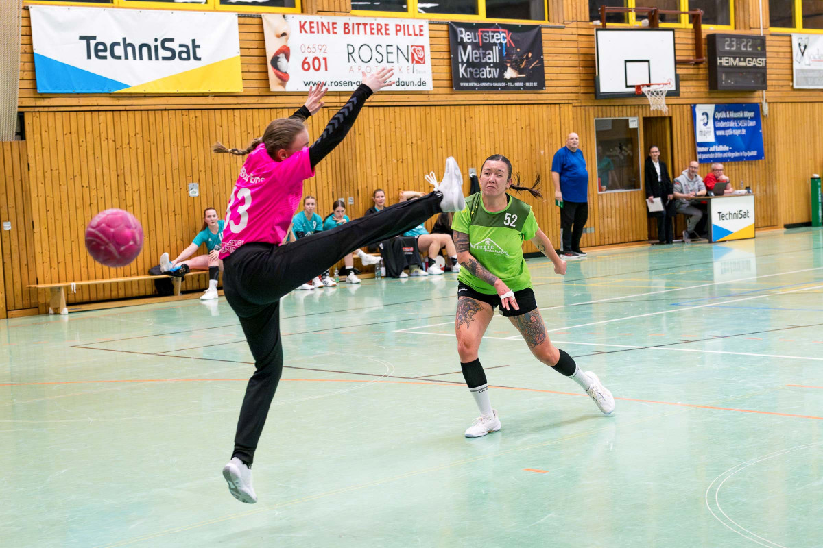 Wichtiger Heimspielerfolg der Dauner Mannschaft im vier Punktespiel gegen Bad Ems! Die Mannschaft von Trainer Can Steuernagel kam gut in die Begegnung, führte über 3:1 (5.) und bestimmte bis 9:5 (25.) weite Strecken das Spiel in der ersten Hälfte, dann gelang den Kurstädterinnen der Anschluss mit zwei Treffern in Folge, doch Daun zeigte die Reaktion, setzte sich bis zur Pause auf 12:7 ab und alles deutete auf den wichtigen Heimspielerfolg des Can-Teams hin. Ausgeglichen dann der Verlauf der zweiten Hälfe, in der es dem Gastgeberteam gelang, die Führung über 18:13 (43.) bis 21:16 (53.) zu verteidigte, dann machte das Team mit den Treffern zum 23:16 (57.) den Deckel drauf.