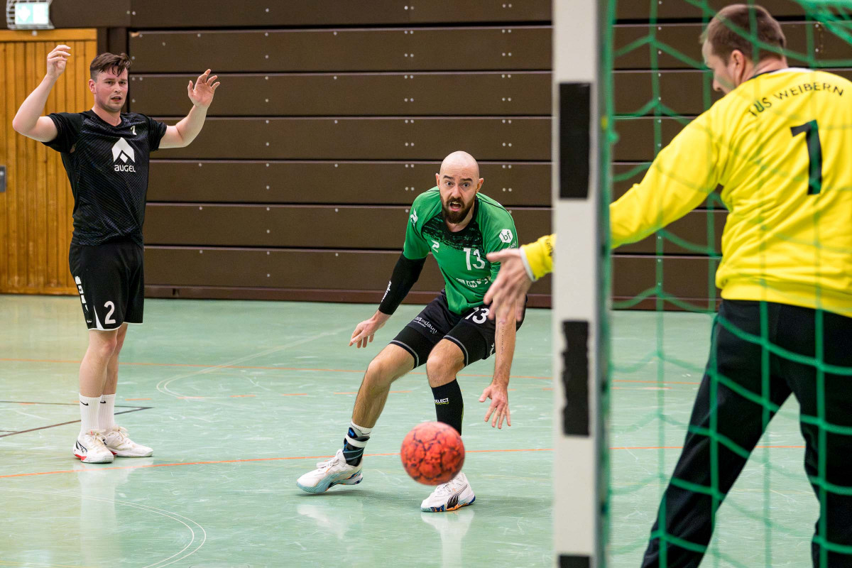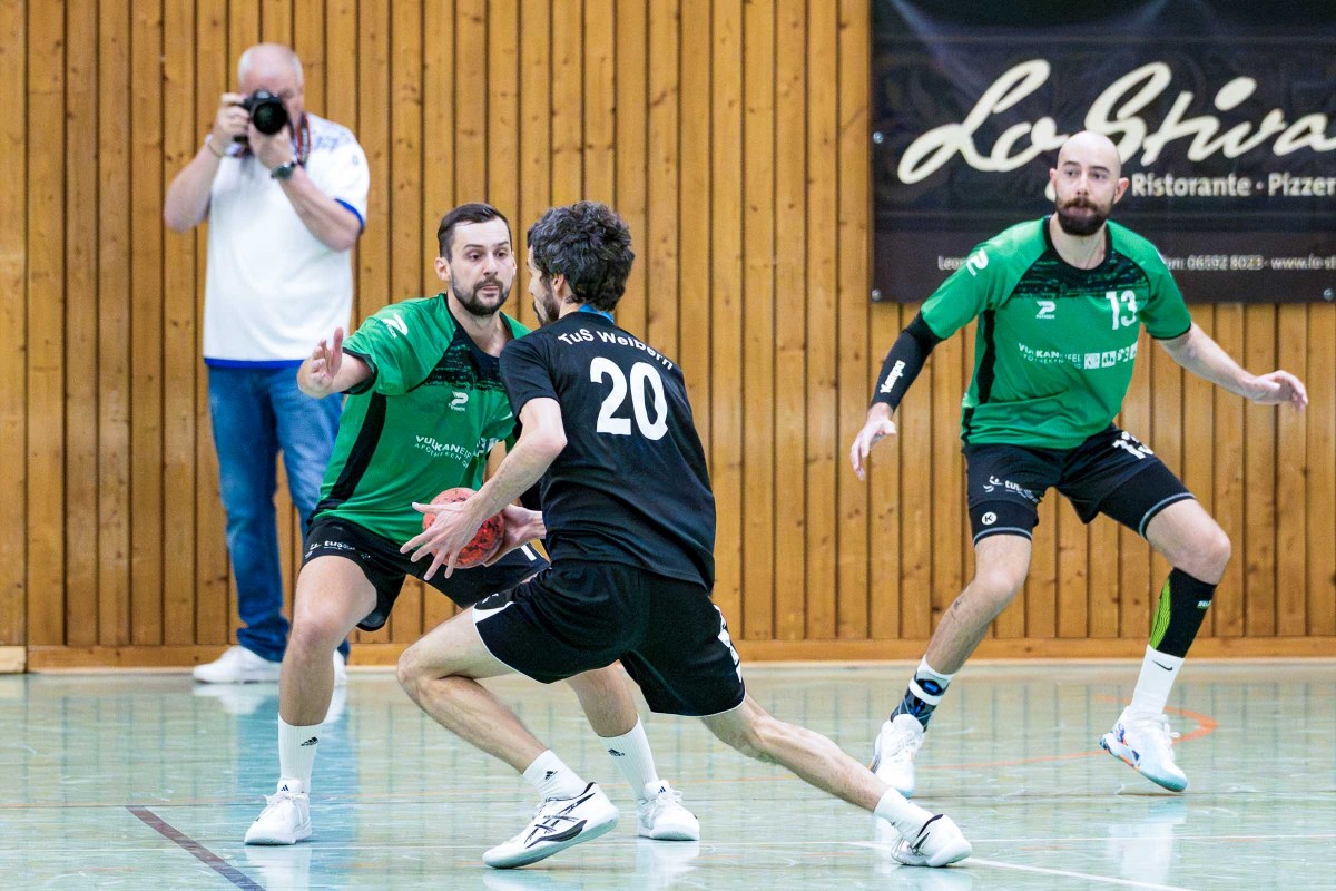 „Wichtiger und letztlich ungefährdeter Heimsieg gegen Weibern. Wie erhofft war unser Kader deutlich breiter aufgestellt als zuletzt gegen Koblenz, auch wenn einige Spieler angeschlagen waren. Im Spielverlauf zeigte sich jedoch, dass diese besseren Wechselmöglichkeiten ausschlaggebend für den Sieg sein würden. Das Spiel begann zerfahren und war geprägt von vielen Fehlwürfen und teils nicht nachvollziehbaren Schiedsrichterentscheidungen auf beiden Seiten. So erhielt Luca Willems, in einem insgesamt fairen Spiel, schon früh seine zweite 2-Minuten Zeitstrafen, so dass wir ihn vorerst nicht mehr in der Abwehr einsetzen wollten. Oliver Binder sah in der 20. Minute wegen eines „Allerweltfouls“ die Rote Karte. Ich selber, konnte auch aufgrund einer, zu Beginn des Spiels erlittenen Wadenverletzung nicht mehr eingesetzt werden und so war Coach Lukas Illigen schon früh zu einigen Umstellungen gezwungen, die alle Spieler konzentriert umsetzten. Igor Rahn, Maic Zenner und Thinh Hoang Tran bespielten die Außenpositionen sehr stark und Konny Meckelburg erarbeitete sich einige Chancen am Kreis. Großes Lob an unserer Youngster Oskar Hemmerden, der aufgrund der Ausfälle gestern fast das komplette Spiel zum Einsatz kam und seine Sache in Angriff und Abwehr wirklich sehr gut machte. Bis zur Halbzeit blieb es spannend, aber dann setzte sich die größere Routine und die besseren Wechselalternativen durch. Vor allem Bassi Praeder, Jannis Willems und Matthis Otto kamen durch gewohnte Abläufe zu Torerfolgen und Ruslan Prdriezov, verlieh der Abwehr in der 2. Halbzeit mehr Stabilität durch gewonnene 1:1 Aktionen. Den Gästen merkte man den Kräfteverschleiß mit zunehmender Spieldauer an und so steuerten wir über ein 11:8 nach der Pause, über 16:10 in 38. Minute und dem 23:15 in der 52. Minute einem sicheren Heimsieg entgegen“, berichtet Pat Brümmer, Co-Trainer des TuS Daun.