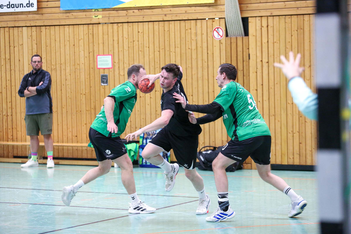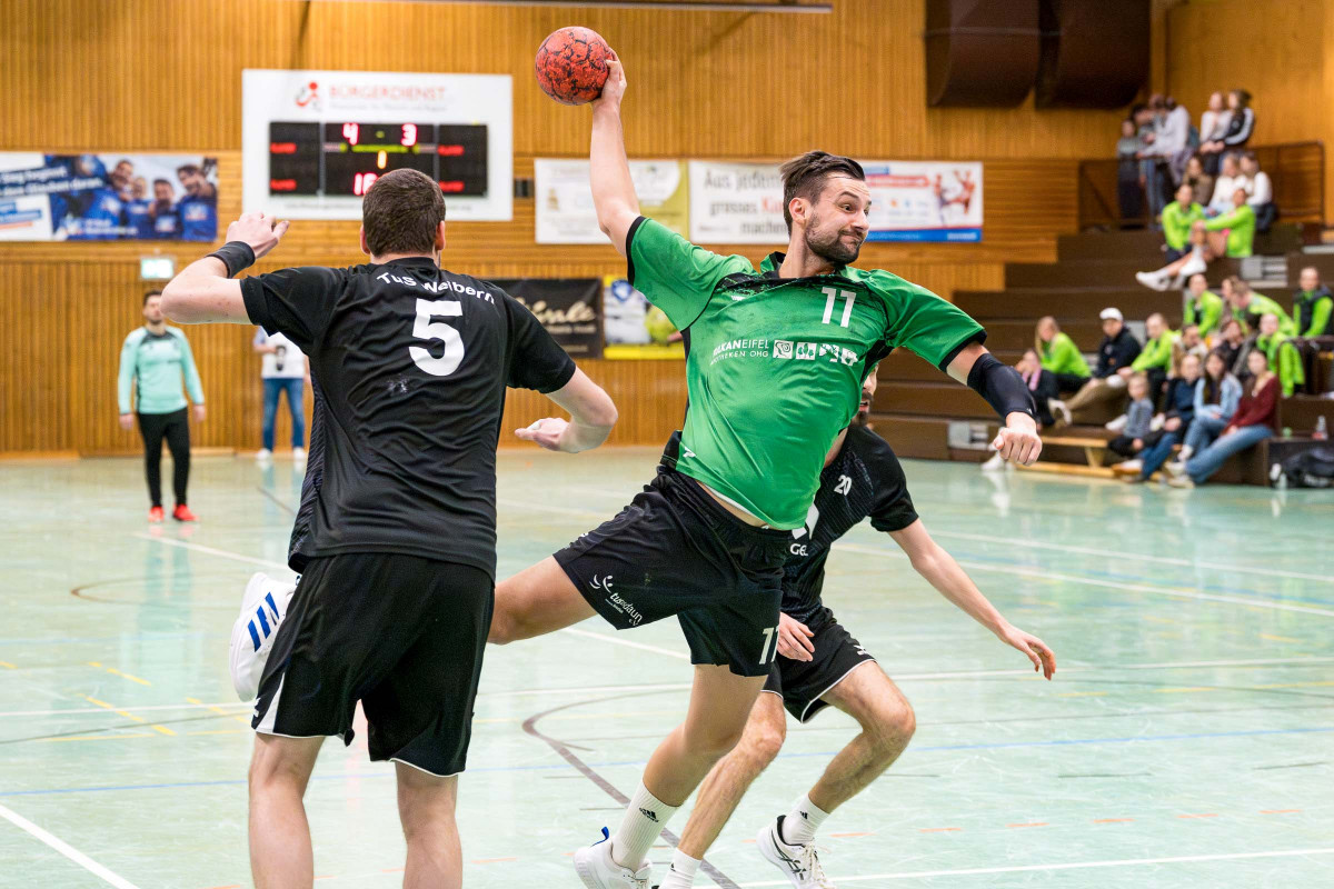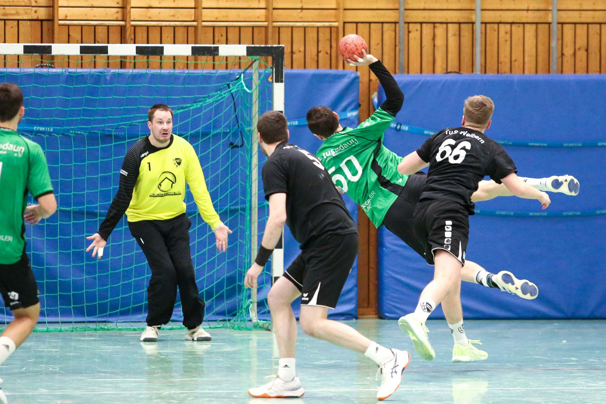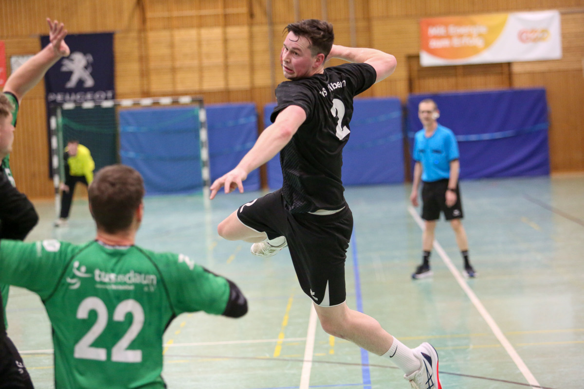 Mit dem Sieg im Eifel-Derby gegen Weibern sichert sich die Mannschaft von Lukas Illigen den Mittelfeldplatz und kann jetzt der Restsaison gelassener entgegensehen. Vor allem in der ersten Hälfte tat sich das Gastgeberteam schwer, konterte die 0:2 Führung der Gäste (3.) mit vier Treffern in Folge zum 4:2 (10.) verpasste dann aber das Momentum, die Führung weiter auszubauen. So blieb die Begegnung über 6:5 (20.) trotz ständiger ein bis zwei Tore Führung der Illigen-Truppe spannend und zur Pause führte Daun mit lediglich zwei Toren. Erst nach dem 11:9 (32.) platze der Knoten im Dauner Spiel und in dieser Phase war es vor allem Jannis Willems, der mit seinen Treffern für die klare 16:10 Führung der Hausherren (38.) sorgte. Diesen Vorsprung verteidigte der TuS bis 20:14 (49.), es folgte die Auszeit von Illigen, nach der die Mannschaft die klare Führung über 24:16 (57.) ins Ziel brachte.