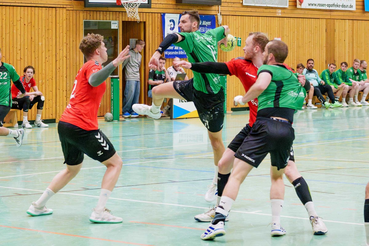 Scheinbar nahtlos konnten die Trierer an ihren zuletzt guten Auftritt im Heimspiel anknüpfen und waren beim 4:8 (12.) besser aus den Startlöchern gekommen. Die Mannschaft von Trainer Ralf Martin verteidigte ihre Führung bis 10:11 (17.), kassierte dann den Ausgleich und jetzt entwickelte sich ein Kopf an Kopf Rennen mit wechselnden Führungen und so ging Daun mit der knappen ein Tore Führung in die Pause. Kostas Plausinaitis und Philipp Müller sorgten gleich nach dem Wiederanpfiff für die MJC Führung zum 17:18 (32.), die das Martin Team jetzt über 21:22 (39.) weiter verteidigte. Daun stemmte sich jetzt gegen die drohende Niederlage, drehte das Spiel mit drei Toren in Folge zum 24:22 (42.), verteidigte in den folgenden Minuten die ein bis zwei Tore Führung, setzten sich dann aber nach dem 26:24 (44.) mit Treffern von Matthis Otto und Igor Rahn sowie Lukas Mayer auf 29:24 (47.) ab und sorgten damit für die Vorentscheidung.