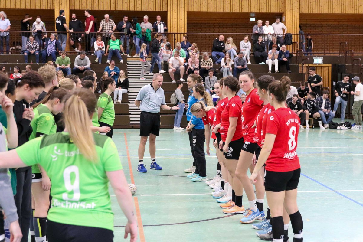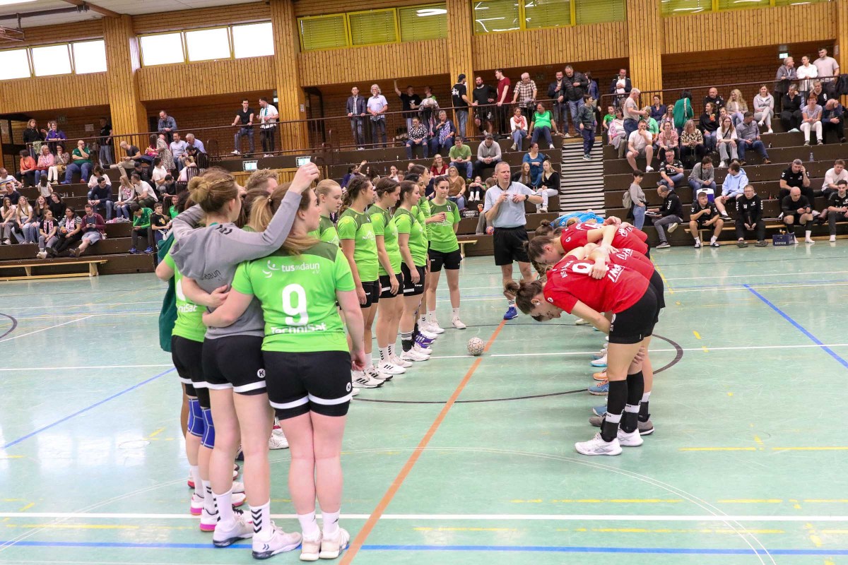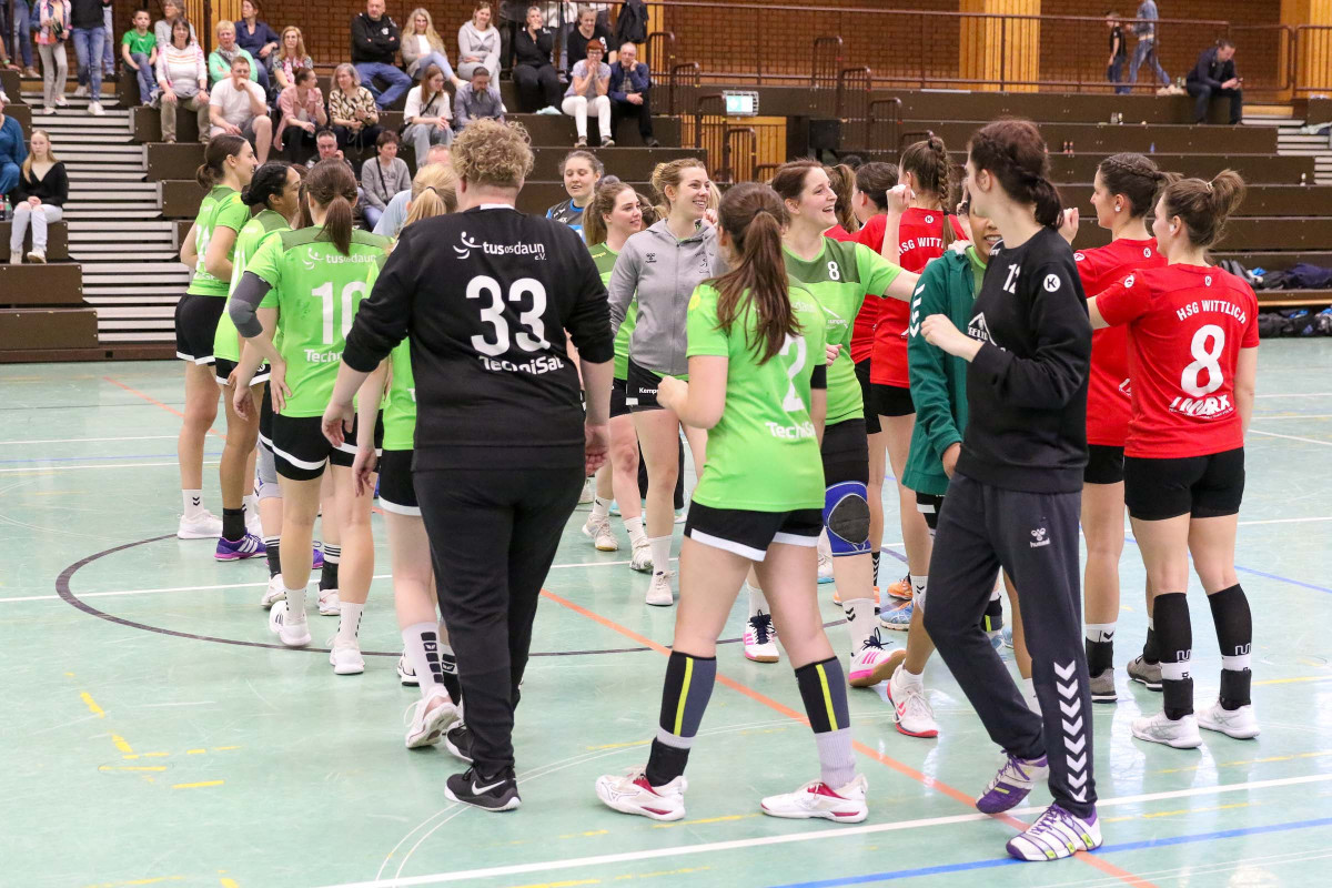 Mit dem Sieg im letzten Heimspiel machten die Dauner Frauen ihrem scheidenden Trainer Heinz Hammann ein tolles Abschiedsgeschenk! Ein spannendes Spiel hatten beide Trainer vorhergesagt und das war es zumindest in der ersten Hälfte! Dabei hatten die Gastgeberinnen bis 6:5 (12.) die Nase vorne, doch dann drehte das Team aus Wittlich mit drei Treffern in Folge zum 6:8 (19.) die Begegnung. Doch Daun zeigte sich wenig beeindruckt und die Mannschaft des scheidenden Trainers Heinz Hammann legte jetzt vier Tore in Folge zur 10:8 (25.) Führung nach! Zur Pause führte Daun denkbar knapp mit 12:11!