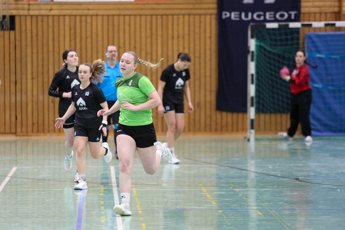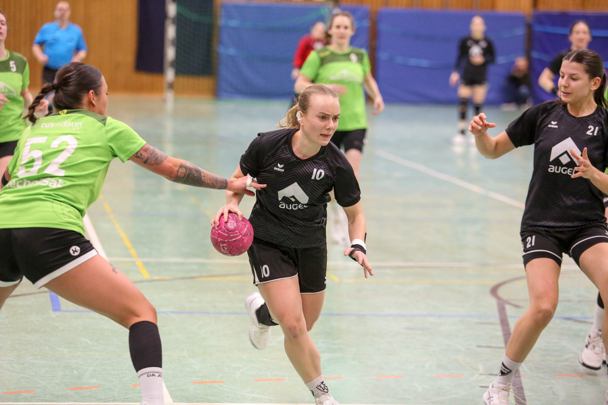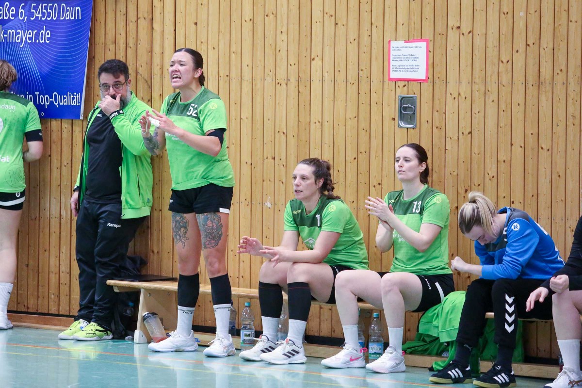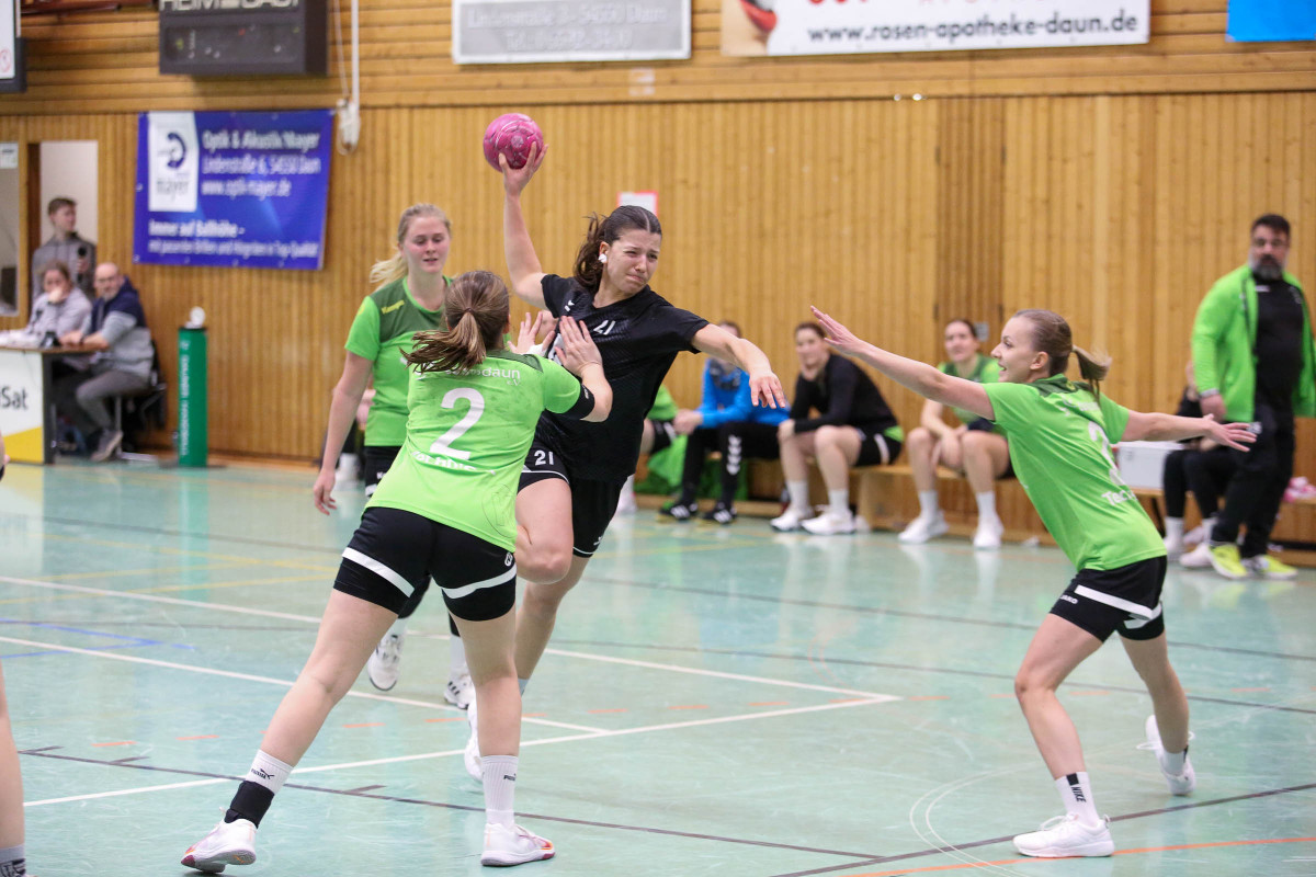 Daun gewinnt das vier-Punkte Spiel gegen den Tus Weibern und setzt sich weiter vom Tabellenletzten aus Bad Ems, der in Trier ein klare Niederlage einstecken musste, ab. Das Team von Trainer Can Steuernagel ließ lediglich die 1:2 Führung der Gäste (6.) zu, drehte das Spiel über 4:2 (11.) und verteidigte die knappe Führung bis zum 7:6 (18.) Mia von Koten und Kathi Schick sowie Lena Kretzer sorgten mit ihren Treffern dann für den beruhigenden vier Tore Vorsprung zum 10:6 (26.) den man mit in die Pause nahm. Die Anfangsphase der zweiten Hälfe aber verschlief das Steuernagel Team und das bestrafte Weibern mit dem Ausgleich zum 11:11 (34.) und hatte jetzt das Momentum auf seiner Seite. Doch Daun fing sich zum richtigen Zeitpunkt und erneut war es Lena Kretzer, die Verantwortung übernahm und ihre Mannschaft in Führung warf. Die Treffer von Mia van Koten, Finja Katzer, Kathi Schick und erneut Lena Kretzer sollten beim 16:11 (42.) für die Auszeit der Gäste sorgen. Doch jetzt verteidigte das Dauner Team die Führung, Steuernagel nahm beim 18:13 (46.) die Auszeit und spätestens beim 22:15 (54.) war die Messe in Daun zugunsten der Heimmannschaft gelesen.