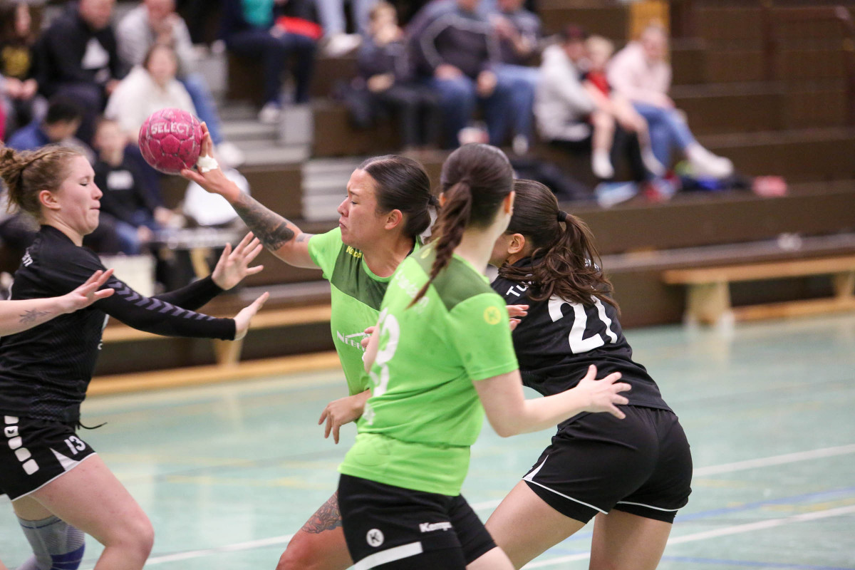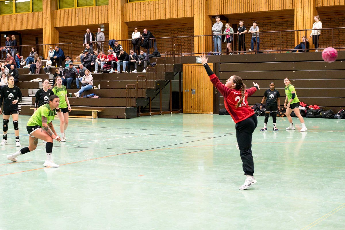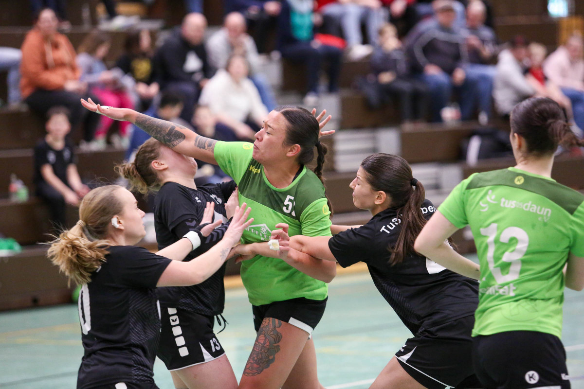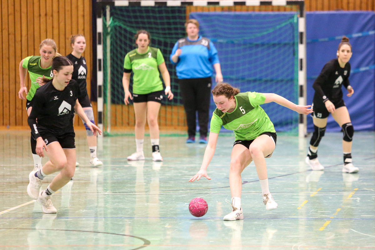 Daun gewinnt das vier-Punkte Spiel gegen den Tus Weibern und setzt sich weiter vom Tabellenletzten aus Bad Ems, der in Trier ein klare Niederlage einstecken musste, ab. Das Team von Trainer Can Steuernagel ließ lediglich die 1:2 Führung der Gäste (6.) zu, drehte das Spiel über 4:2 (11.) und verteidigte die knappe Führung bis zum 7:6 (18.) Mia von Koten und Kathi Schick sowie Lena Kretzer sorgten mit ihren Treffern dann für den beruhigenden vier Tore Vorsprung zum 10:6 (26.) den man mit in die Pause nahm. Die Anfangsphase der zweiten Hälfe aber verschlief das Steuernagel Team und das bestrafte Weibern mit dem Ausgleich zum 11:11 (34.) und hatte jetzt das Momentum auf seiner Seite. Doch Daun fing sich zum richtigen Zeitpunkt und erneut war es Lena Kretzer, die Verantwortung übernahm und ihre Mannschaft in Führung warf. Die Treffer von Mia van Koten, Finja Katzer, Kathi Schick und erneut Lena Kretzer sollten beim 16:11 (42.) für die Auszeit der Gäste sorgen. Doch jetzt verteidigte das Dauner Team die Führung, Steuernagel nahm beim 18:13 (46.) die Auszeit und spätestens beim 22:15 (54.) war die Messe in Daun zugunsten der Heimmannschaft gelesen.