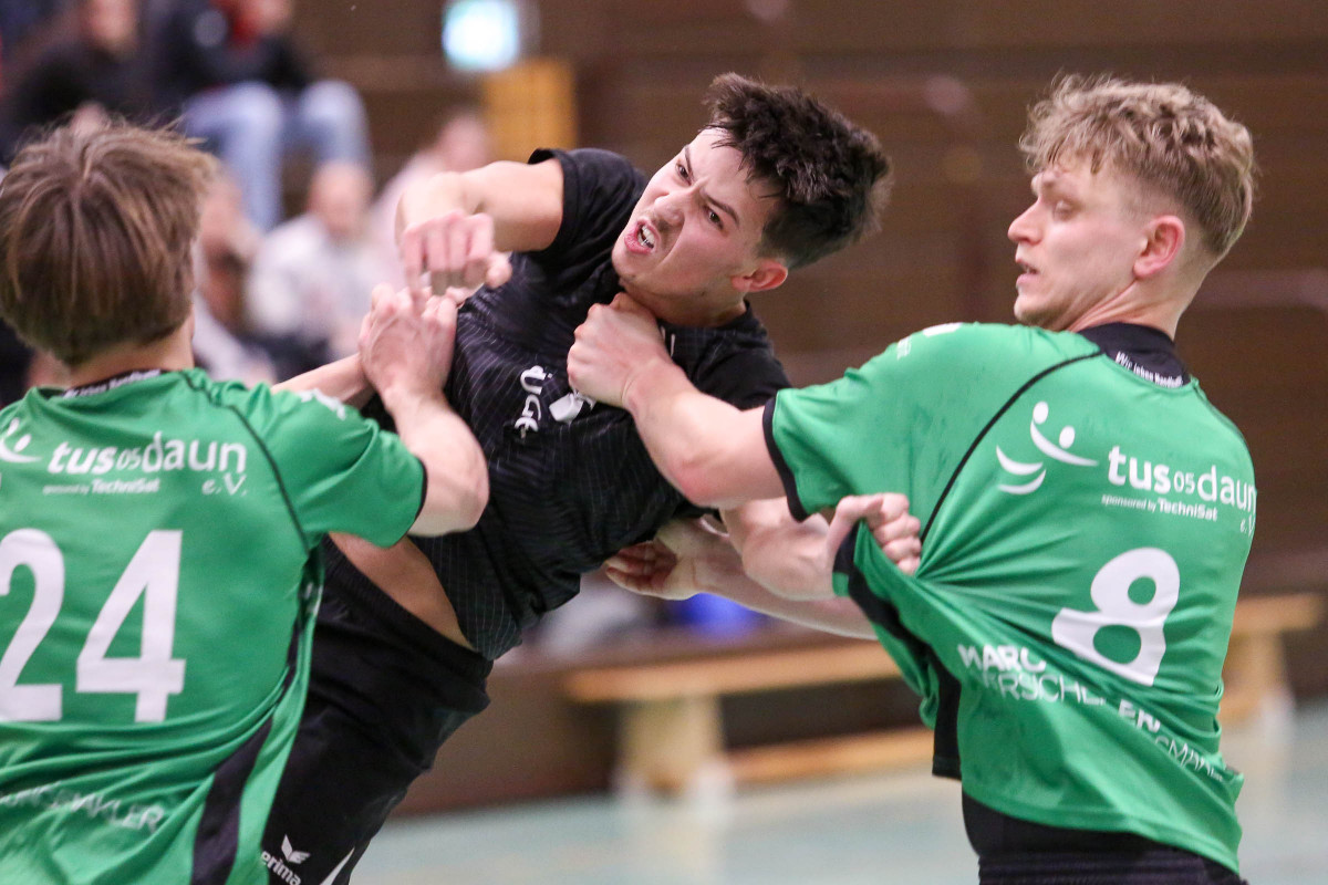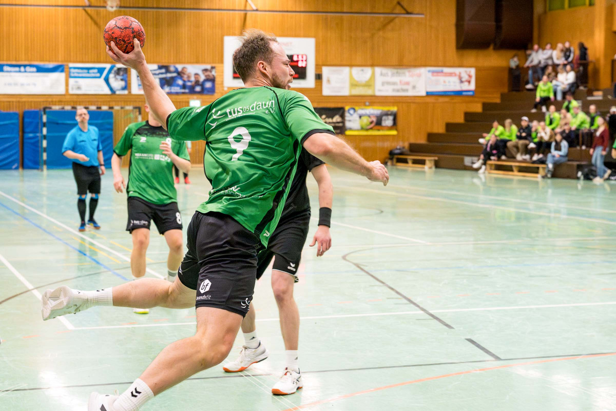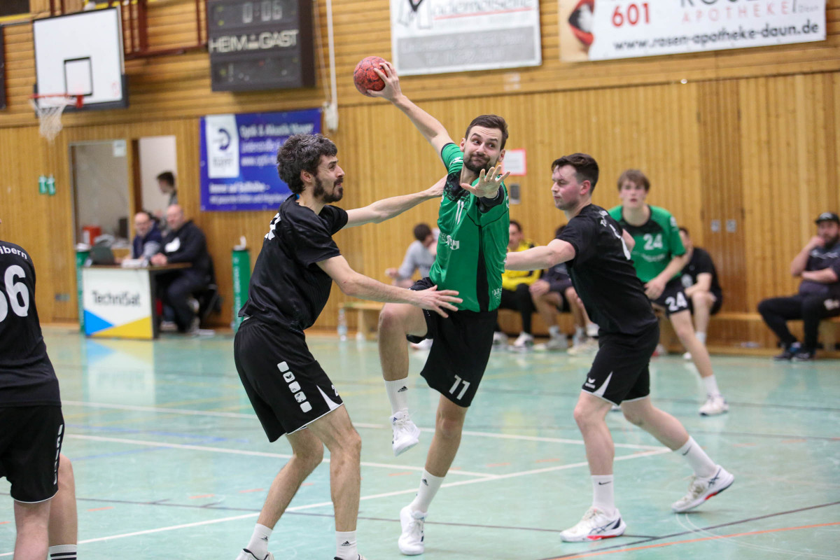 Mit dem Sieg im Eifel-Derby gegen Weibern sichert sich die Mannschaft von Lukas Illigen den Mittelfeldplatz und kann jetzt der Restsaison gelassener entgegensehen. Vor allem in der ersten Hälfte tat sich das Gastgeberteam schwer, konterte die 0:2 Führung der Gäste (3.) mit vier Treffern in Folge zum 4:2 (10.) verpasste dann aber das Momentum, die Führung weiter auszubauen. So blieb die Begegnung über 6:5 (20.) trotz ständiger ein bis zwei Tore Führung der Illigen-Truppe spannend und zur Pause führte Daun mit lediglich zwei Toren. Erst nach dem 11:9 (32.) platze der Knoten im Dauner Spiel und in dieser Phase war es vor allem Jannis Willems, der mit seinen Treffern für die klare 16:10 Führung der Hausherren (38.) sorgte. Diesen Vorsprung verteidigte der TuS bis 20:14 (49.), es folgte die Auszeit von Illigen, nach der die Mannschaft die klare Führung über 24:16 (57.) ins Ziel brachte.