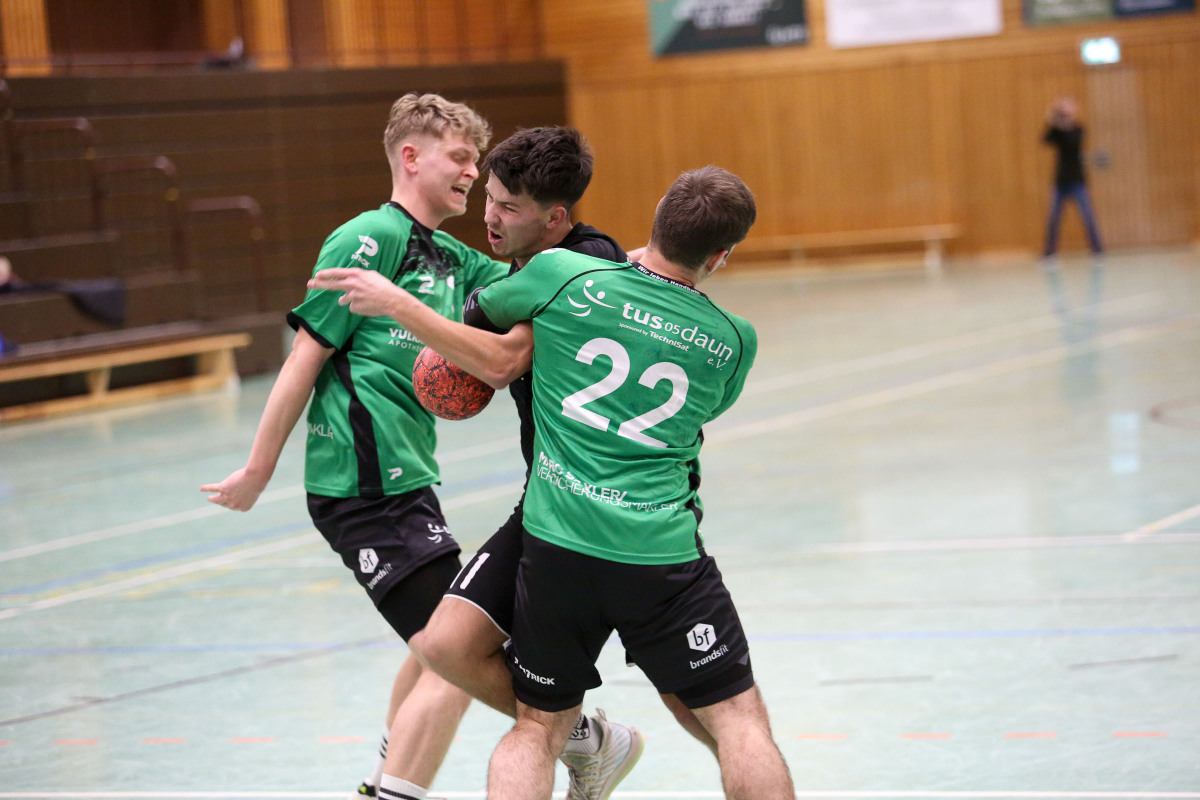 „Wichtiger und letztlich ungefährdeter Heimsieg gegen Weibern. Wie erhofft war unser Kader deutlich breiter aufgestellt als zuletzt gegen Koblenz, auch wenn einige Spieler angeschlagen waren. Im Spielverlauf zeigte sich jedoch, dass diese besseren Wechselmöglichkeiten ausschlaggebend für den Sieg sein würden. Das Spiel begann zerfahren und war geprägt von vielen Fehlwürfen und teils nicht nachvollziehbaren Schiedsrichterentscheidungen auf beiden Seiten. So erhielt Luca Willems, in einem insgesamt fairen Spiel, schon früh seine zweite 2-Minuten Zeitstrafen, so dass wir ihn vorerst nicht mehr in der Abwehr einsetzen wollten. Oliver Binder sah in der 20. Minute wegen eines „Allerweltfouls“ die Rote Karte. Ich selber, konnte auch aufgrund einer, zu Beginn des Spiels erlittenen Wadenverletzung nicht mehr eingesetzt werden und so war Coach Lukas Illigen schon früh zu einigen Umstellungen gezwungen, die alle Spieler konzentriert umsetzten. Igor Rahn, Maic Zenner und Thinh Hoang Tran bespielten die Außenpositionen sehr stark und Konny Meckelburg erarbeitete sich einige Chancen am Kreis. Großes Lob an unserer Youngster Oskar Hemmerden, der aufgrund der Ausfälle gestern fast das komplette Spiel zum Einsatz kam und seine Sache in Angriff und Abwehr wirklich sehr gut machte. Bis zur Halbzeit blieb es spannend, aber dann setzte sich die größere Routine und die besseren Wechselalternativen durch. Vor allem Bassi Praeder, Jannis Willems und Matthis Otto kamen durch gewohnte Abläufe zu Torerfolgen und Ruslan Prdriezov, verlieh der Abwehr in der 2. Halbzeit mehr Stabilität durch gewonnene 1:1 Aktionen. Den Gästen merkte man den Kräfteverschleiß mit zunehmender Spieldauer an und so steuerten wir über ein 11:8 nach der Pause, über 16:10 in 38. Minute und dem 23:15 in der 52. Minute einem sicheren Heimsieg entgegen“, berichtet Pat Brümmer, Co-Trainer des TuS Daun.