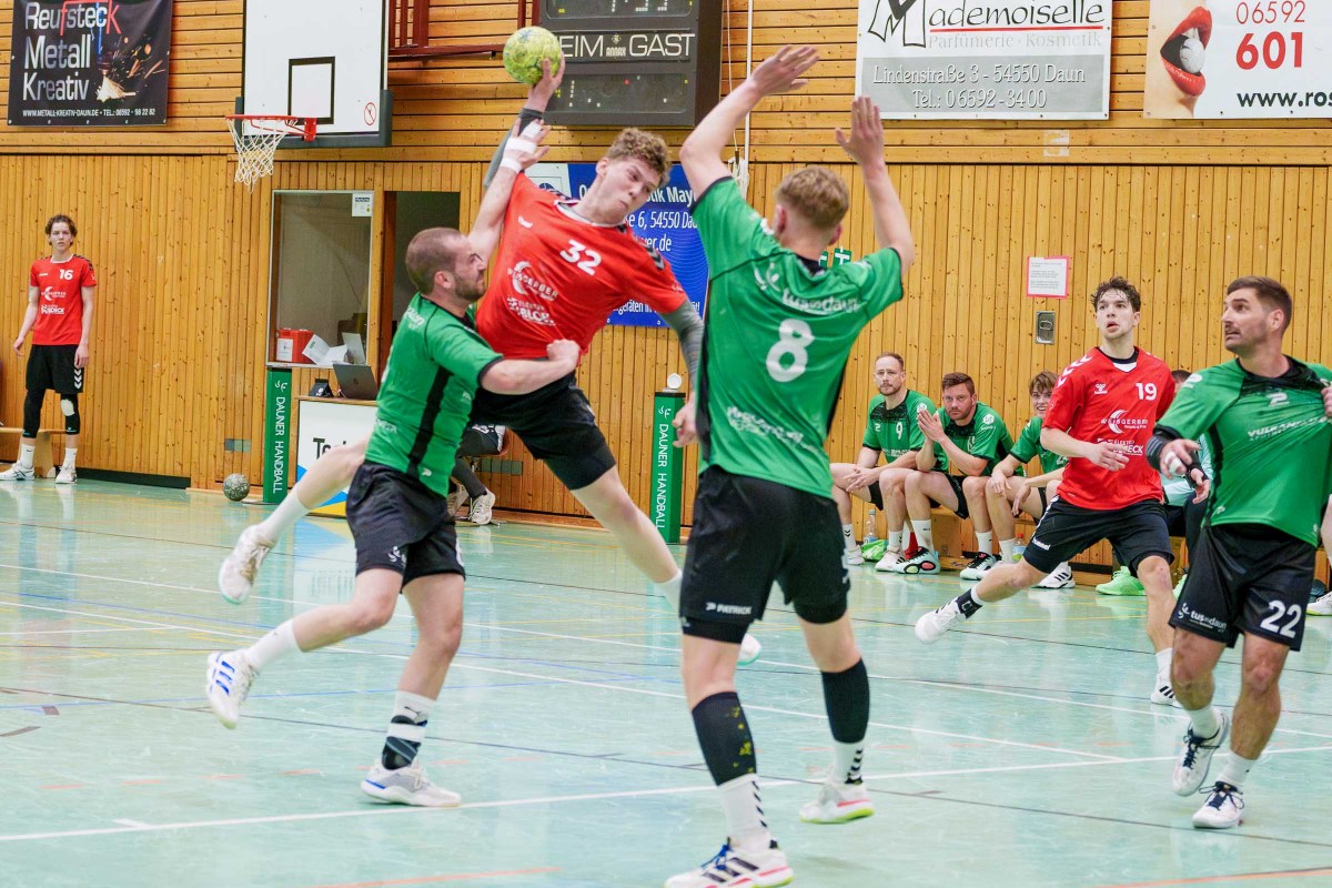 Scheinbar nahtlos konnten die Trierer an ihren zuletzt guten Auftritt im Heimspiel anknüpfen und waren beim 4:8 (12.) besser aus den Startlöchern gekommen. Die Mannschaft von Trainer Ralf Martin verteidigte ihre Führung bis 10:11 (17.), kassierte dann den Ausgleich und jetzt entwickelte sich ein Kopf an Kopf Rennen mit wechselnden Führungen und so ging Daun mit der knappen ein Tore Führung in die Pause. Kostas Plausinaitis und Philipp Müller sorgten gleich nach dem Wiederanpfiff für die MJC Führung zum 17:18 (32.), die das Martin Team jetzt über 21:22 (39.) weiter verteidigte. Daun stemmte sich jetzt gegen die drohende Niederlage, drehte das Spiel mit drei Toren in Folge zum 24:22 (42.), verteidigte in den folgenden Minuten die ein bis zwei Tore Führung, setzten sich dann aber nach dem 26:24 (44.) mit Treffern von Matthis Otto und Igor Rahn sowie Lukas Mayer auf 29:24 (47.) ab und sorgten damit für die Vorentscheidung.