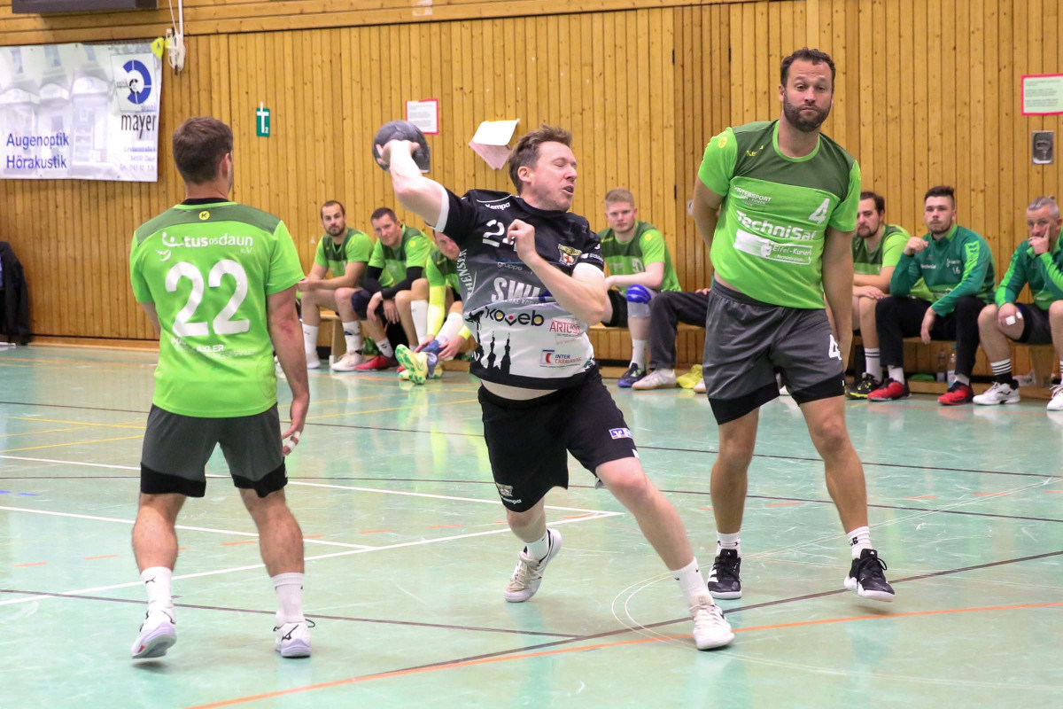 Ohne ihren Spielmacher Andreas Reick und den torgefährlichen Kris Jünemann trat Koblenz in der Eifel, beim TuS Daun an, war dennoch die spielbestimmende Mannschaft und entführt völlig verdient beide Punkte aus der Eifel. Auf Dauner Seite waren Luca Willems und Mathias Otto dabei und das sollte eigentlich für die Gastgeber sprechen. Bis in die Schlussminuten der ersten Hälfte gelang es keiner Mannschaft, sich mit mehr als zwei Toren abzusetzen. Es waren die Gäste, die nach dem 9:10 (21.) beim 9:12 (21.) die erste drei Tore Führung schafften und zur Pause verdient in Führung lagen. Daun kam gut in die zweite Hälfte, schenkte den Gästen mit Treffern von Pat Brümmer und zweimal Jannis Willems gleich drei Buden in Folge ein und über 16:15 (34.) gings in die Restspielzeit, in der Daun zunächst den Faden verlor, fünf Gegentreffer in Folge einstecken musste und beim 16:20 (40.) hatten die Gäste die besseren Karten in der Hand. Erst jetzt nahm Dauns Coach Lukas Illigen die Auszeit, die bis zum 18:21 (42.) ihre Wirkung nicht verfehlt hatte. Koblenz fing sich, machte bis zum 18:25 (47) frühzeitig den Sack in Daun zu. Über 20:30 (55.) deutete sich dann die Heimschlappe für das Eifeler Team an, das am Ende unerwartet klar das Nachsehen hatte.