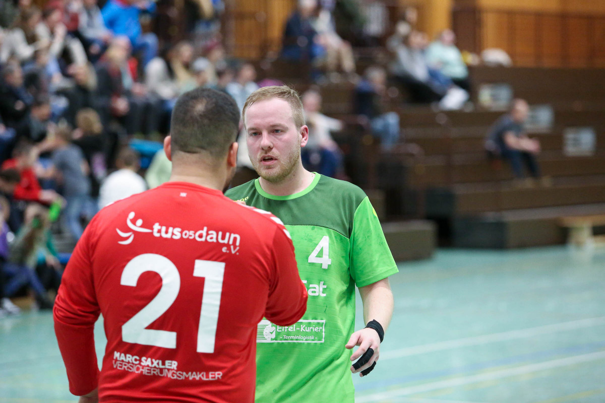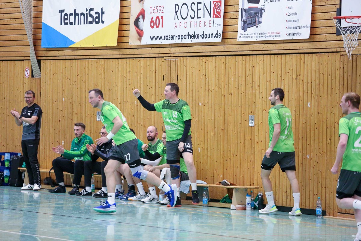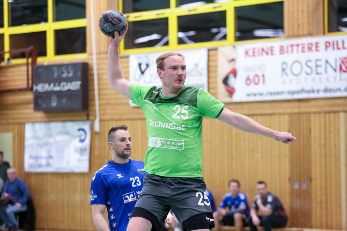 Aber auch auf Dauner Seite fehlten einige Stammspieler, allen voran Luca Willems. Die Anfangsphase verlief bis zum 4:4 (6.) ausgeglichen, ehe sich die Dauner auf drei Tore zum 7:4 (9.) absetzten und die drei bis vier Tore Führung bis 15:12 (26.) behaupteten. Mathis Otto sorgte mit seinem fünften Treffer in der ersten Hälfte für die vier Tore Führung seines Teams (16:12/29.), die diese Führung auch mit in die Pause nahmen. Mehr und mehr machte sich nach dem Wechsel dann die konditionelle Überlegenheit der Gastgeber bemerkbar, die mit ihrem guten Start in die zweite Hälfte beim 23:16 (38.) für die Vorentscheidung gesorgt hatten. Die klare Führung verteidigte die Mannschaft von Trainer Thorsten Ringer über 27:20 (43.) und 30:23 (49.), verwalteten die sieben Tore Führung bis 32:25 (54.) und feierten am Ende den verdienten und nie gefährdeten Heimspielerfolg.