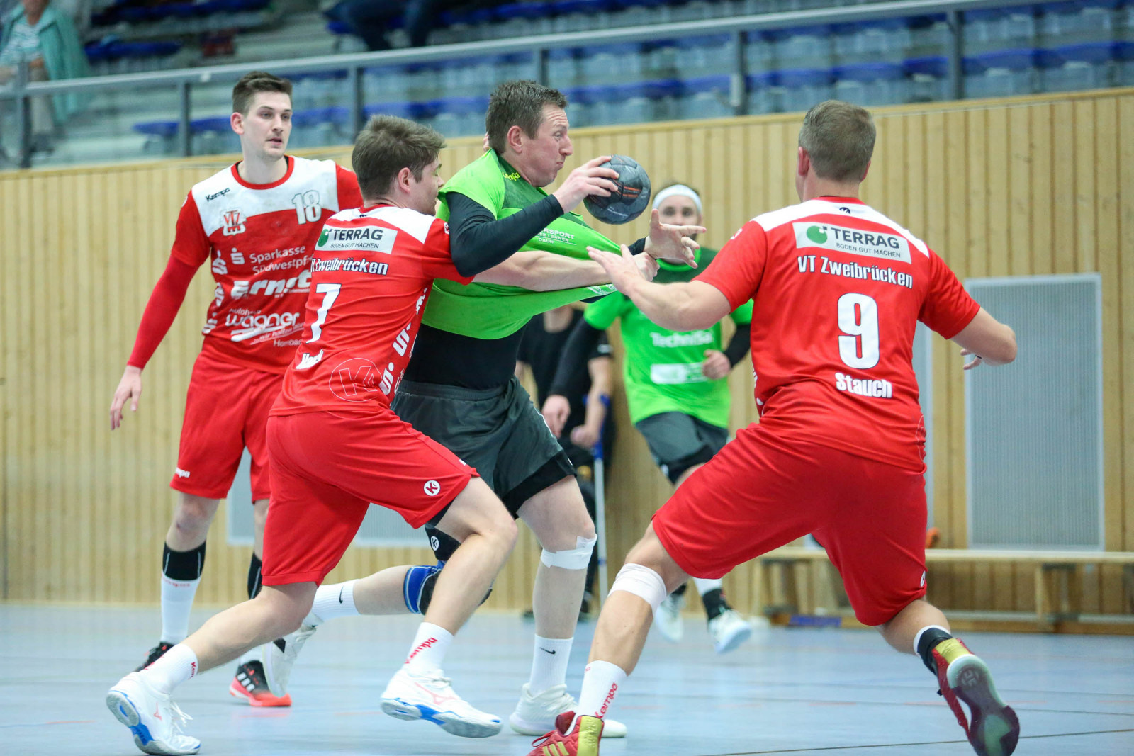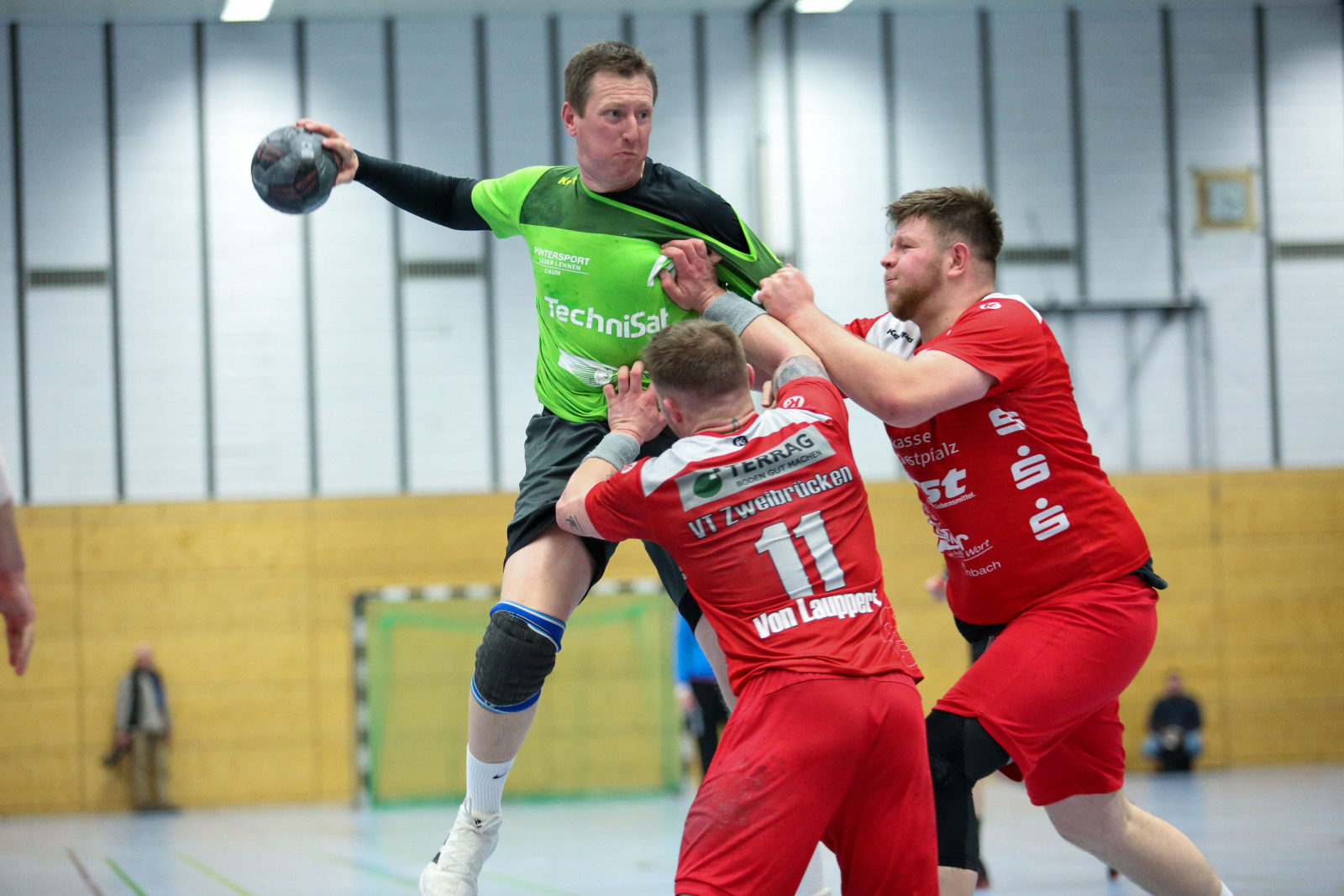 Die Pause kam für Daun zum richtigen Zeitpunkt: gleich drei Treffer in Folge schenkten die Jungs dem Gastgeber ein, führten 13:16 in der 37. Minute und kassierten erneut die Zeitstrafe und prompt gelingt den Gastgebern der Anschlusstreffer zum 15:16. Noch einmal nach Domaschenko die Auszeit, Saarpfalz glich aus und kassierte im Gegenzug die rote Karte gegen Routinier Tomas Kraucevicius in der 42. Minute, fast zeitgleich setzte es eine weitere Zeitstrafe gegen die Gastgeber und das nutzte Daun, um sich wieder auf 16:18 in der 44. Minute abzusetzen. Doch Saarpfalz blieb im Spiel, glich zum 19:19 aus und hatte in dieser Phase in Thomas Jung den treffsichersten Angreifer, der mit drei Treffern maßgeblichen Anteil an der 21:20 Führung in der 52. Minute hatte. Als die Gastgeber sogar auf 23:20 erhöhten, nahm Domaschenko in der 57. Minute nochmals die Auszeit, kämpfte sich auf 24:23 heran, ehe die Gastgeber knapp 90 Sekunden vor dem Ende ihre Auszeit nahmen. Acht Sekunden vor dem Ende entschieden die Unparteiischen dann auf ein umstrittenes Offensiv-Foul gegen Anton Domaschenko und so stand die Niederlage der Eifelaner fest.