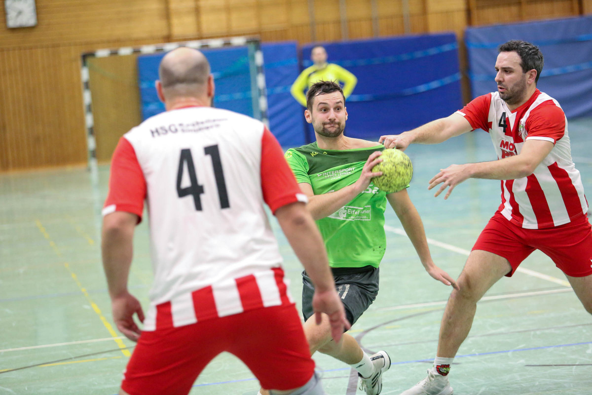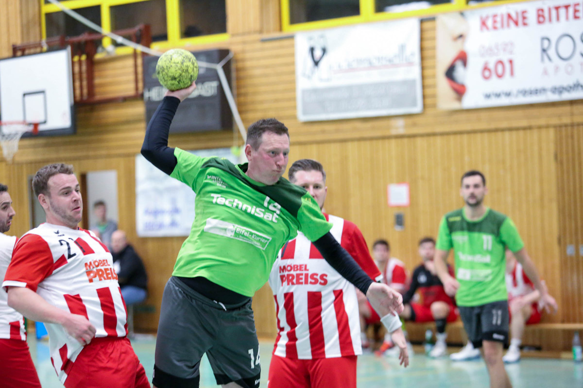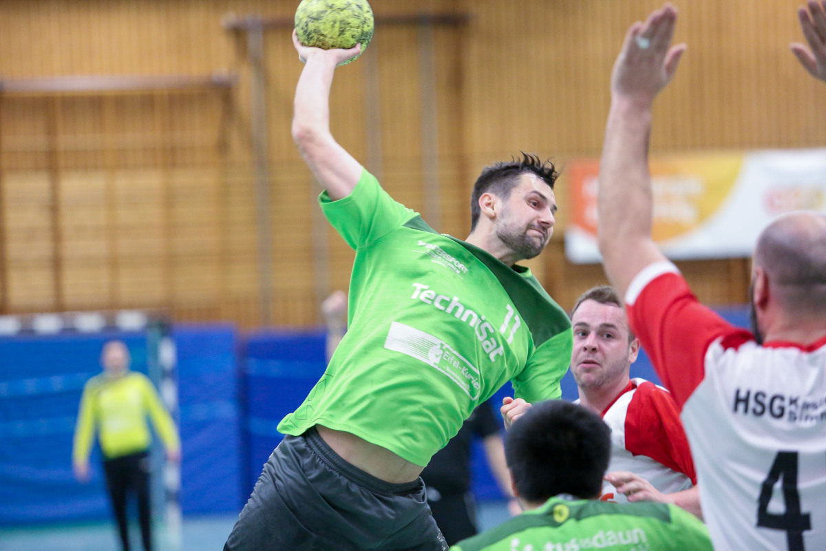 Aufatmen in Daun, aber Schade für die Gäste aus Kastellaun/Simmern, die auch in Daun nahe am Punktgewinn waren. Dabei kam das Team von Trainer Thorsten Ringer gut in die Begegnung, führte schnell mit 4:1 (5.), war beim 8:3 (11.) auf dem guten Weg, das Spiel zu bestimmen. Bis 10:5 (16.) lief es gut im Dauner Spiel, doch dann verloren die Eifelaner völlig den Faden. Die Gäste aus dem Hunsrück bestraften jetzt die Gastgeber, kamen um Tor heran und waren beim 11:9 (25.) wieder im Spiel. Zur Pause brachte das Team von Trainer Thorsten Ringer eine drei Tore Führung mit in die Kabine. Als Jannis Willems sein Team mit zwei Treffern in Folge wieder auf 15:11 (33.) davonziehen ließ, hofften die Fans im Dauner Lager, dass die Mannschaft jetzt wieder ihren Rhythmus gefunden hatte. Doch weit gefehlt! Die Gäste glichen beim 16:16 (43.) durch Tim Bottlender aus, waren auf dem besten Weg, das Spiel zu drehen. Es blieb eng, aber dem Team von Gästetrainer Max Wetstein wollte einfach der Führungstreffer nicht gelingen. Nach dem 18:18 (45.) setzte Daun sich wieder mit zwei Treffern auf 20:18 (48.) ab, verteidigte jetzt diese Führung bis 27:25 (59.). Den Gästen gelang nur noch der Anschlusstreffer.