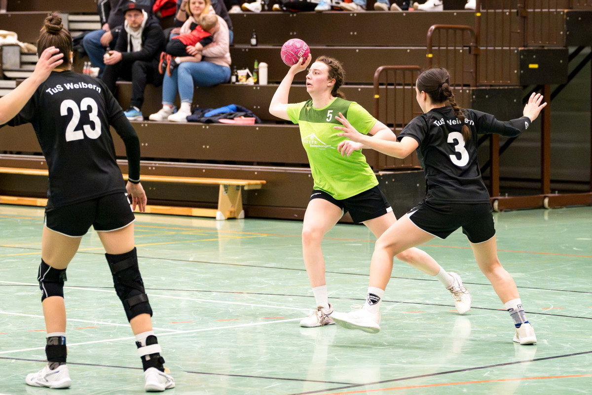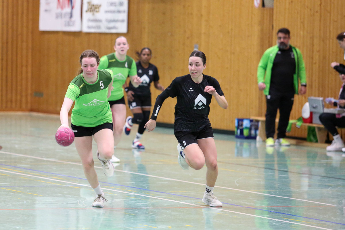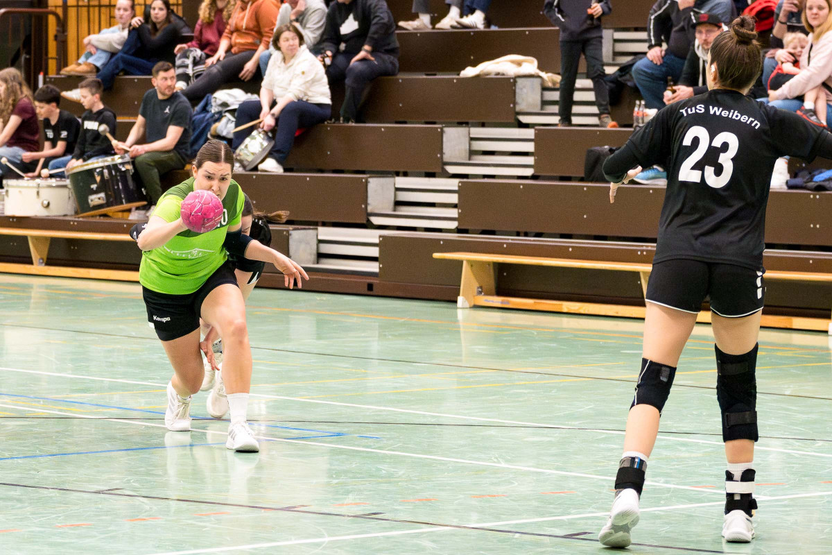 Daun gewinnt das vier-Punkte Spiel gegen den Tus Weibern und setzt sich weiter vom Tabellenletzten aus Bad Ems, der in Trier ein klare Niederlage einstecken musste, ab. Das Team von Trainer Can Steuernagel ließ lediglich die 1:2 Führung der Gäste (6.) zu, drehte das Spiel über 4:2 (11.) und verteidigte die knappe Führung bis zum 7:6 (18.) Mia von Koten und Kathi Schick sowie Lena Kretzer sorgten mit ihren Treffern dann für den beruhigenden vier Tore Vorsprung zum 10:6 (26.) den man mit in die Pause nahm. Die Anfangsphase der zweiten Hälfe aber verschlief das Steuernagel Team und das bestrafte Weibern mit dem Ausgleich zum 11:11 (34.) und hatte jetzt das Momentum auf seiner Seite. Doch Daun fing sich zum richtigen Zeitpunkt und erneut war es Lena Kretzer, die Verantwortung übernahm und ihre Mannschaft in Führung warf. Die Treffer von Mia van Koten, Finja Katzer, Kathi Schick und erneut Lena Kretzer sollten beim 16:11 (42.) für die Auszeit der Gäste sorgen. Doch jetzt verteidigte das Dauner Team die Führung, Steuernagel nahm beim 18:13 (46.) die Auszeit und spätestens beim 22:15 (54.) war die Messe in Daun zugunsten der Heimmannschaft gelesen.