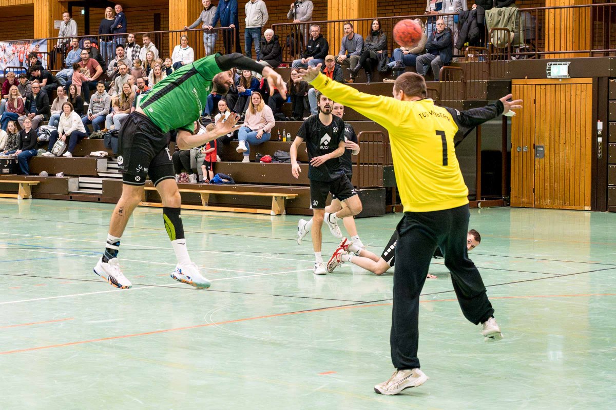 „Wichtiger und letztlich ungefährdeter Heimsieg gegen Weibern. Wie erhofft war unser Kader deutlich breiter aufgestellt als zuletzt gegen Koblenz, auch wenn einige Spieler angeschlagen waren. Im Spielverlauf zeigte sich jedoch, dass diese besseren Wechselmöglichkeiten ausschlaggebend für den Sieg sein würden. Das Spiel begann zerfahren und war geprägt von vielen Fehlwürfen und teils nicht nachvollziehbaren Schiedsrichterentscheidungen auf beiden Seiten. So erhielt Luca Willems, in einem insgesamt fairen Spiel, schon früh seine zweite 2-Minuten Zeitstrafen, so dass wir ihn vorerst nicht mehr in der Abwehr einsetzen wollten. Oliver Binder sah in der 20. Minute wegen eines „Allerweltfouls“ die Rote Karte. Ich selber, konnte auch aufgrund einer, zu Beginn des Spiels erlittenen Wadenverletzung nicht mehr eingesetzt werden und so war Coach Lukas Illigen schon früh zu einigen Umstellungen gezwungen, die alle Spieler konzentriert umsetzten. Igor Rahn, Maic Zenner und Thinh Hoang Tran bespielten die Außenpositionen sehr stark und Konny Meckelburg erarbeitete sich einige Chancen am Kreis. Großes Lob an unserer Youngster Oskar Hemmerden, der aufgrund der Ausfälle gestern fast das komplette Spiel zum Einsatz kam und seine Sache in Angriff und Abwehr wirklich sehr gut machte. Bis zur Halbzeit blieb es spannend, aber dann setzte sich die größere Routine und die besseren Wechselalternativen durch. Vor allem Bassi Praeder, Jannis Willems und Matthis Otto kamen durch gewohnte Abläufe zu Torerfolgen und Ruslan Prdriezov, verlieh der Abwehr in der 2. Halbzeit mehr Stabilität durch gewonnene 1:1 Aktionen. Den Gästen merkte man den Kräfteverschleiß mit zunehmender Spieldauer an und so steuerten wir über ein 11:8 nach der Pause, über 16:10 in 38. Minute und dem 23:15 in der 52. Minute einem sicheren Heimsieg entgegen“, berichtet Pat Brümmer, Co-Trainer des TuS Daun.