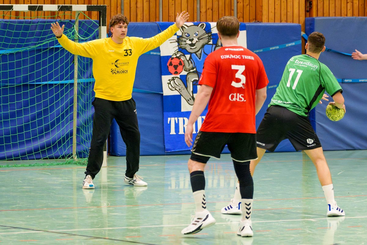 Scheinbar nahtlos konnten die Trierer an ihren zuletzt guten Auftritt im Heimspiel anknüpfen und waren beim 4:8 (12.) besser aus den Startlöchern gekommen. Die Mannschaft von Trainer Ralf Martin verteidigte ihre Führung bis 10:11 (17.), kassierte dann den Ausgleich und jetzt entwickelte sich ein Kopf an Kopf Rennen mit wechselnden Führungen und so ging Daun mit der knappen ein Tore Führung in die Pause. Kostas Plausinaitis und Philipp Müller sorgten gleich nach dem Wiederanpfiff für die MJC Führung zum 17:18 (32.), die das Martin Team jetzt über 21:22 (39.) weiter verteidigte. Daun stemmte sich jetzt gegen die drohende Niederlage, drehte das Spiel mit drei Toren in Folge zum 24:22 (42.), verteidigte in den folgenden Minuten die ein bis zwei Tore Führung, setzten sich dann aber nach dem 26:24 (44.) mit Treffern von Matthis Otto und Igor Rahn sowie Lukas Mayer auf 29:24 (47.) ab und sorgten damit für die Vorentscheidung.